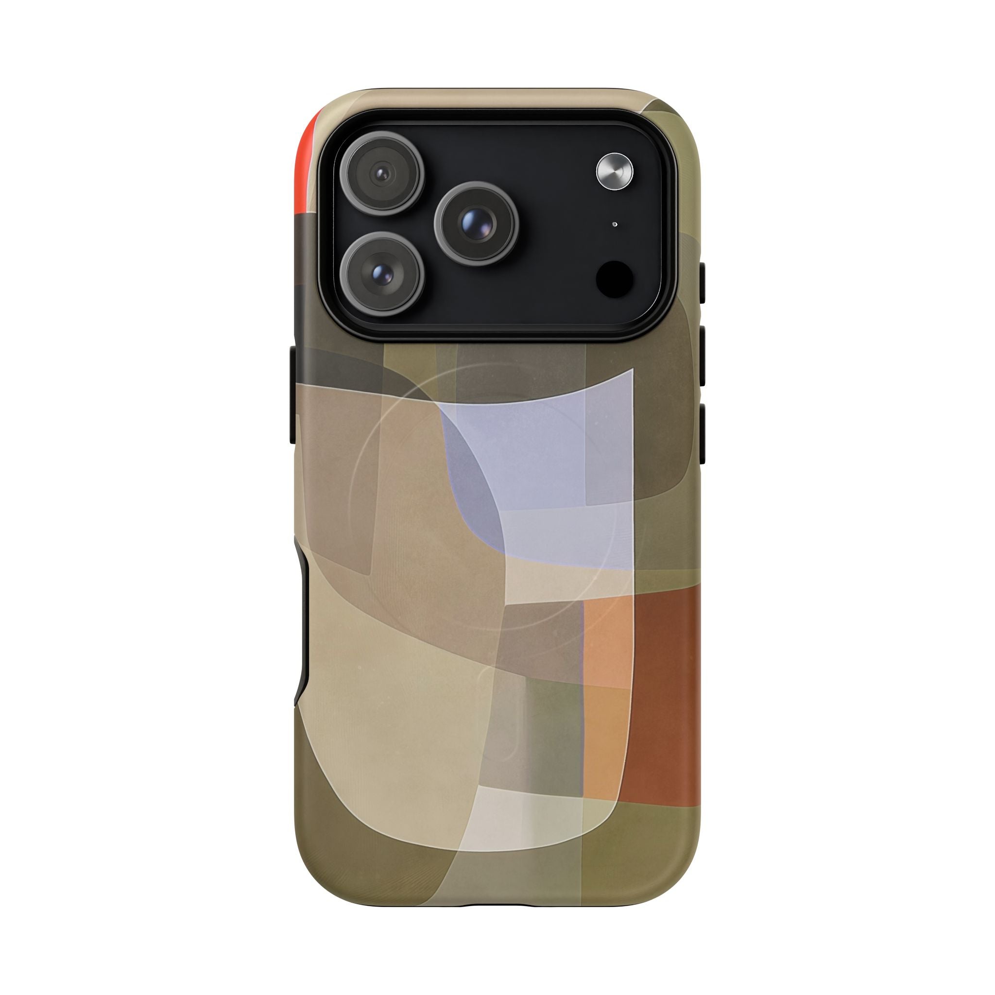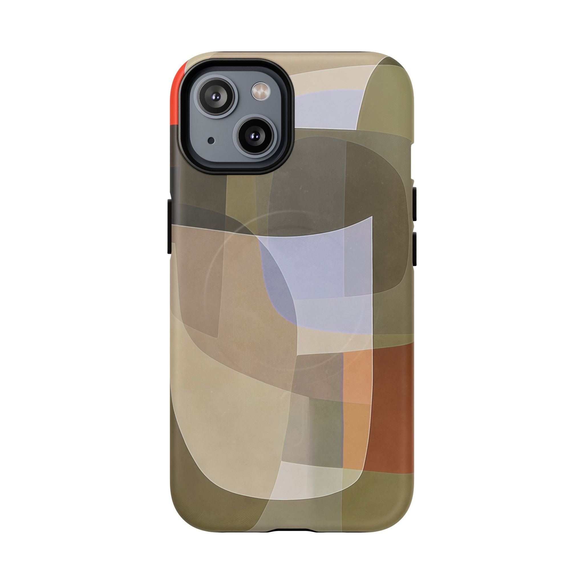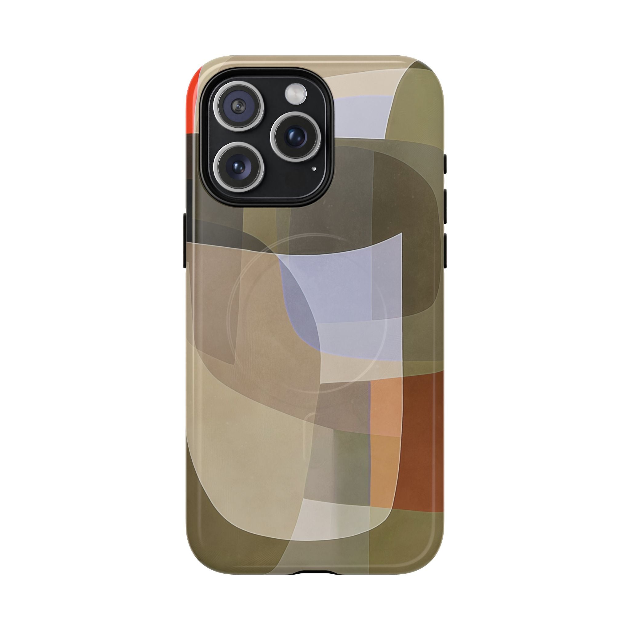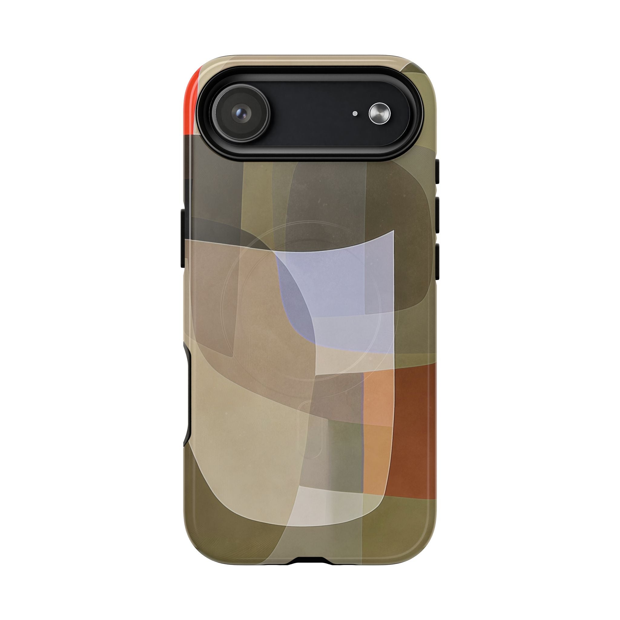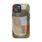 Abstract Art iPhone Case — Warm Geometric Shapes Phone Case, MagSafe Tough Case (iPhone 14, 15, 16, 17 Series)