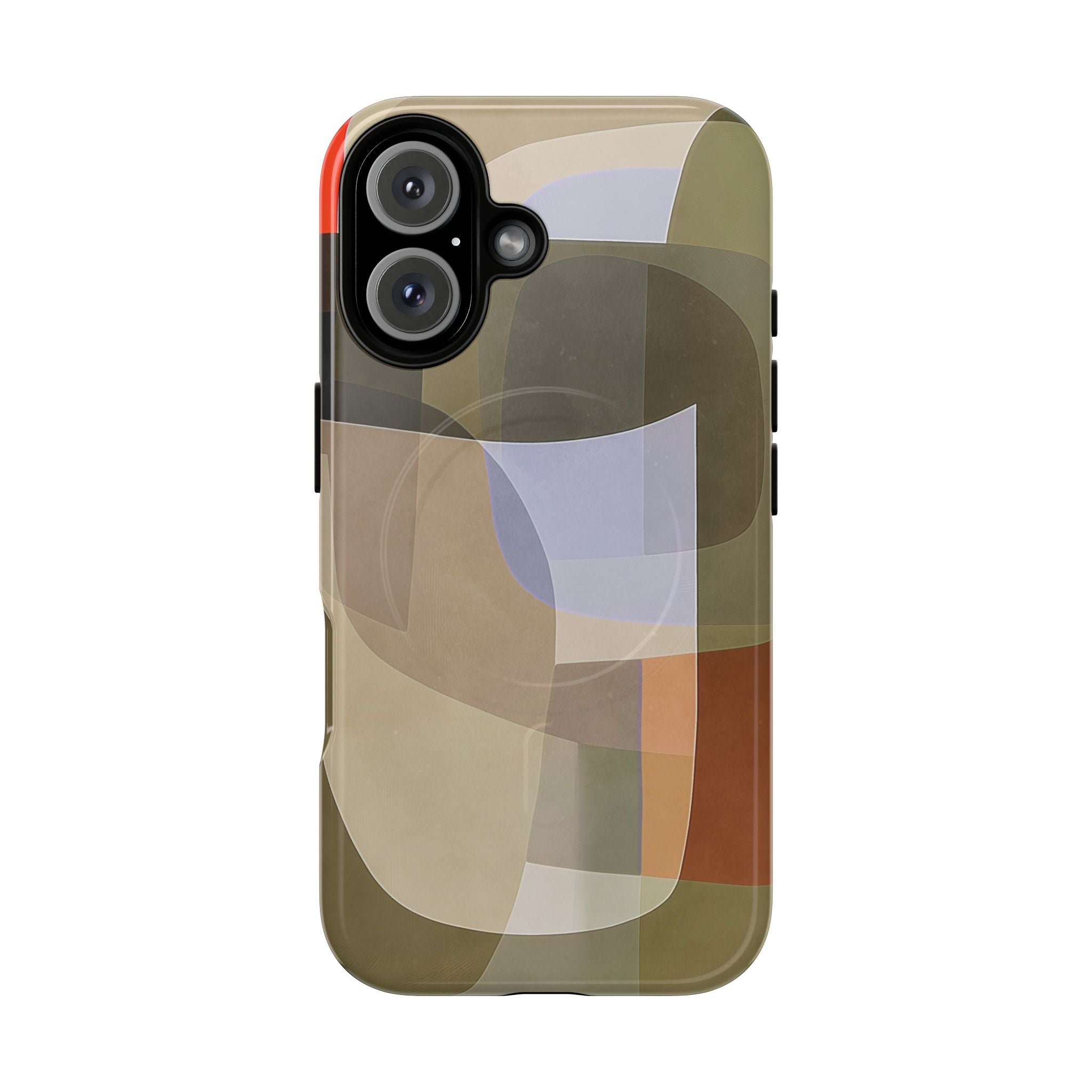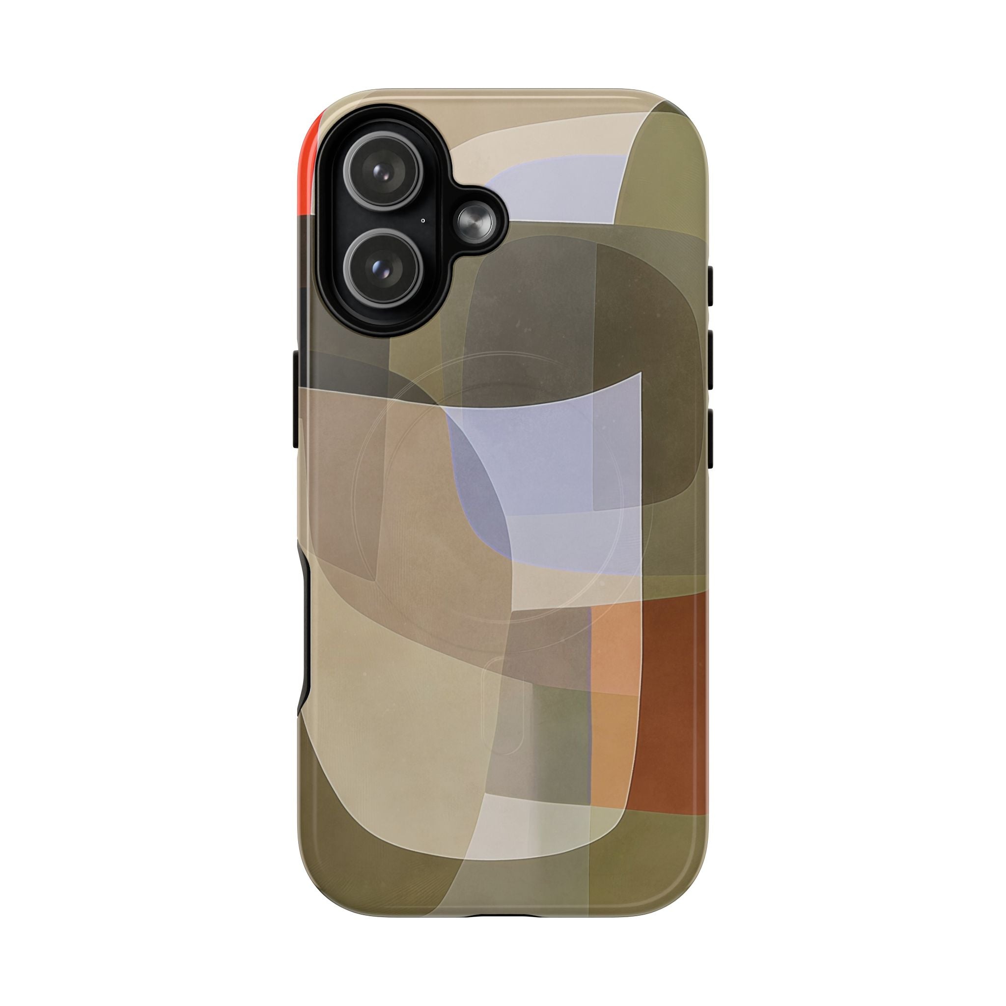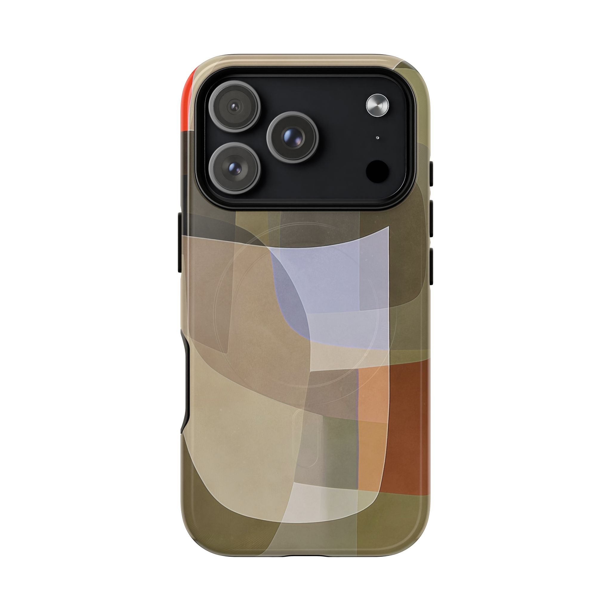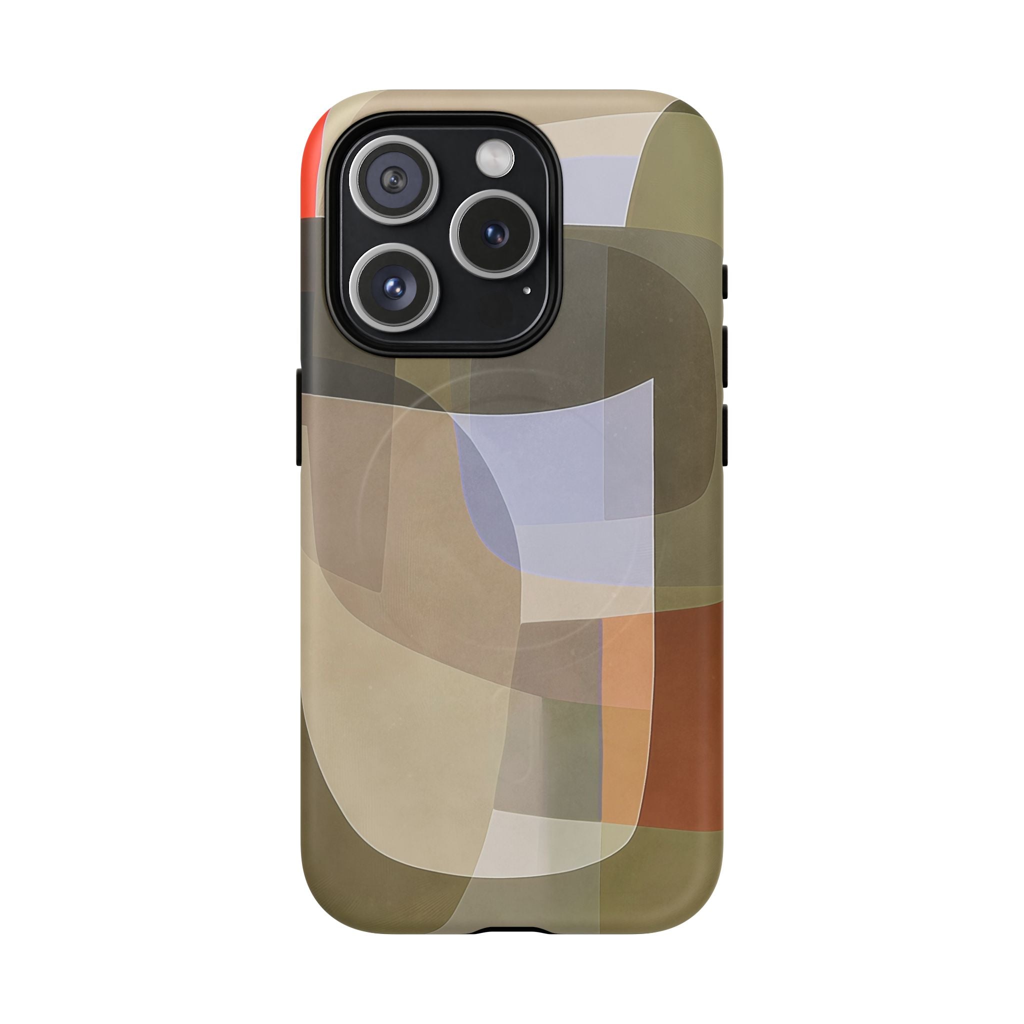 Abstract Art iPhone Case — Warm Geometric Shapes Phone Case, MagSafe Tough Case (iPhone 14, 15, 16, 17 Series)