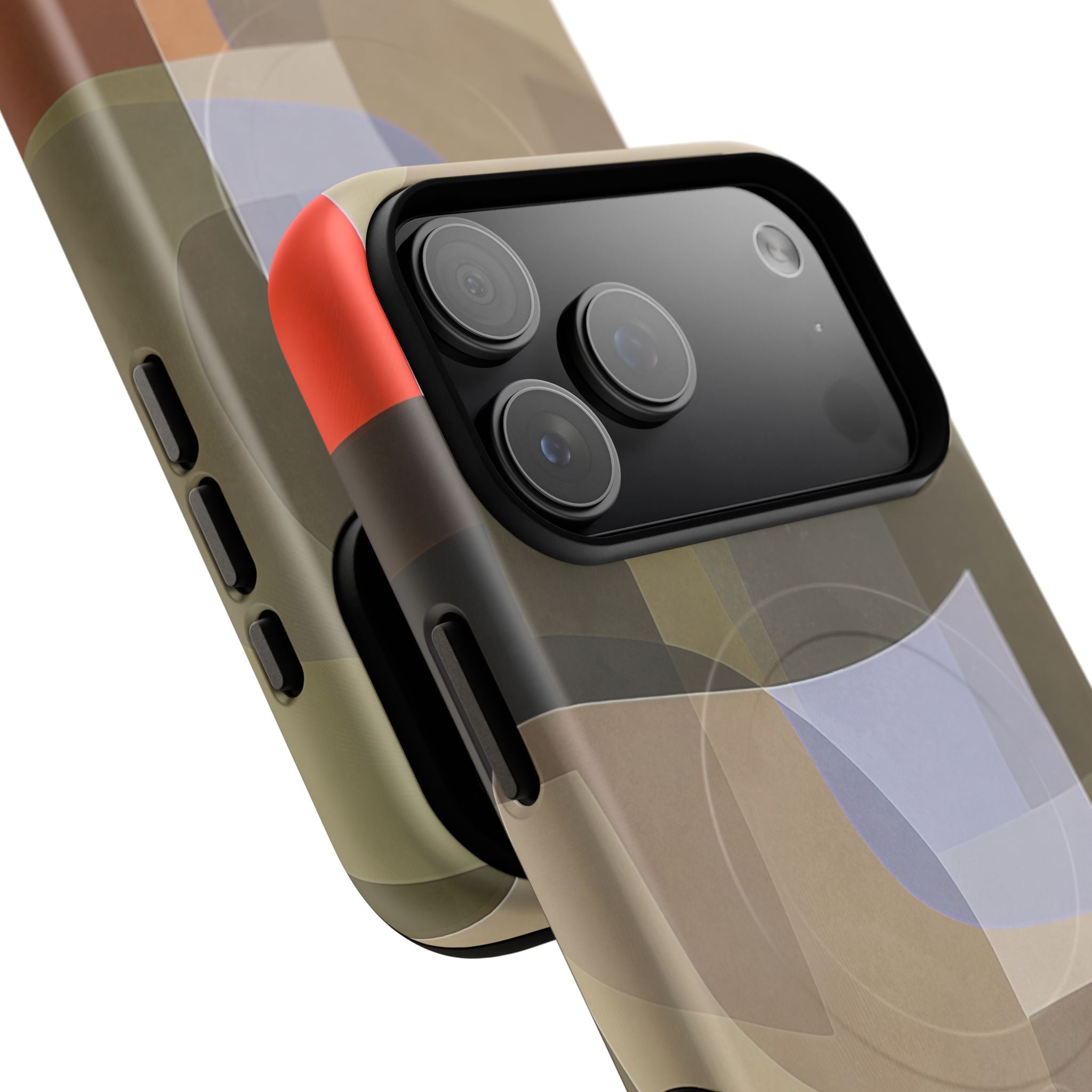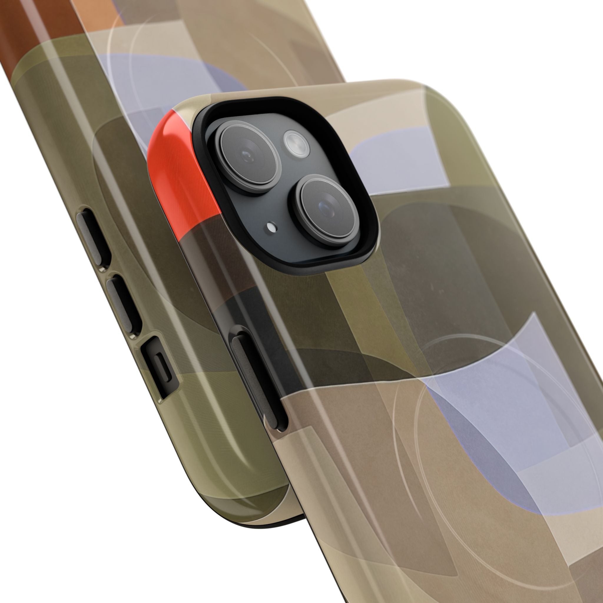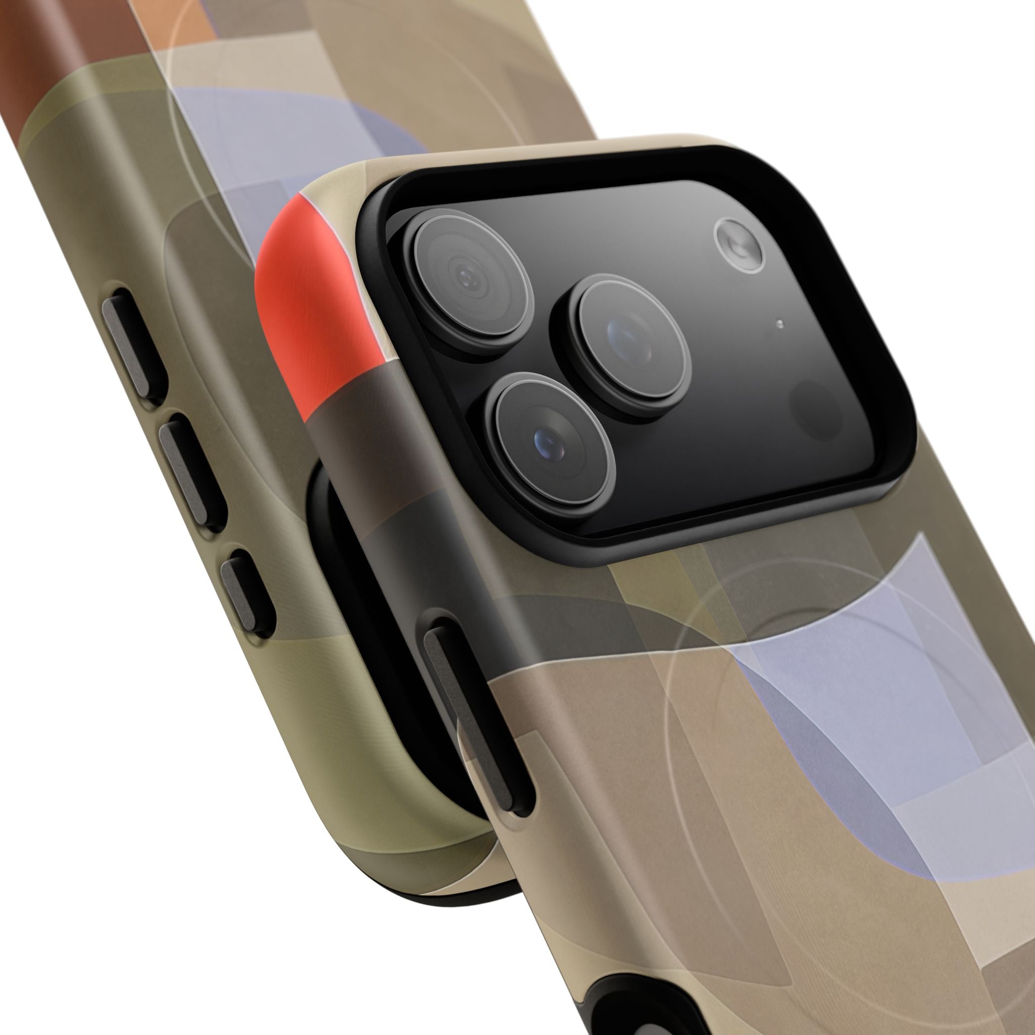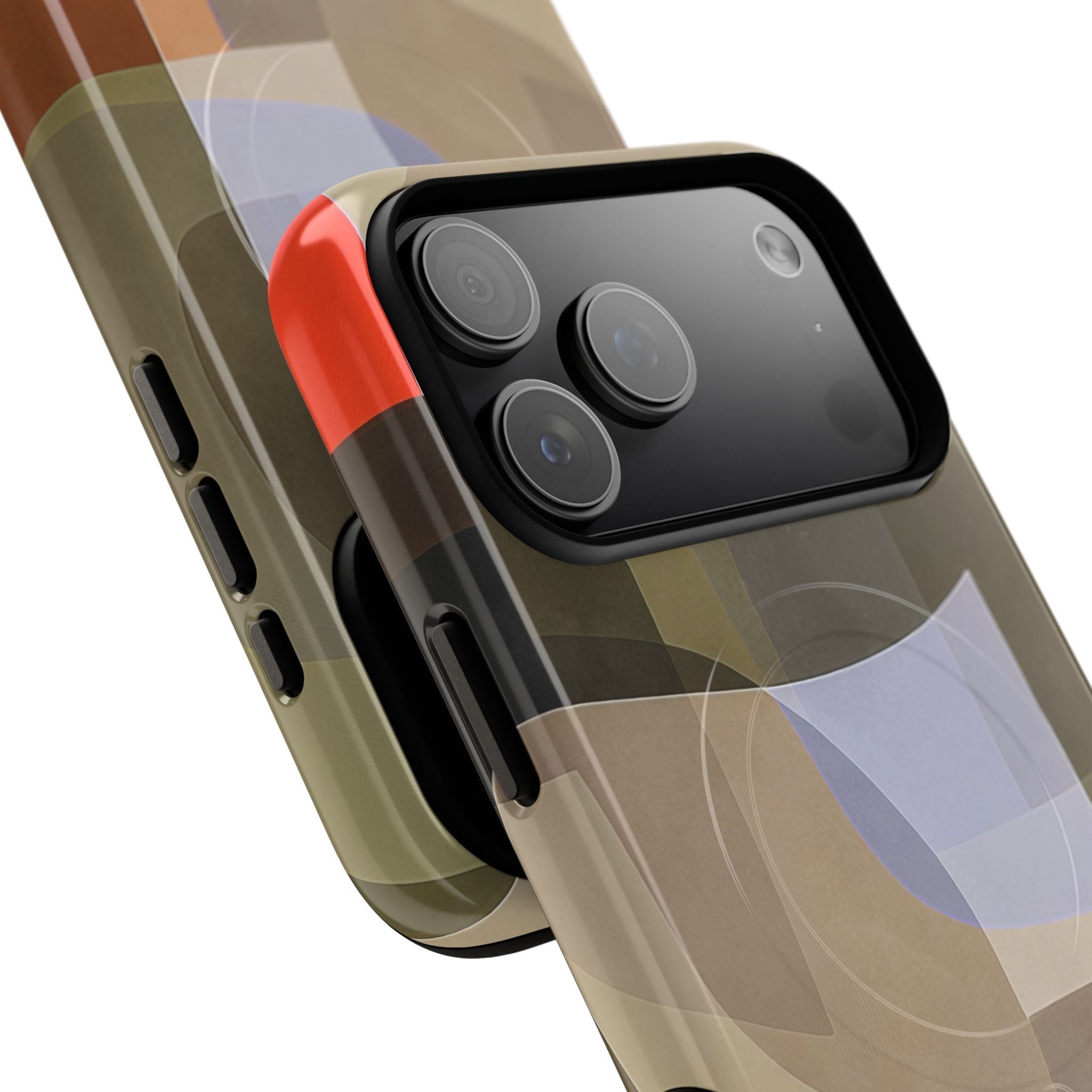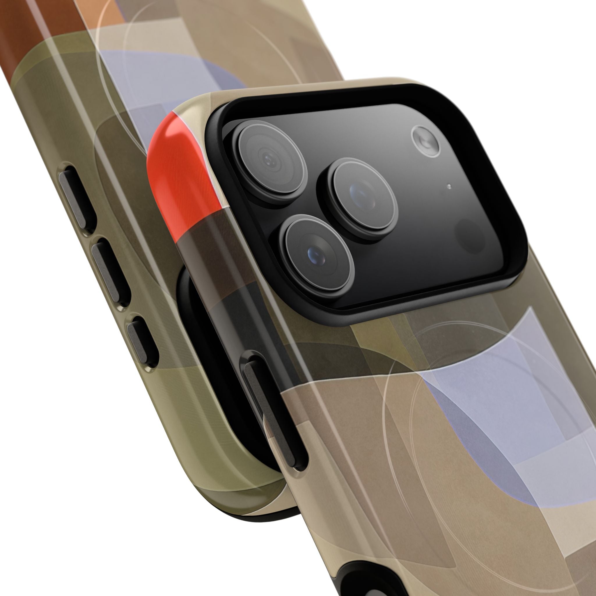 Abstract Art iPhone Case — Warm Geometric Shapes Phone Case, MagSafe Tough Case (iPhone 14, 15, 16, 17 Series)