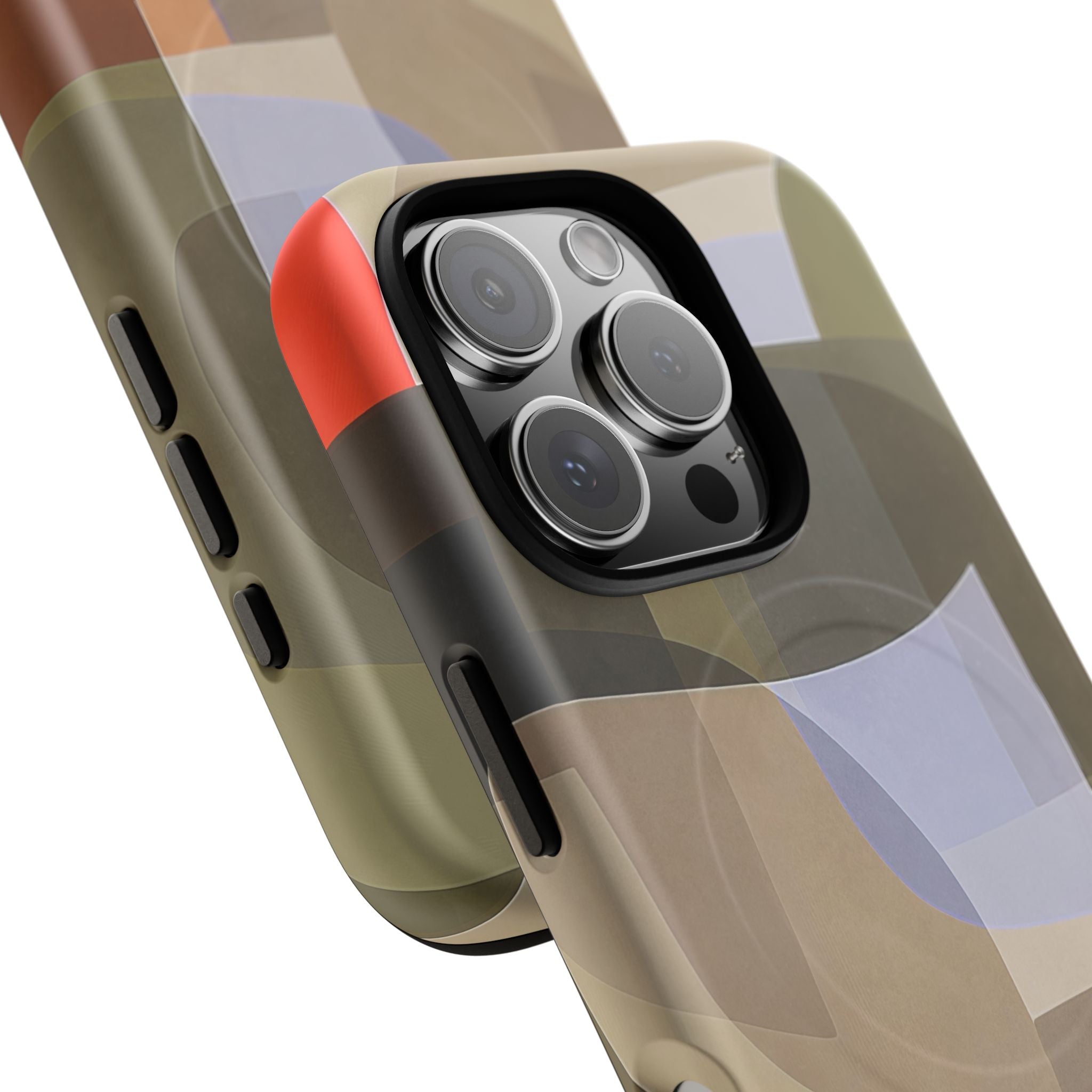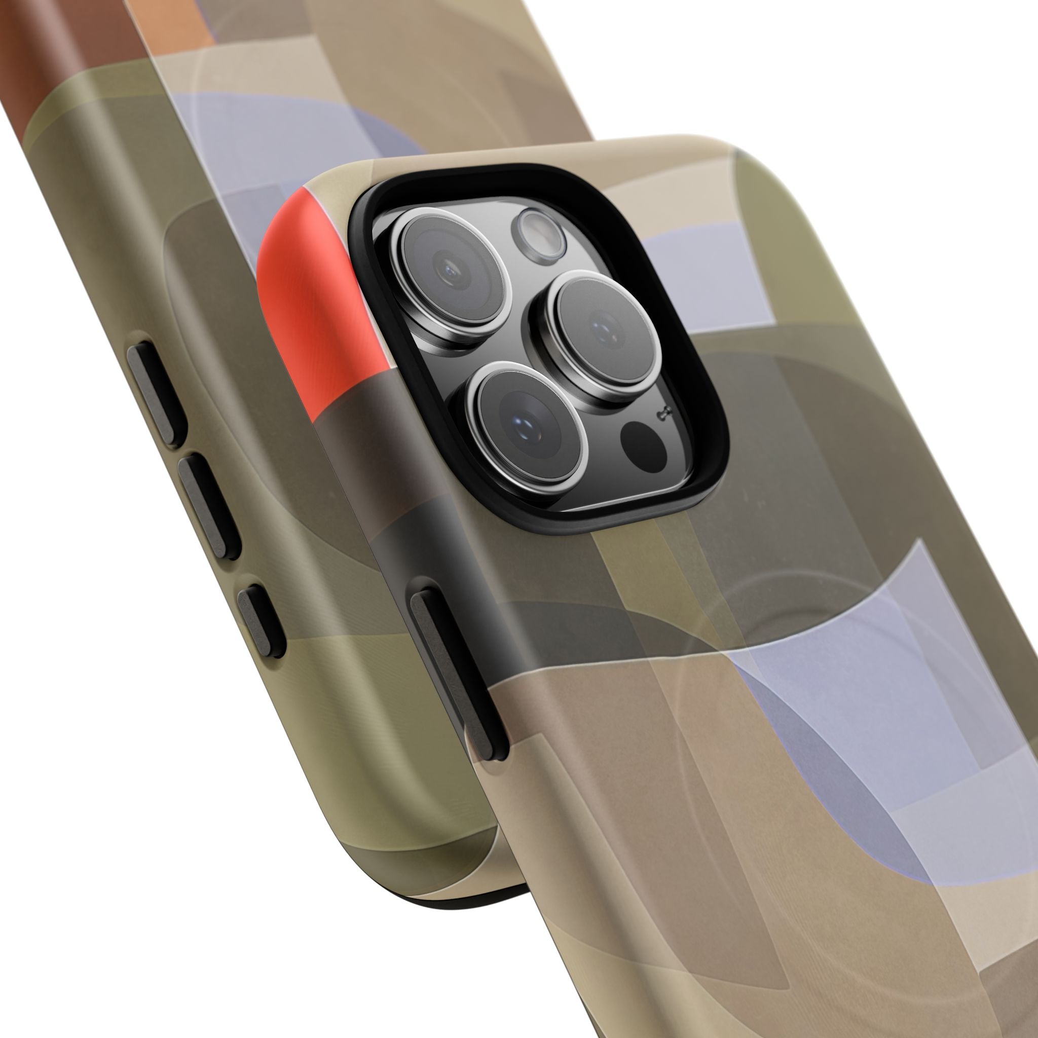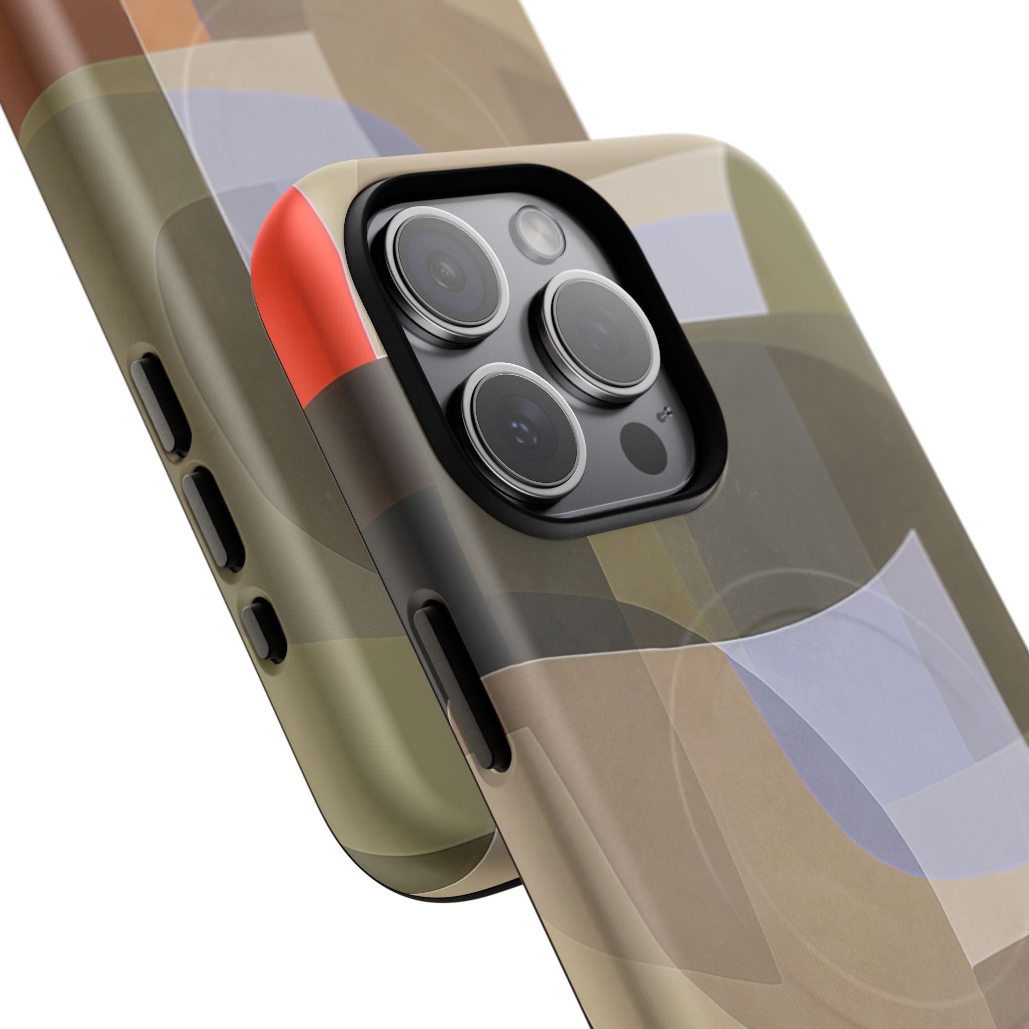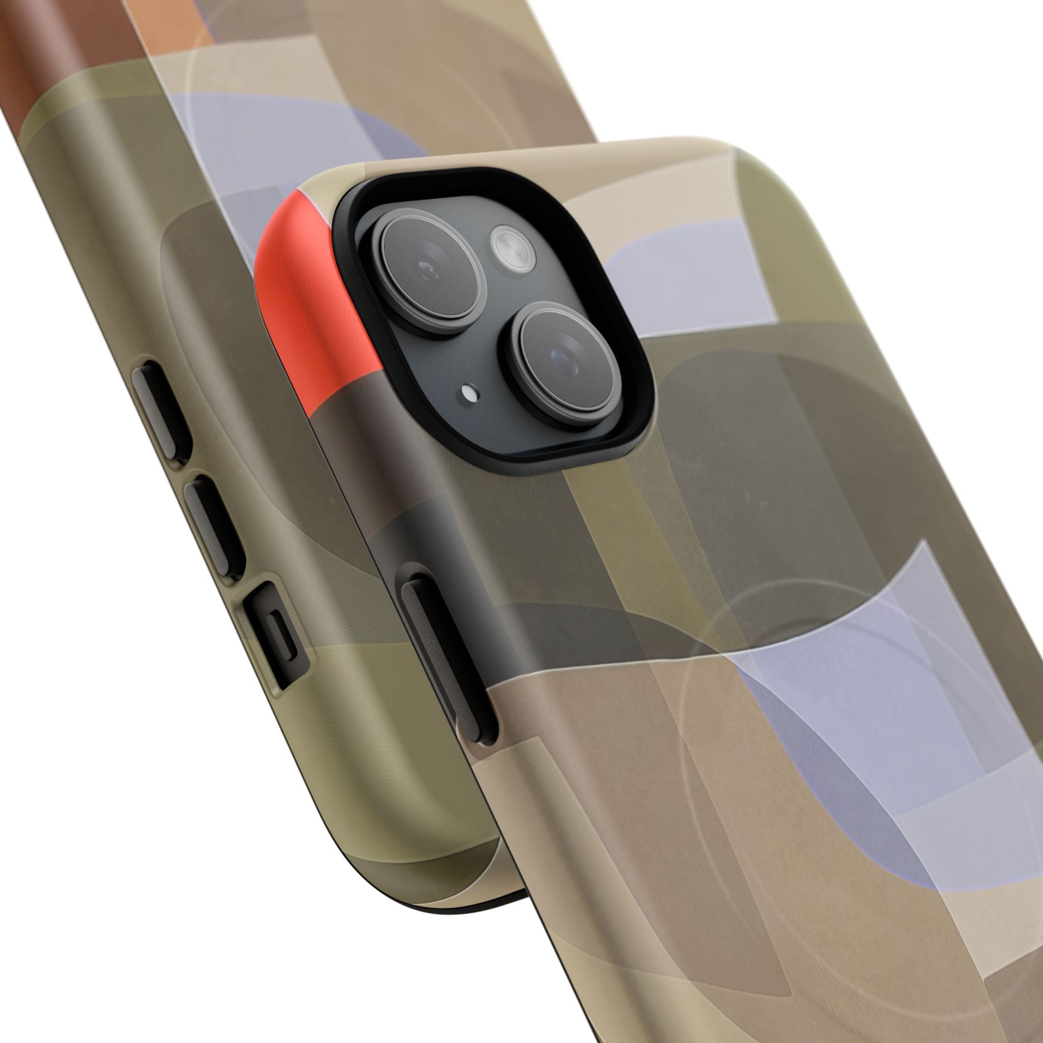 Abstract Art iPhone Case — Warm Geometric Shapes Phone Case, MagSafe Tough Case (iPhone 14, 15, 16, 17 Series)