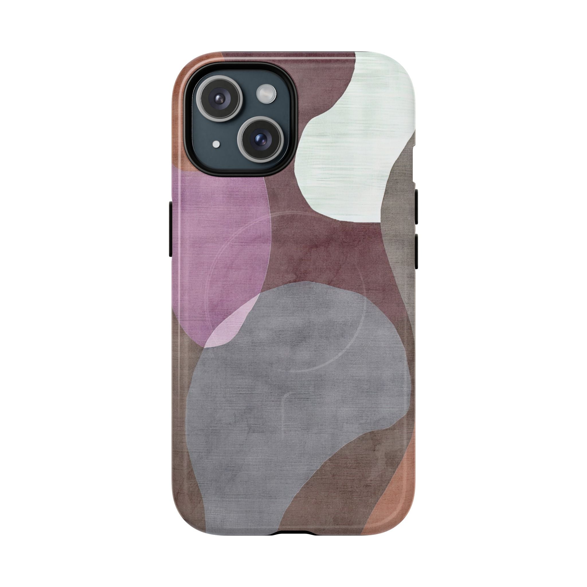 A diverse collection of abstract phone cases exploring geometric structure, textural depth, and flowing organic forms. Each series — from Soft Forms to Geometric Editions — brings its own interpretation of modern abstraction, blending layered hues, rhythmic patterns, and refined palettes. Created for those who appreciate subtle artistry in their everyday essentials, these MagSafe-compatible cases offer a calm, design-forward aesthetic that elevates your daily carry.