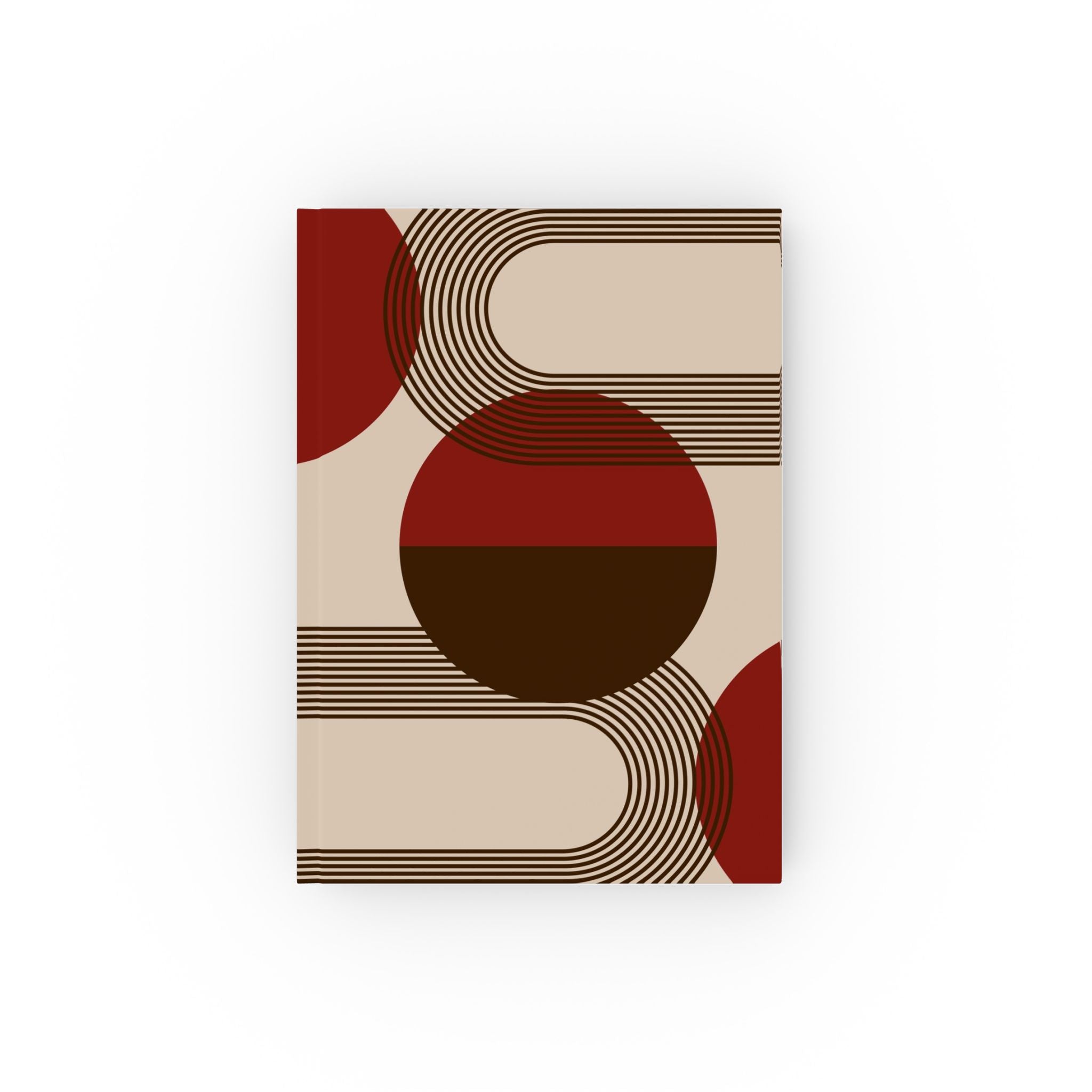 This ANTIPODE hardcover journal from the Modern Art Edition features a bold arrangement of curved linework and intersecting circles in brick red, deep brown, and softened beige. The design channels the rhythm of vintage graphic posters — geometric, grounded, and quietly confident. Matte lamination softens the surface, giving the notebook a tactile, modern finish that feels calm and intentional in the hand.