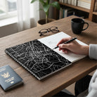 An internal document pocket keeps tickets, itineraries, and loose notes organised, while the durable dark-grey back cover resists wear and keeps the notebook looking polished as it travels with you. Designed to be practical, personal, and distinctly place-driven, this custom Bangkok map notebook is a subtle way to carry a city with you — wherever you go.