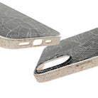 A slim, biodegradable phone case designed for people who appreciate thoughtful design and the texture of real cities. The matte, frosted surface features a crisp, high-definition London street-map pattern — a subtle monochrome illustration that adds depth without overpowering. The bamboo-blend edge offers a warm, natural feel, while the flexible construction cushions everyday bumps and slips comfortably in hand.