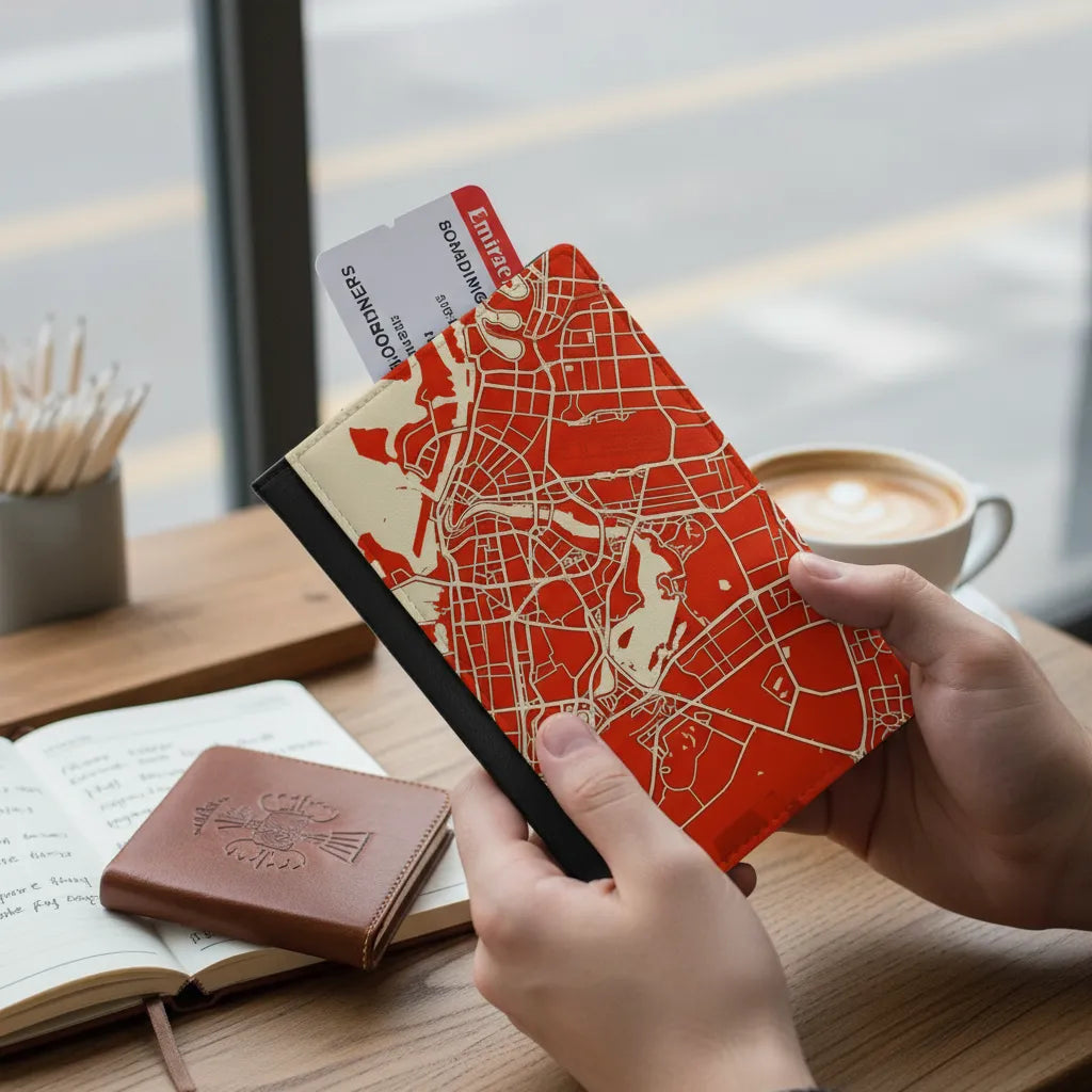Travel with Dubai in hand. This custom Dubai map passport holder transforms a real Dubai location into a refined travel essential, using authentic street-level map data to capture the city’s bold avenues, coastal edges, and distinctive urban layout. The result is a clean, modern map design that reflects a place defined by movement, ambition, and global connection.