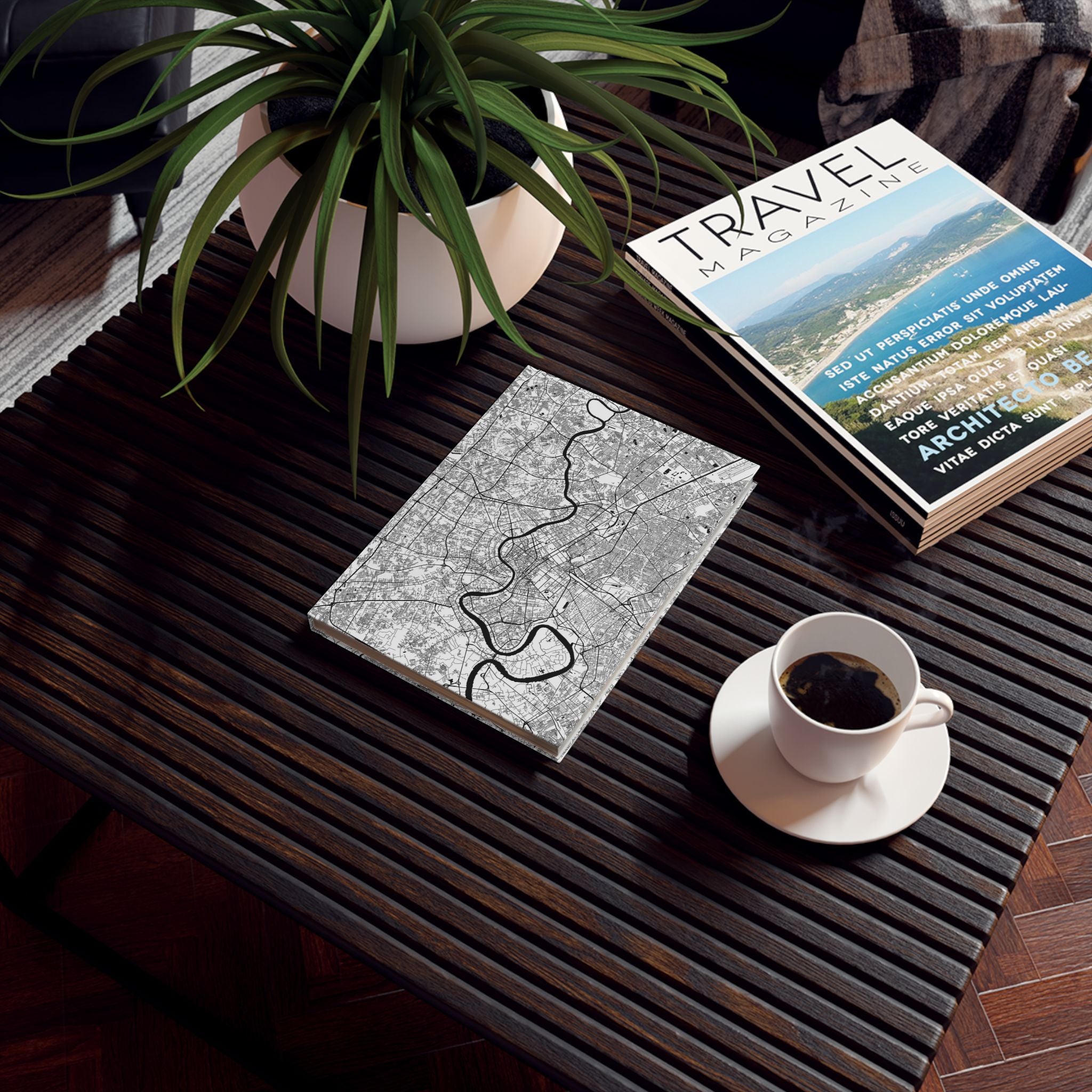 Capture ideas, plans, and daily notes in a journal shaped by Bangkok’s energetic flow and layered urban geometry. This hardback ANTIPODE journal features a full wraparound monochrome map of Bangkok, transforming a familiar piece of stationery into a quiet architectural statement for your desk, bag, or workspace. The crisp grayscale design feels modern, minimal, and refined—subtle enough for professional settings, yet distinctive enough for creative use.