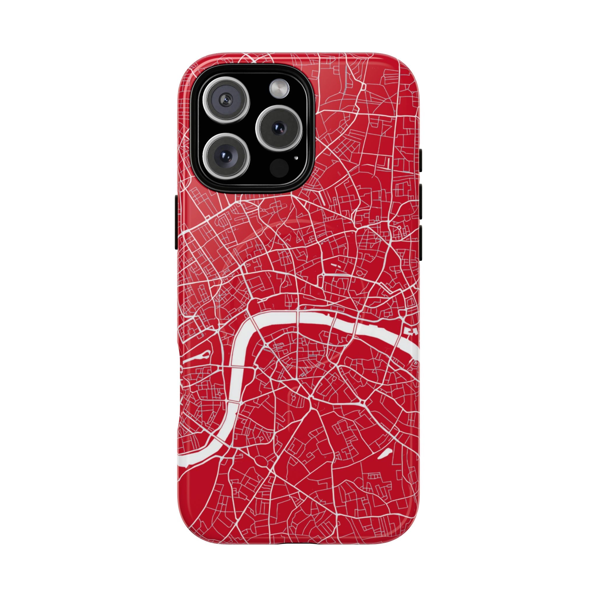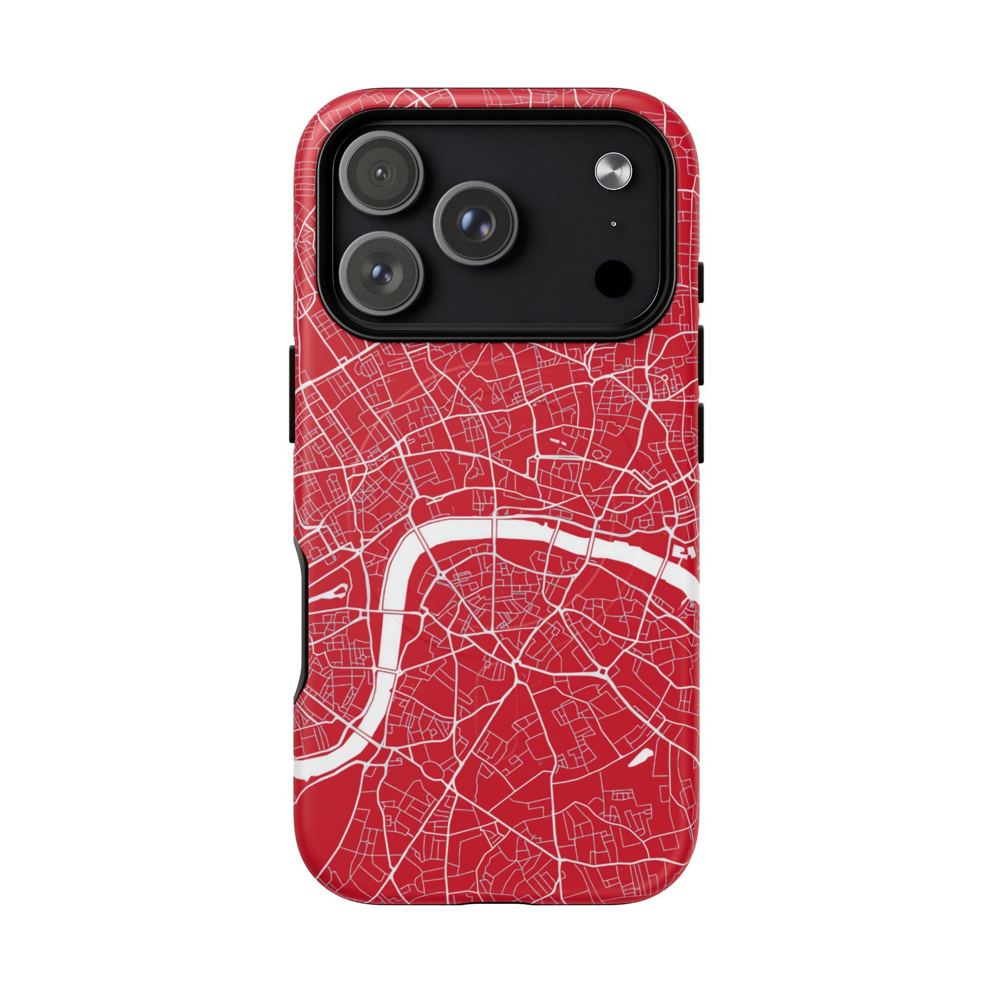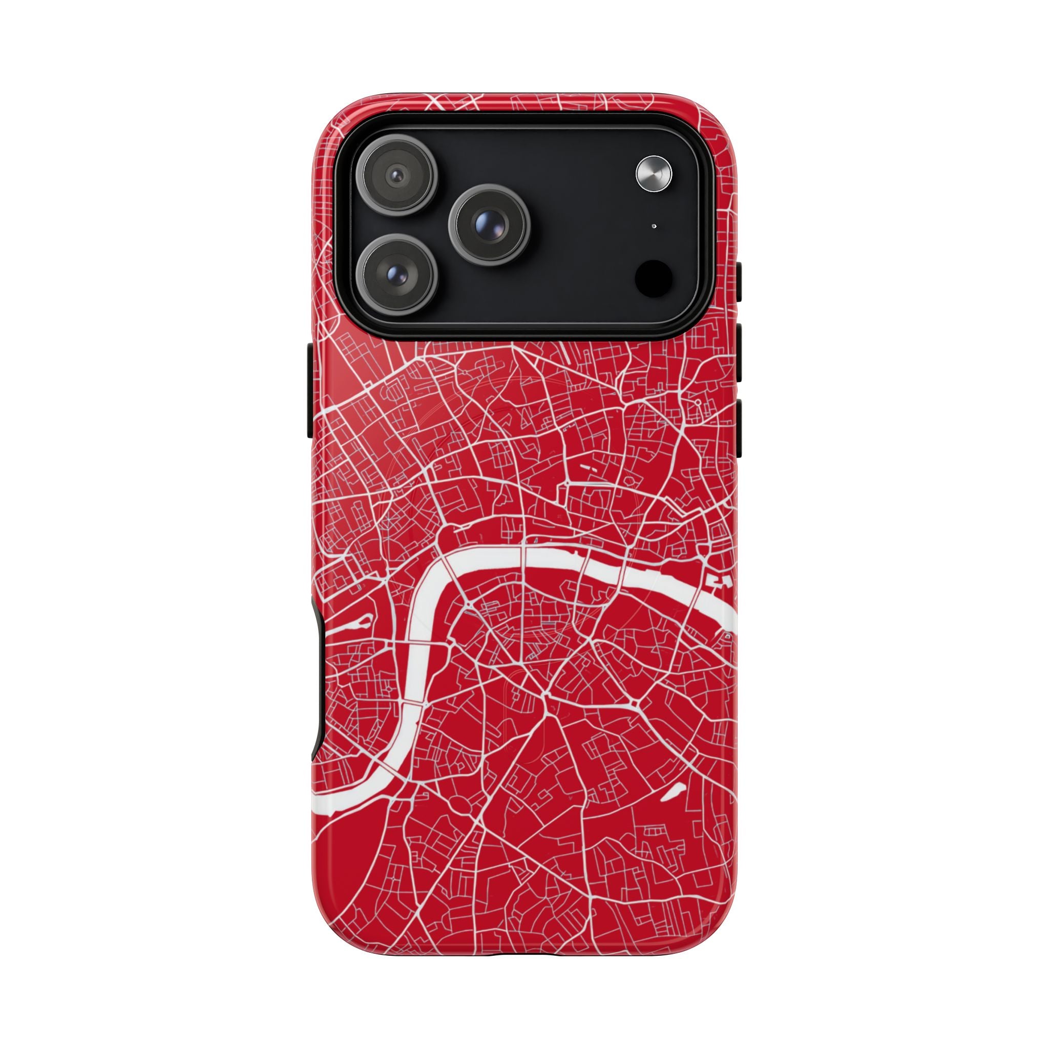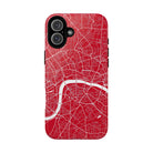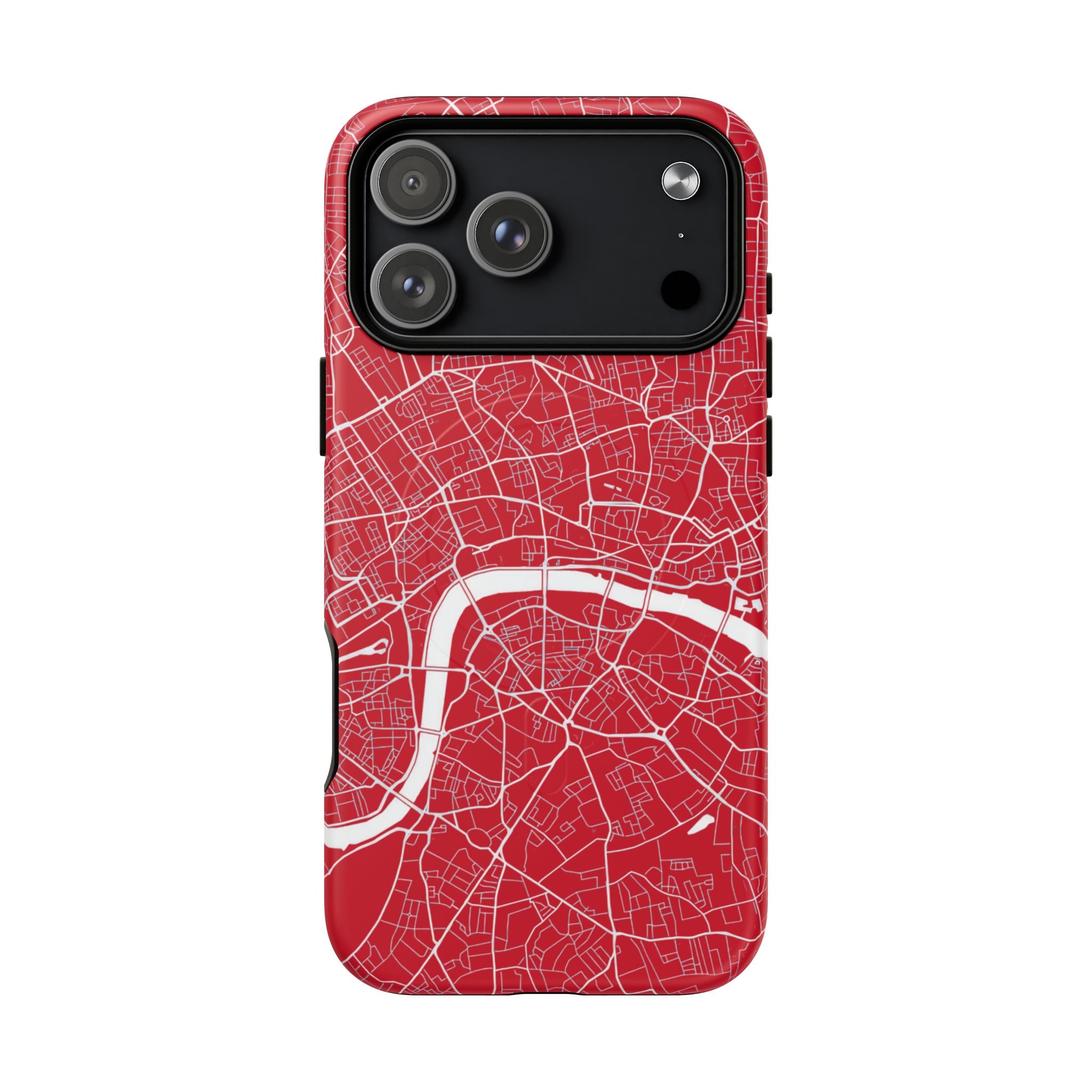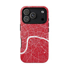 The London Map Phone Case – Red reinterprets the city through a bold street-map design finished in deep red tones. Striking yet refined, the colourway emphasises London’s dense street network and iconic river path, turning the city’s structure into a graphic, everyday statement.
