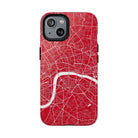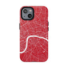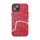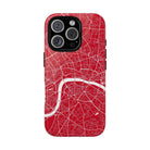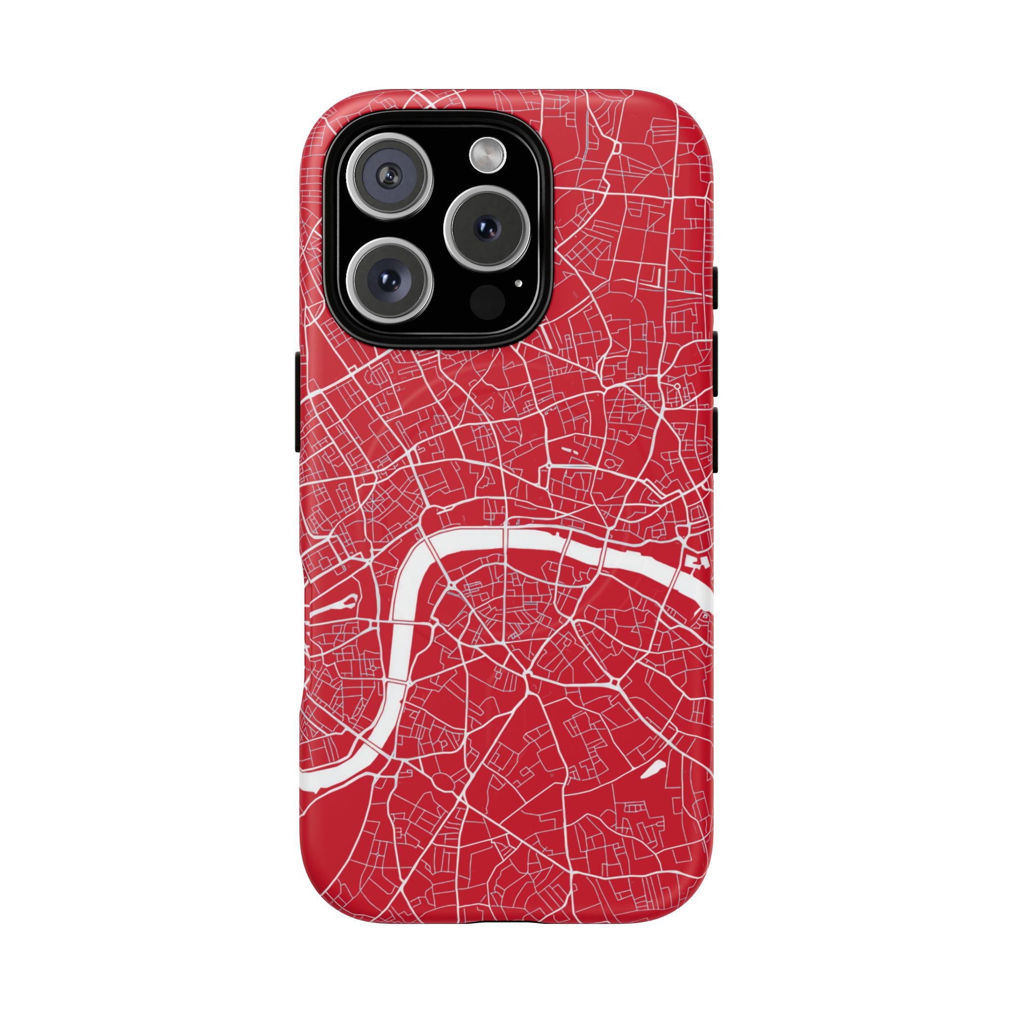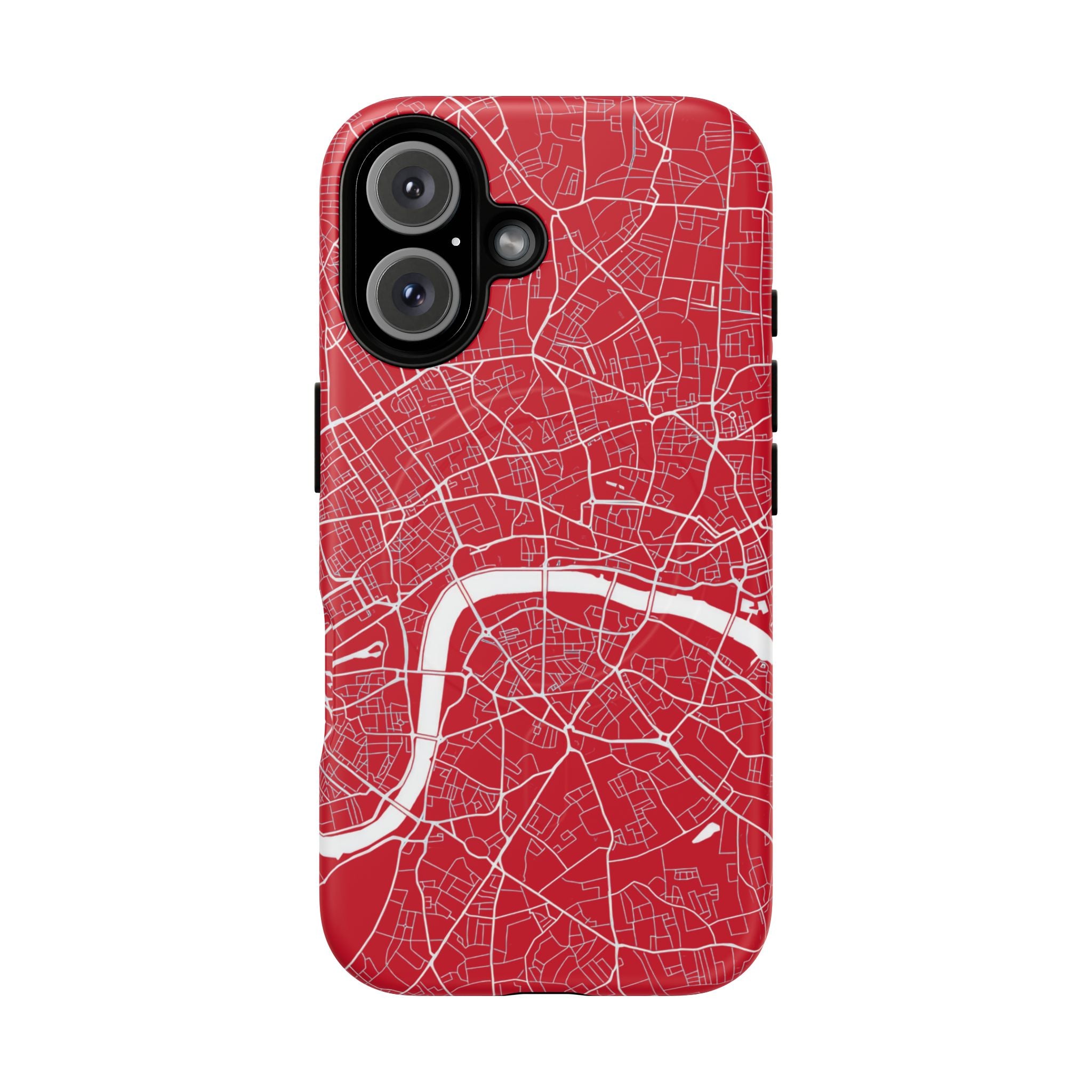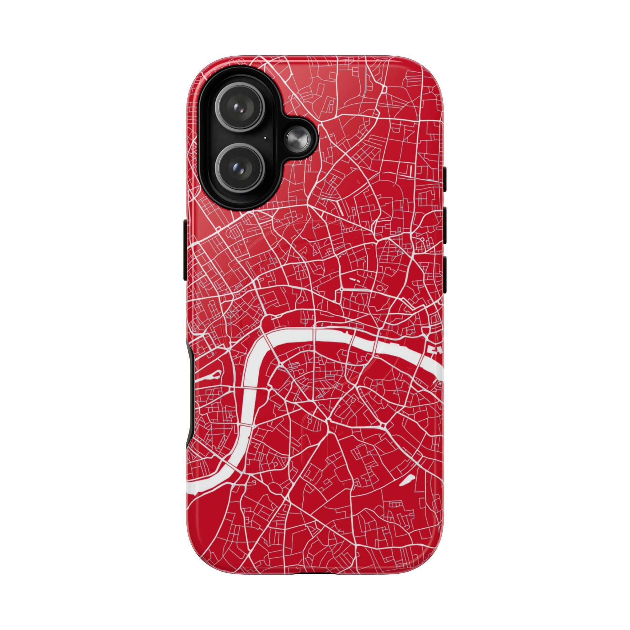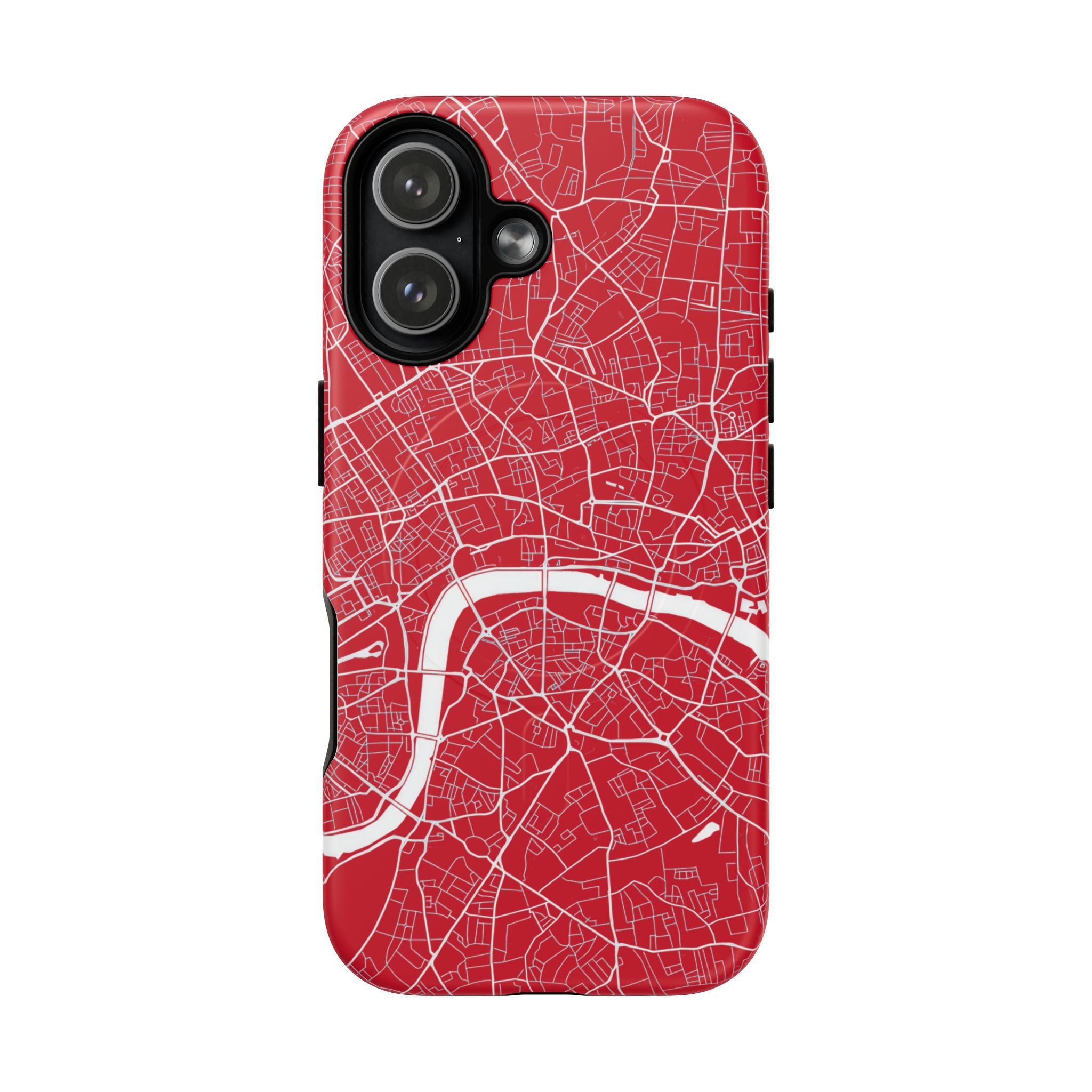 The London Map Phone Case – Red reinterprets the city through a bold street-map design finished in deep red tones. Striking yet refined, the colourway emphasises London’s dense street network and iconic river path, turning the city’s structure into a graphic, everyday statement.