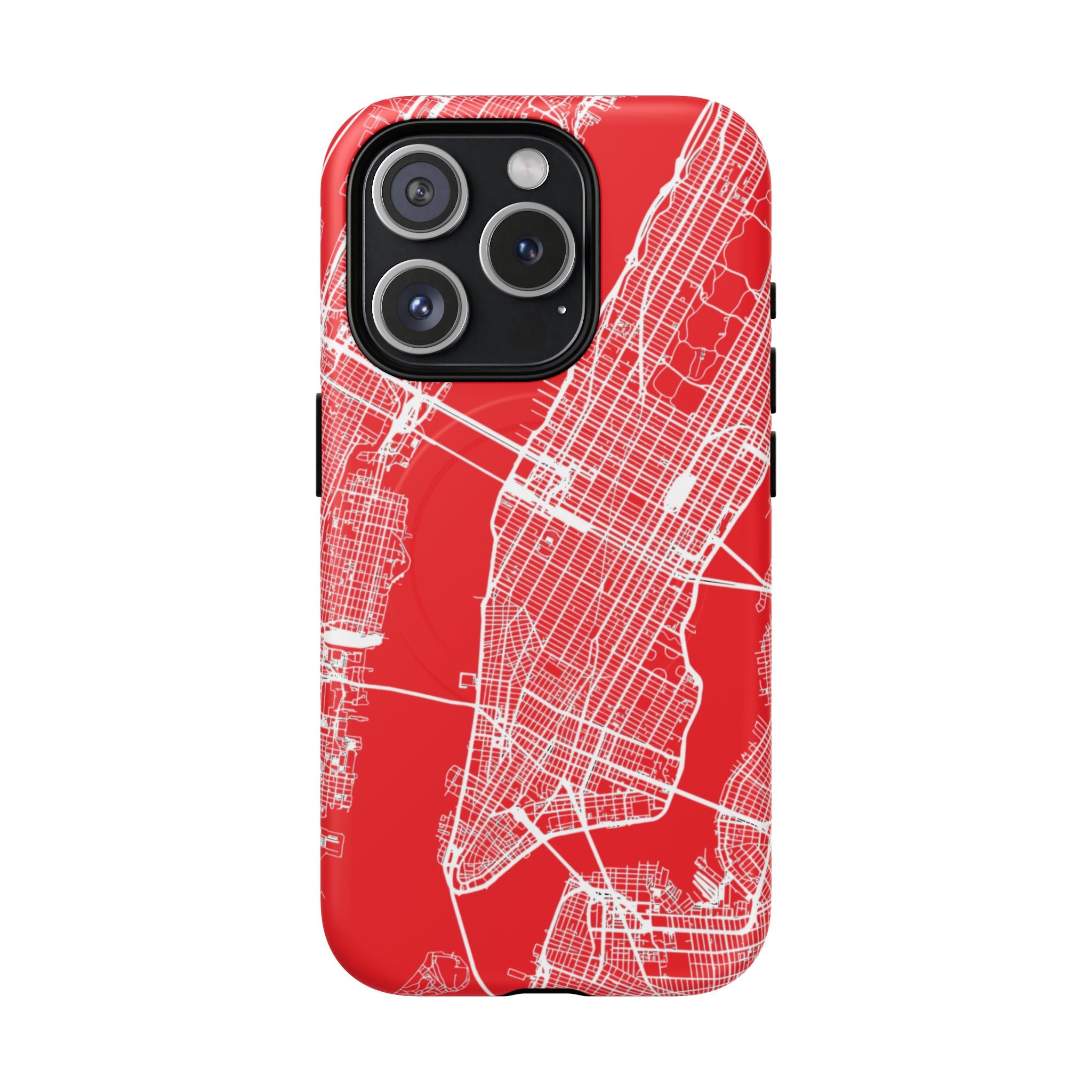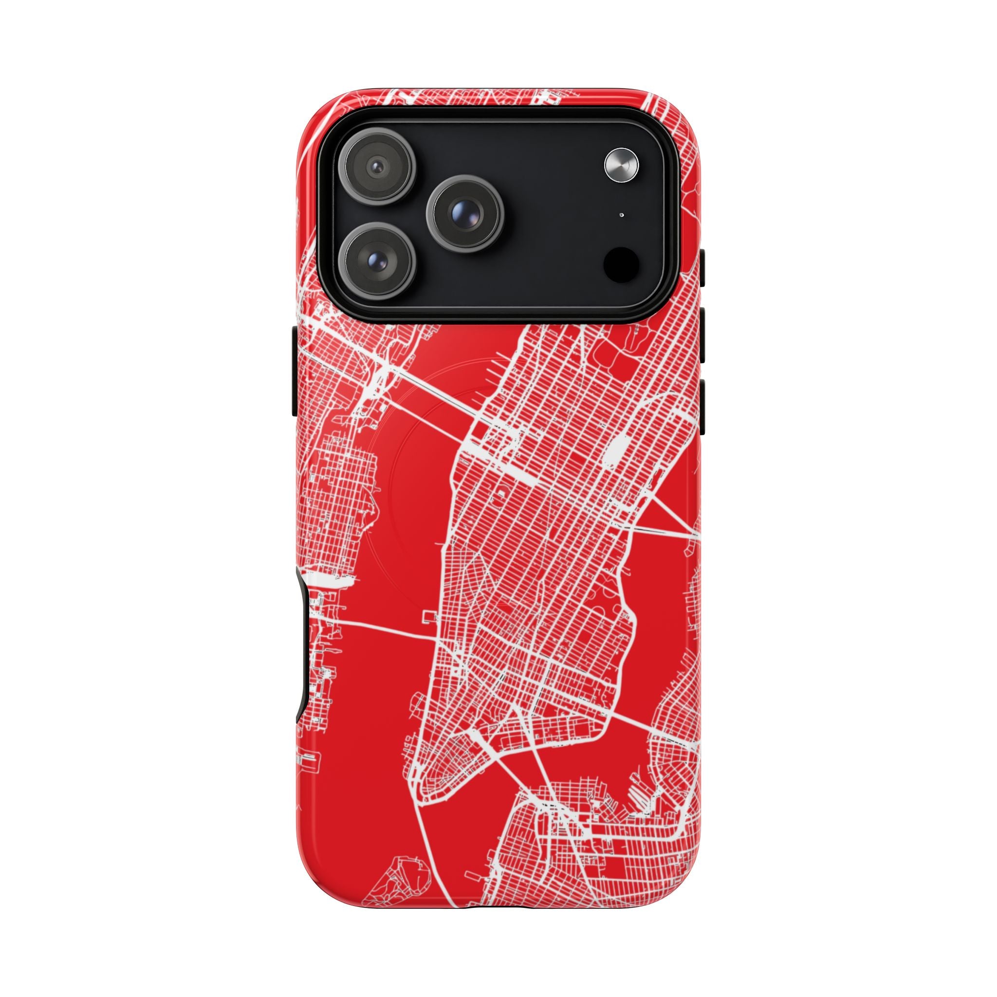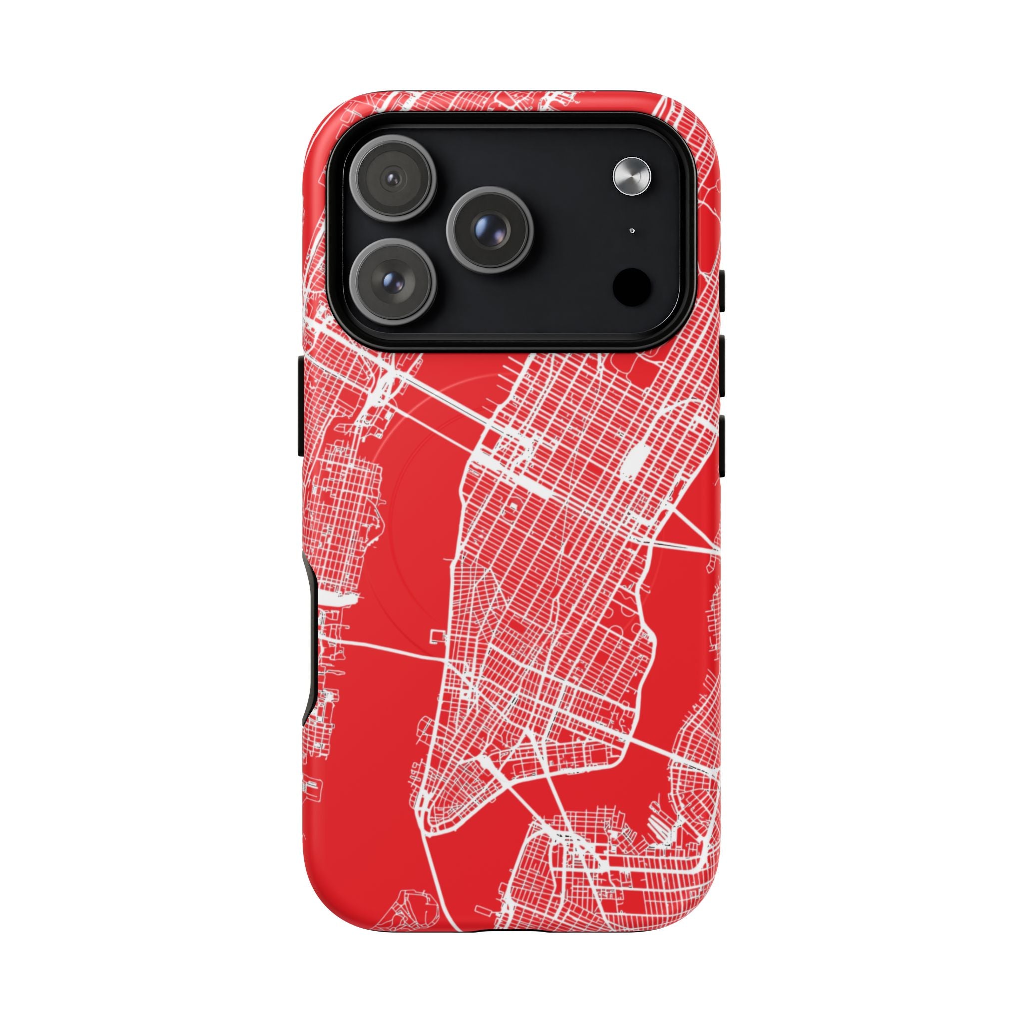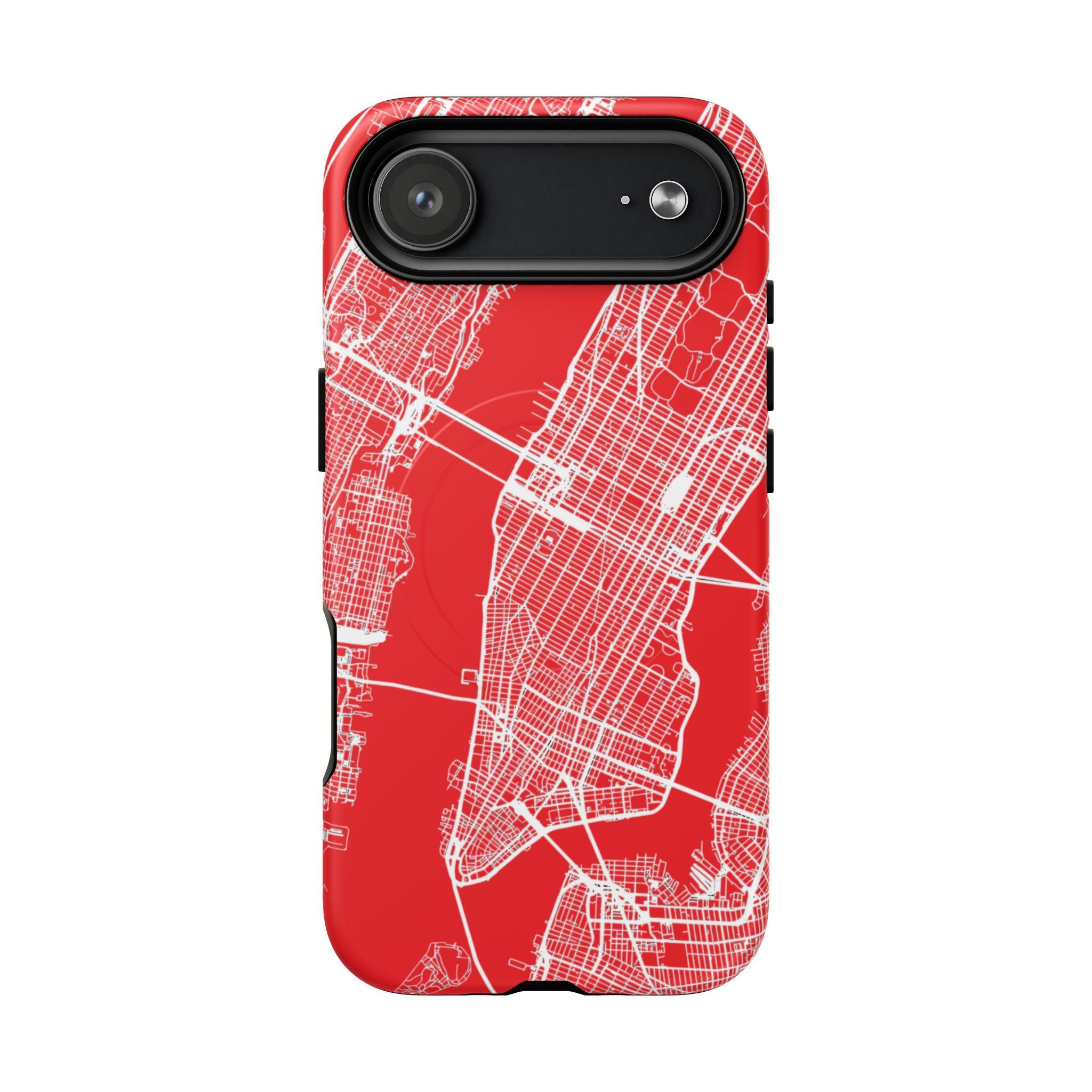 An integrated magnetic ring supports MagSafe® compatibility, allowing effortless attachment of chargers and magnetic accessories without removing the case. Available in matte or glossy premium finishes, the New York City Map Phone Case – Red Edition combines dependable protection with a striking city-driven design made for everyday carry.
