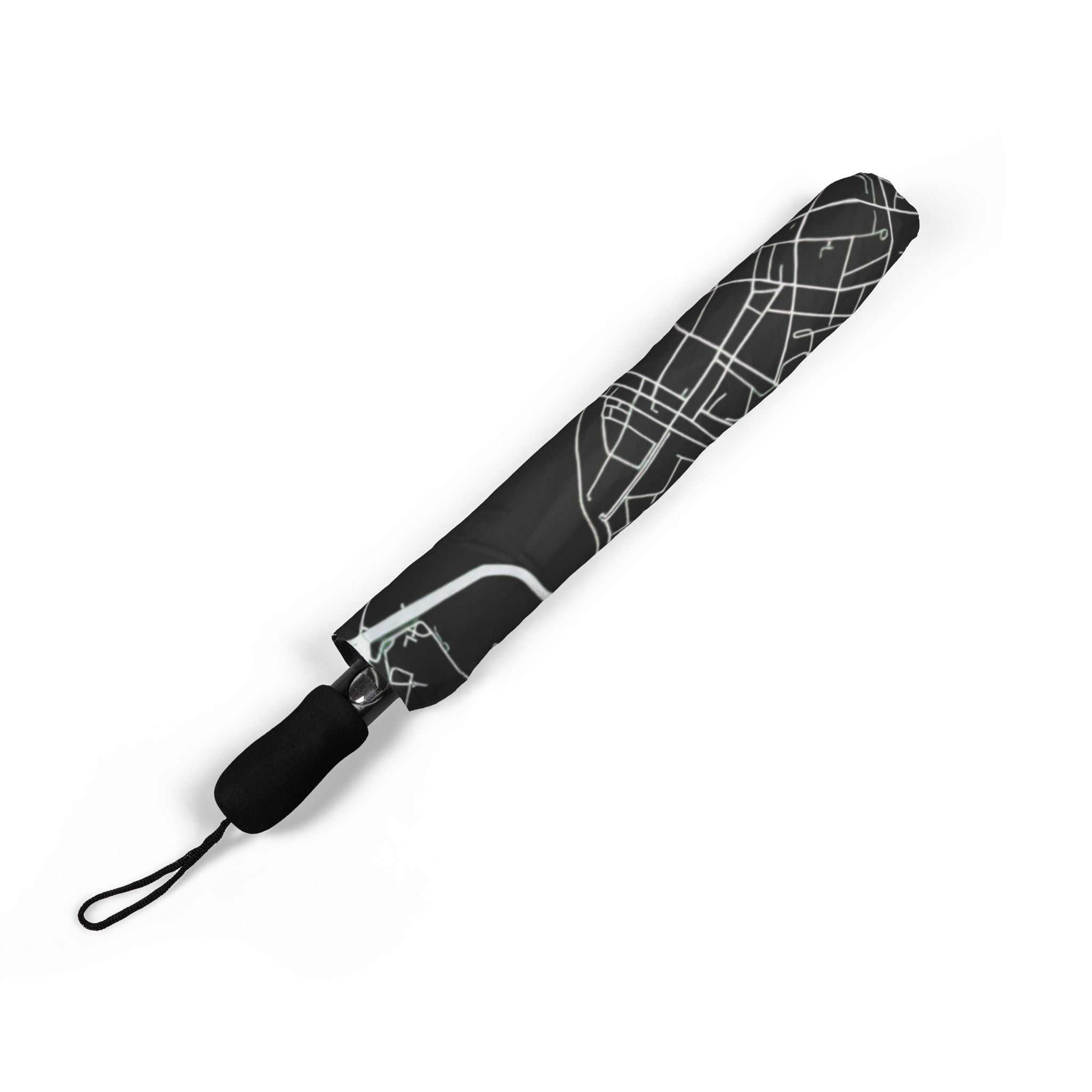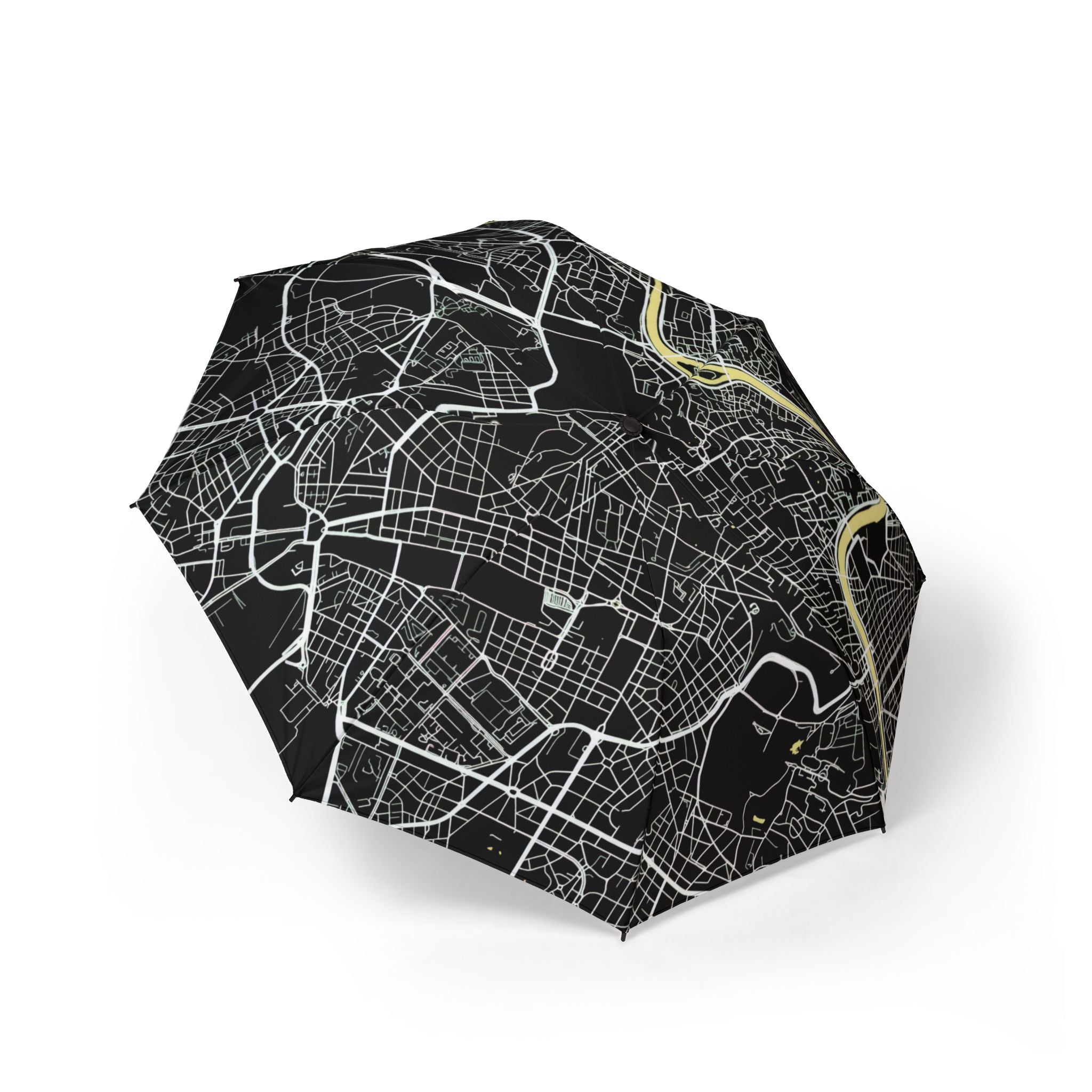 Rainy afternoons and evening strolls through historic streets take on a refined edge with the Rome Street Map Foldable Umbrella. Featuring a high-contrast white street map set against a deep black canopy, the design captures Rome’s layered road network, winding avenues, and river contours in striking architectural detail. Graphic, modern, and unmistakably urban, it transforms a practical everyday essential into a functional design object inspired by the Eternal City.