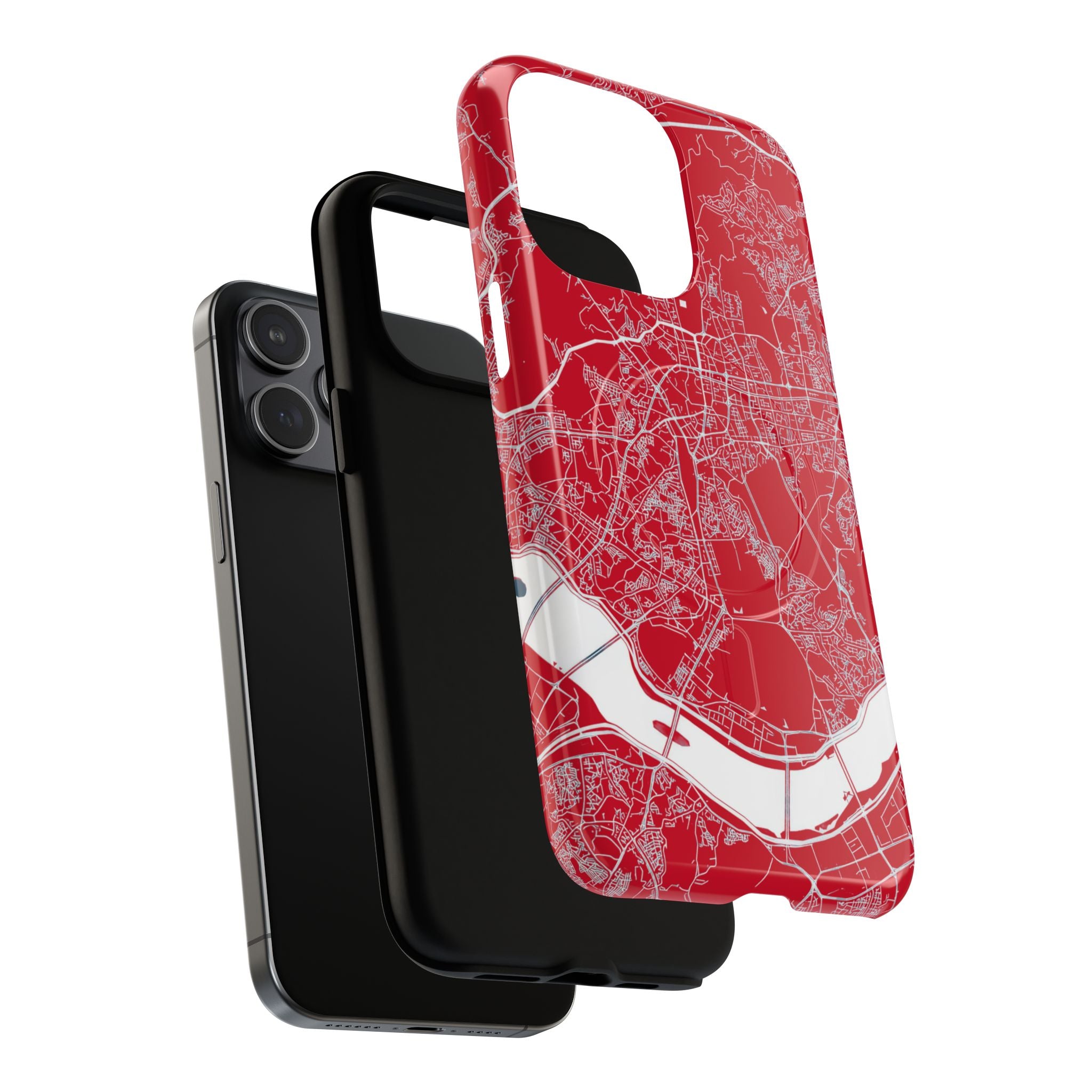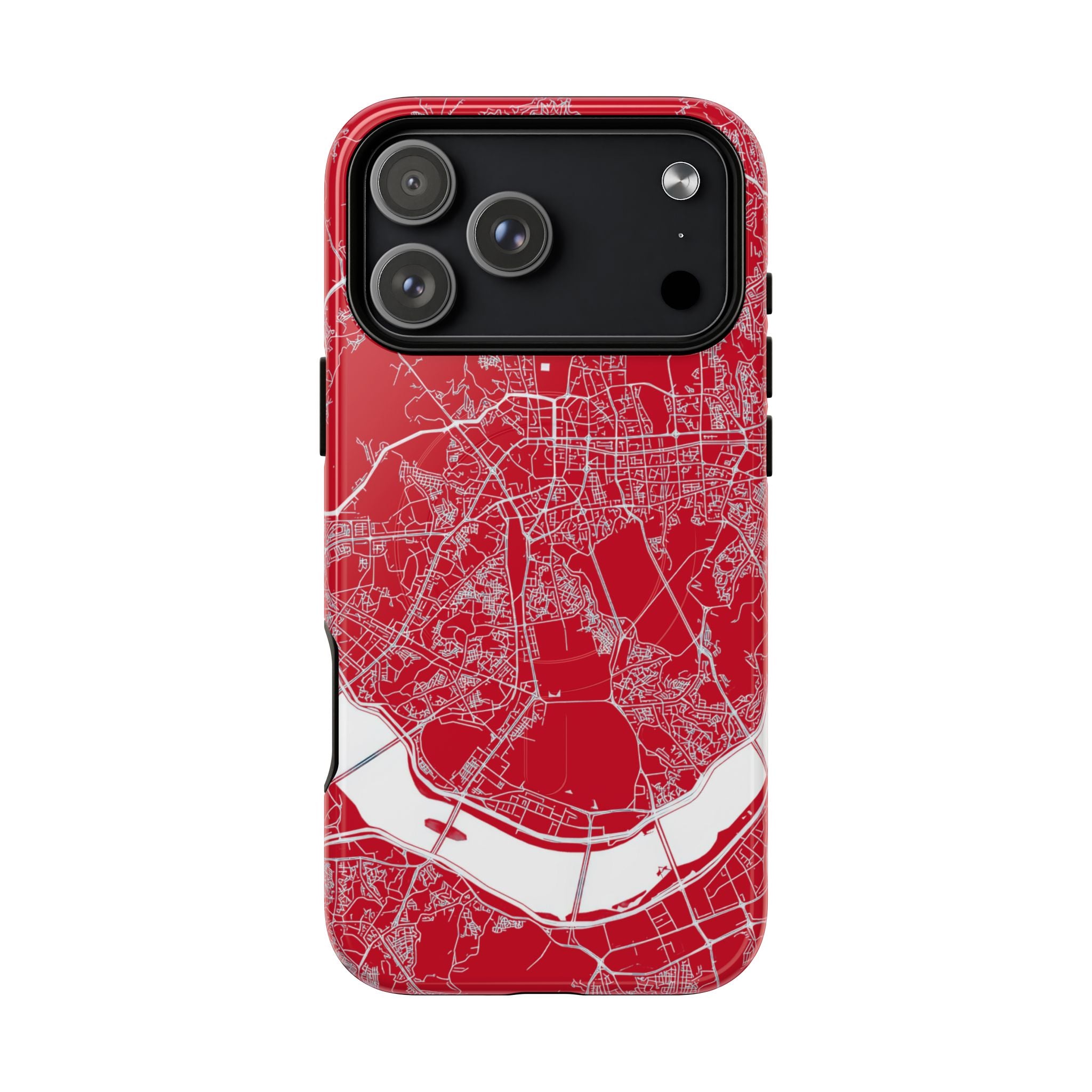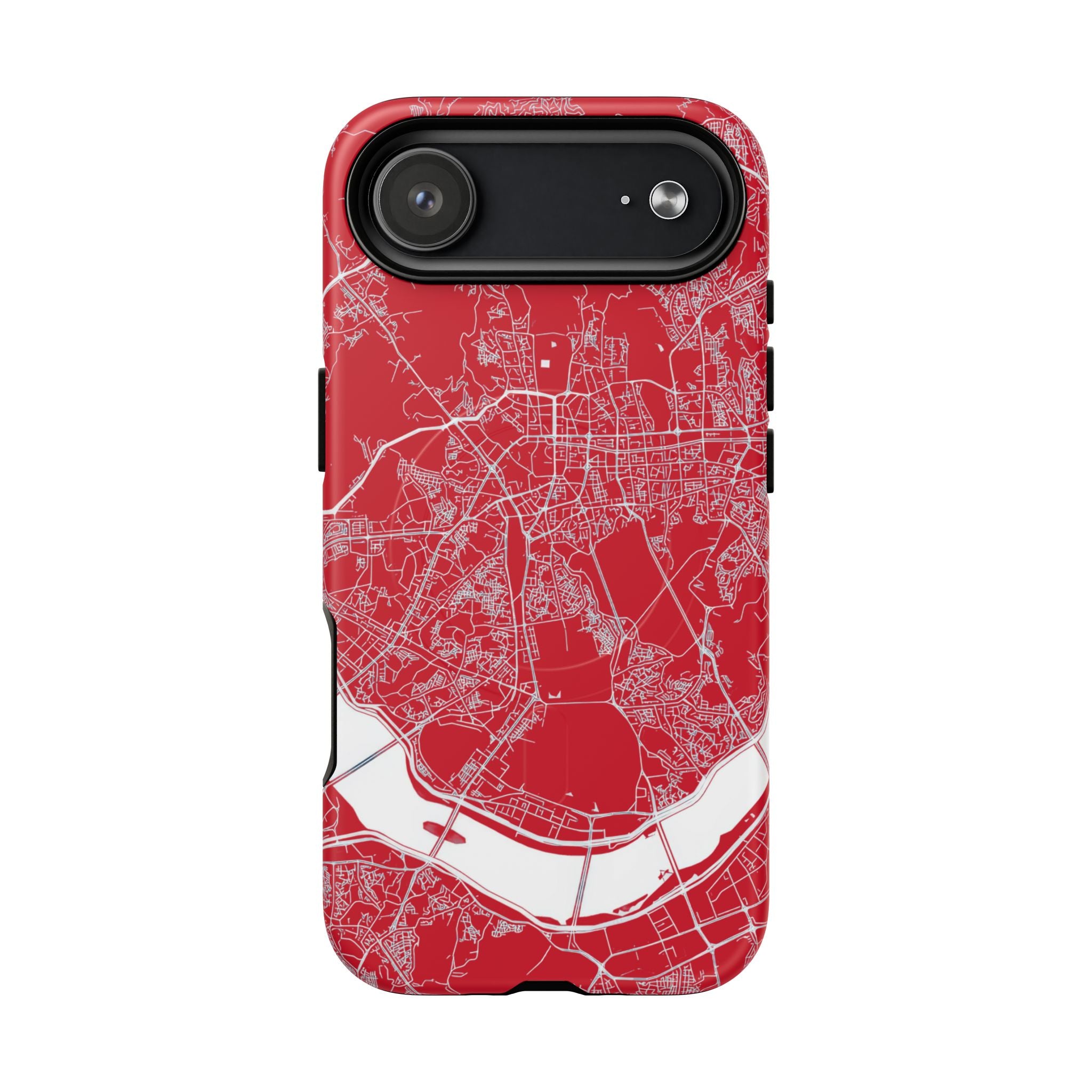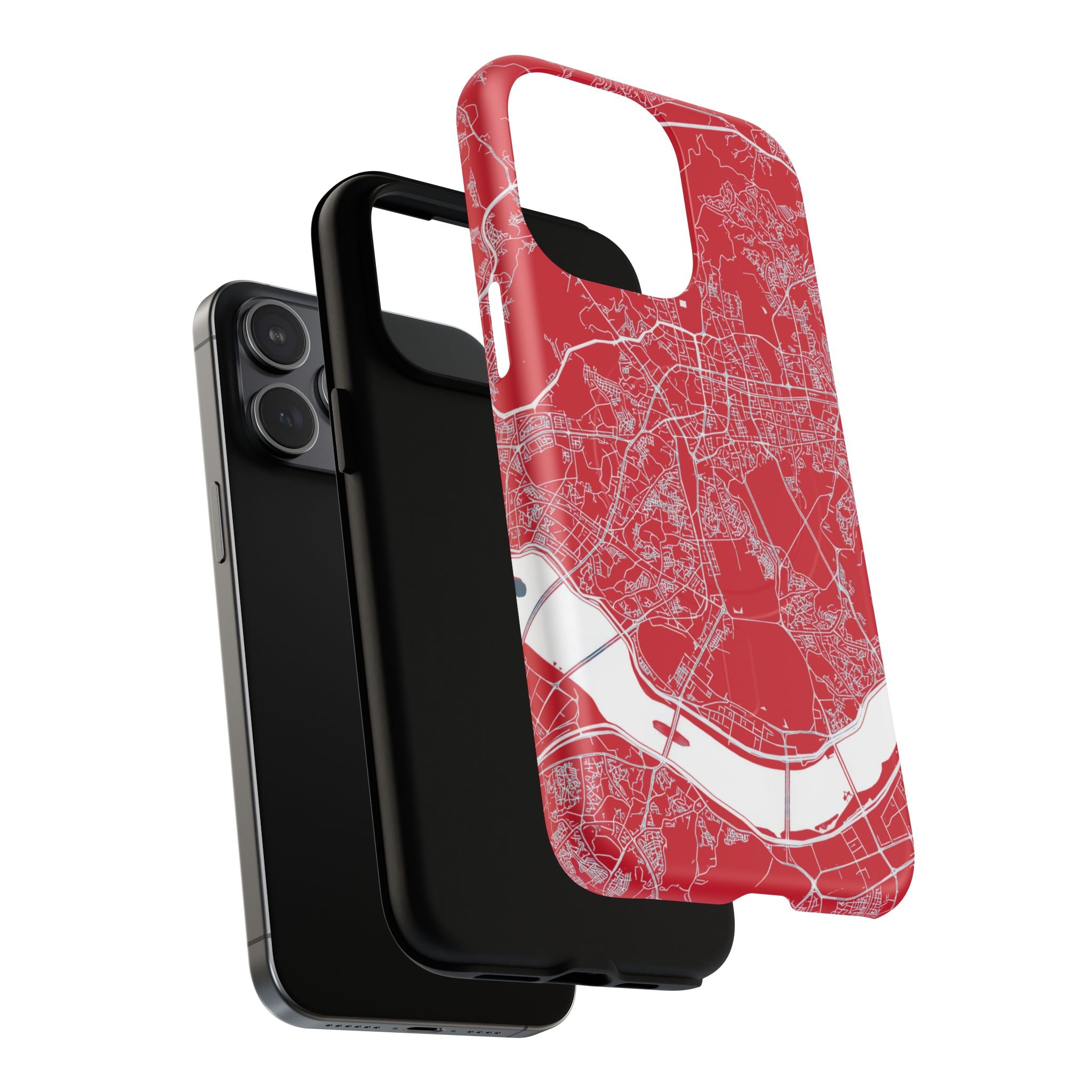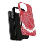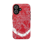 The Seoul Street Map Phone Case – River Edition (Red) transforms the city’s layered street network into a bold, high-impact graphic statement. Set against a vivid red backdrop, crisp white linework traces Seoul’s intricate roads, bridges, and the sweeping course of the Han River, placing the river at the heart of the design.