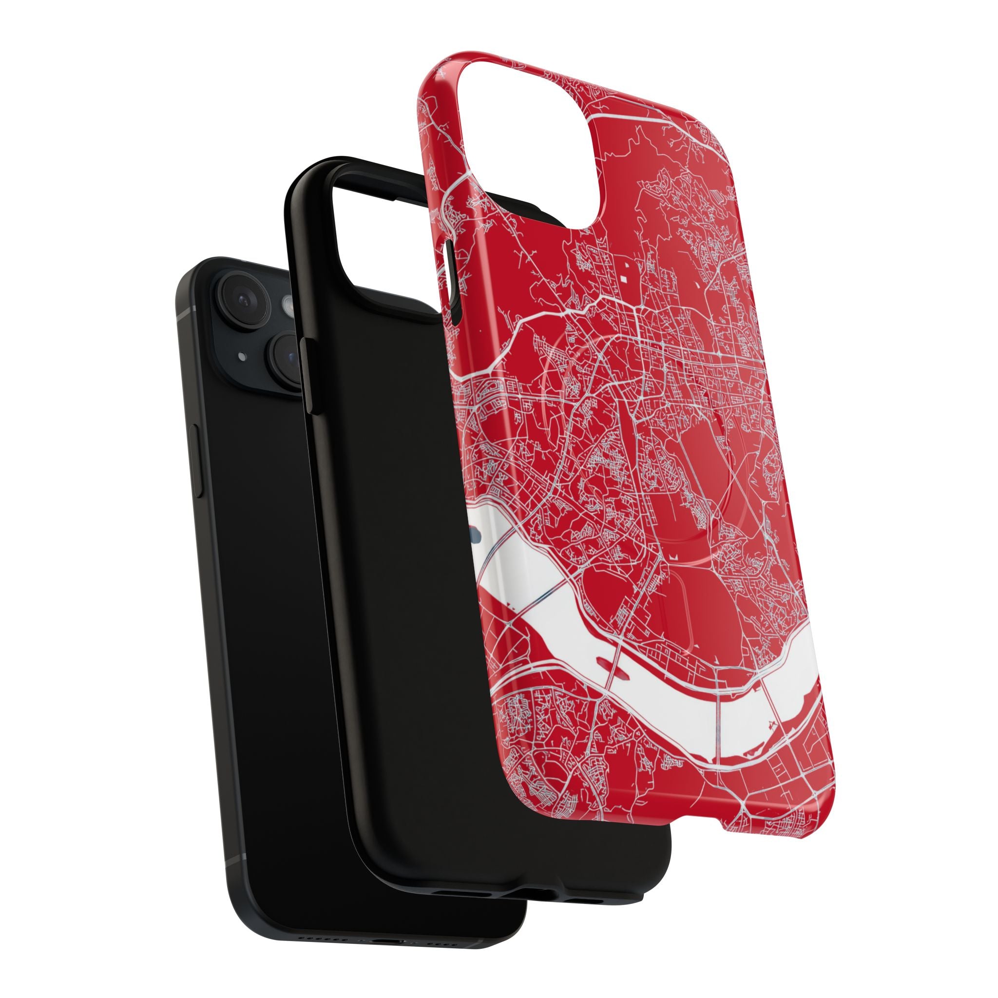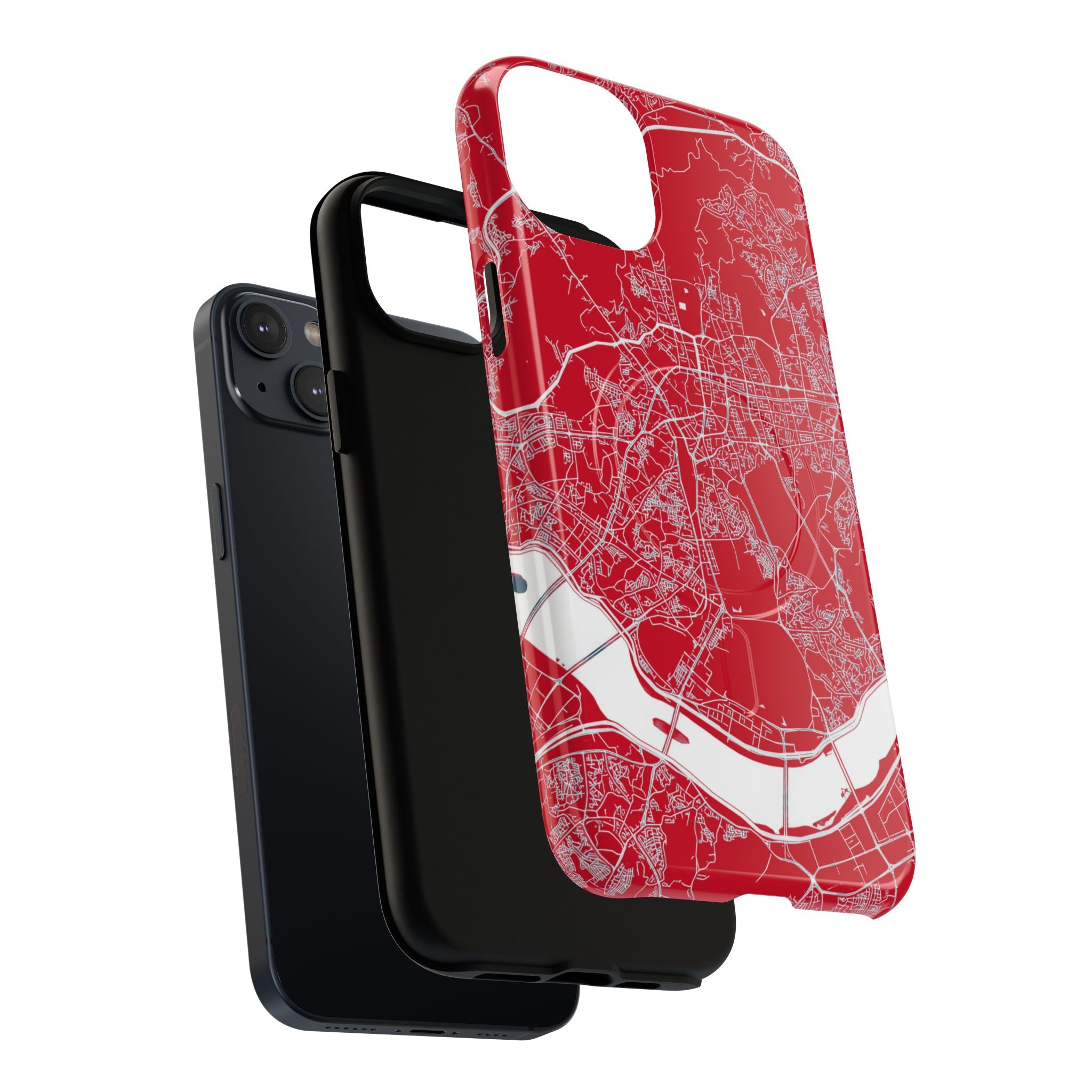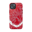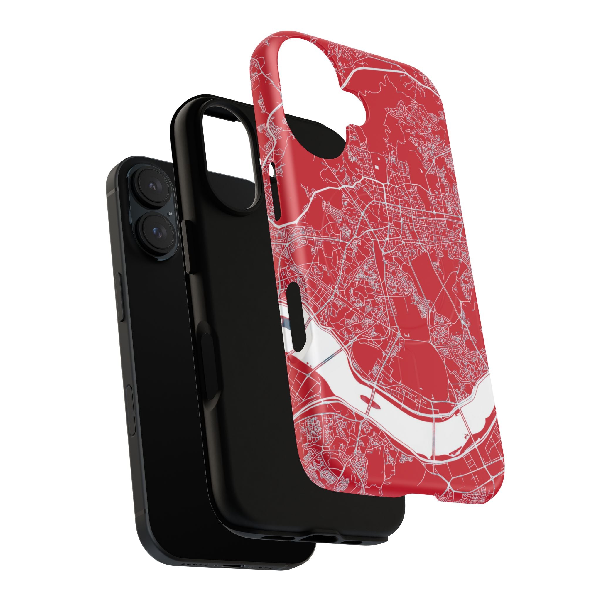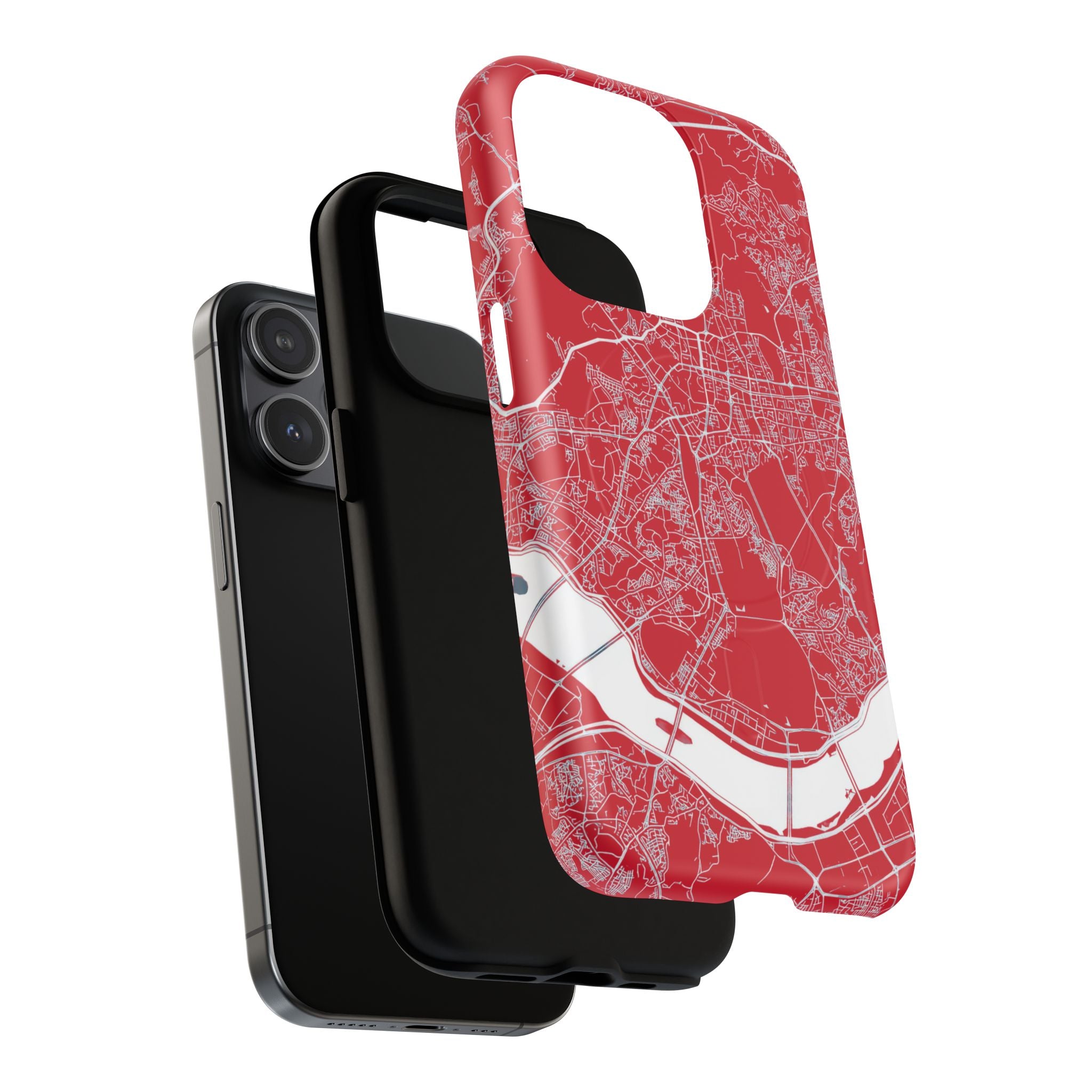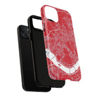 The Seoul Street Map Phone Case – River Edition (Red) transforms the city’s layered street network into a bold, high-impact graphic statement. Set against a vivid red backdrop, crisp white linework traces Seoul’s intricate roads, bridges, and the sweeping course of the Han River, placing the river at the heart of the design.