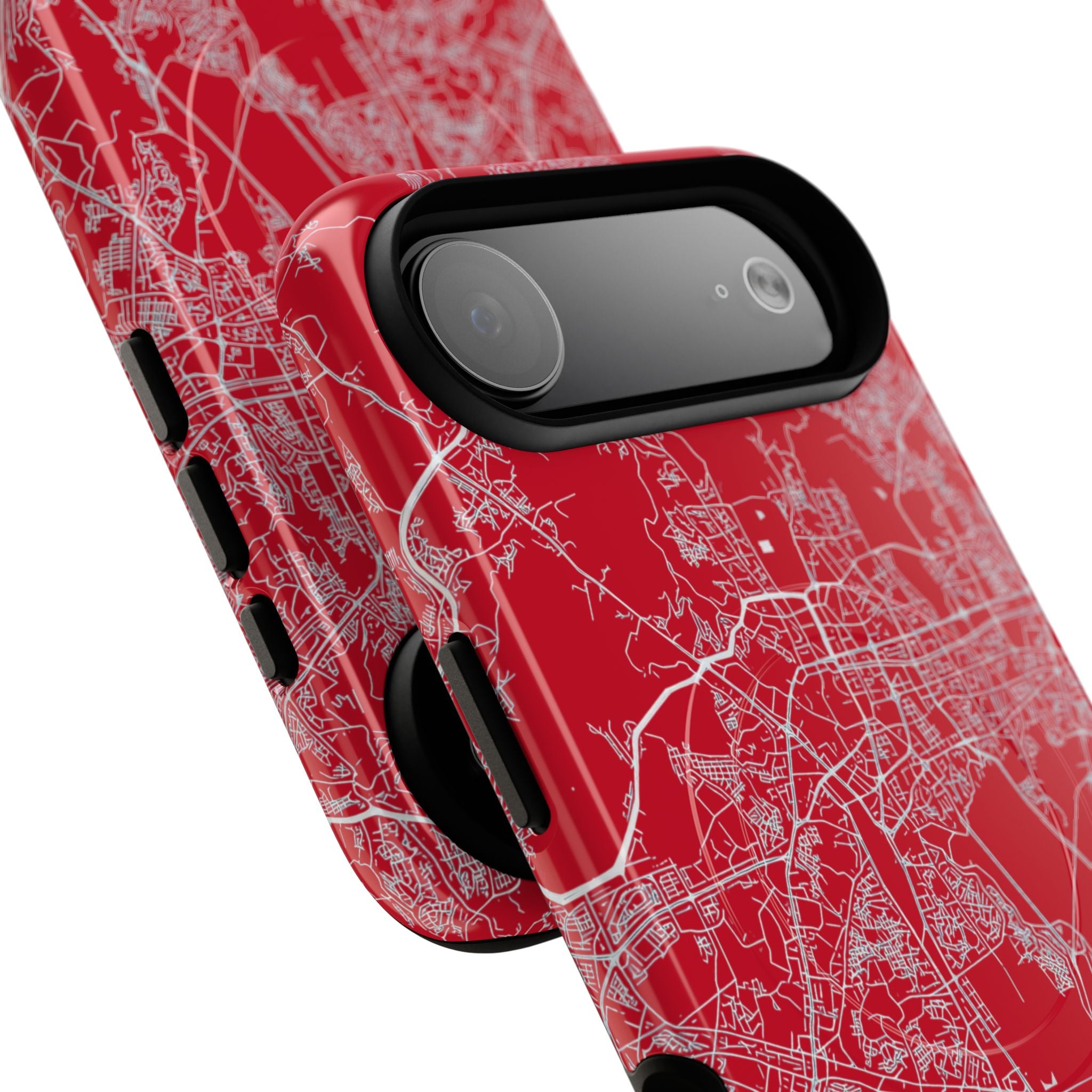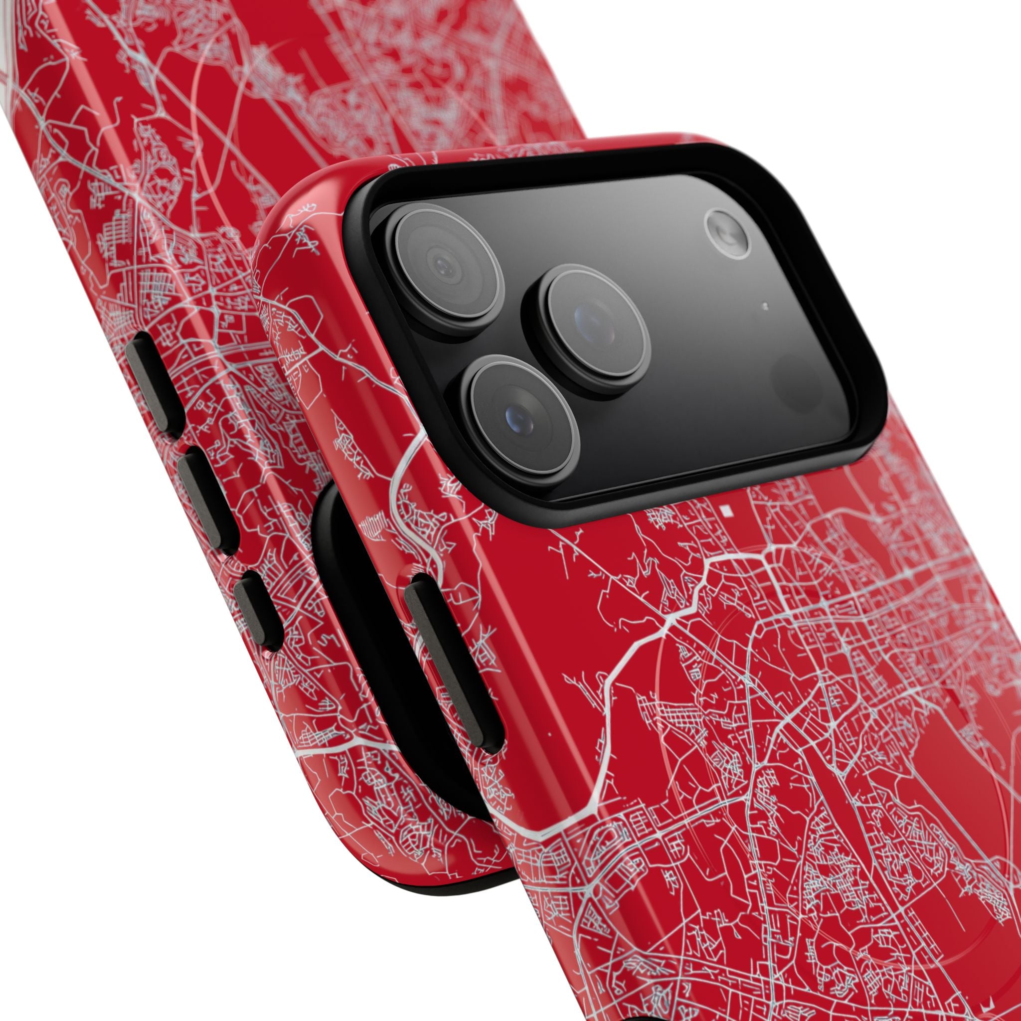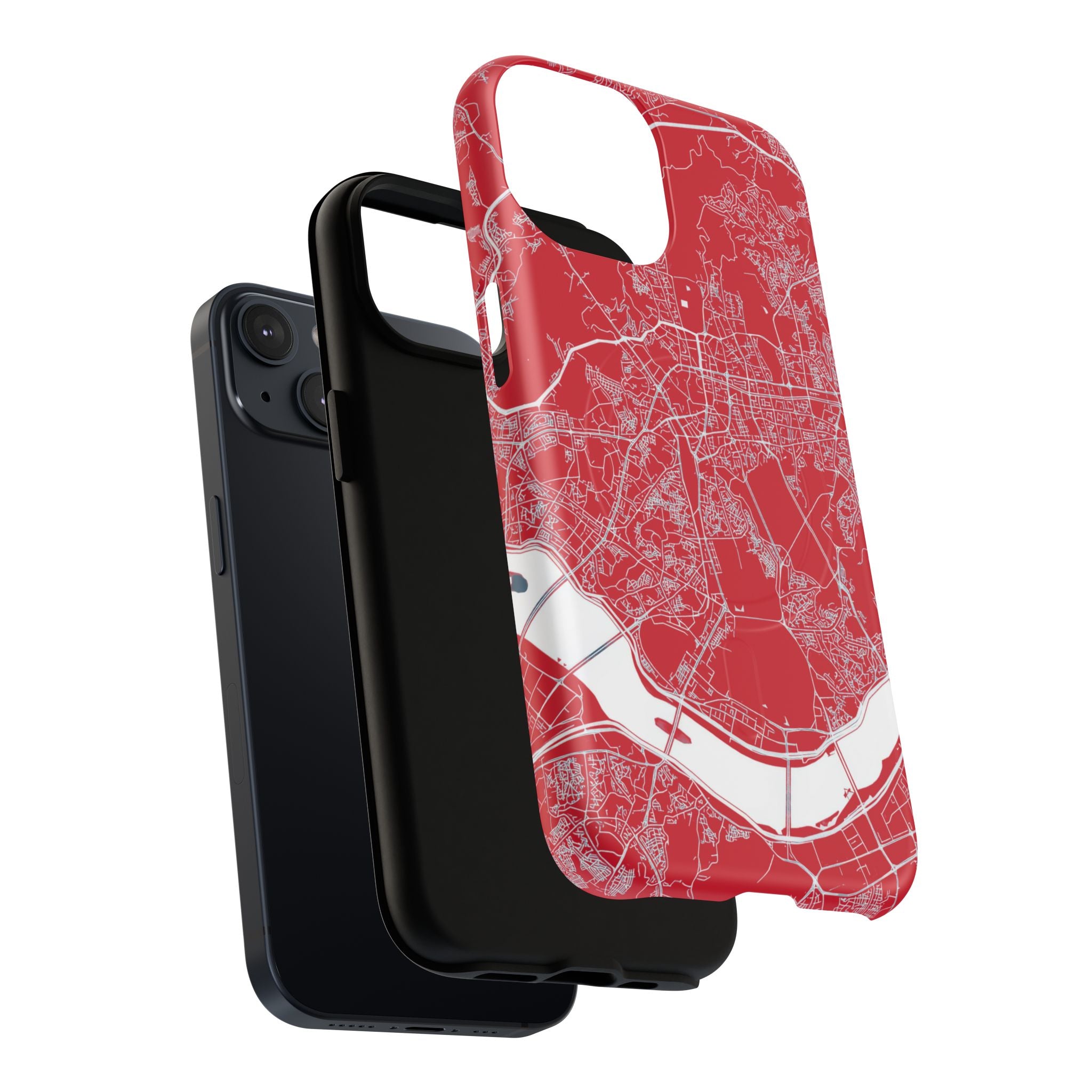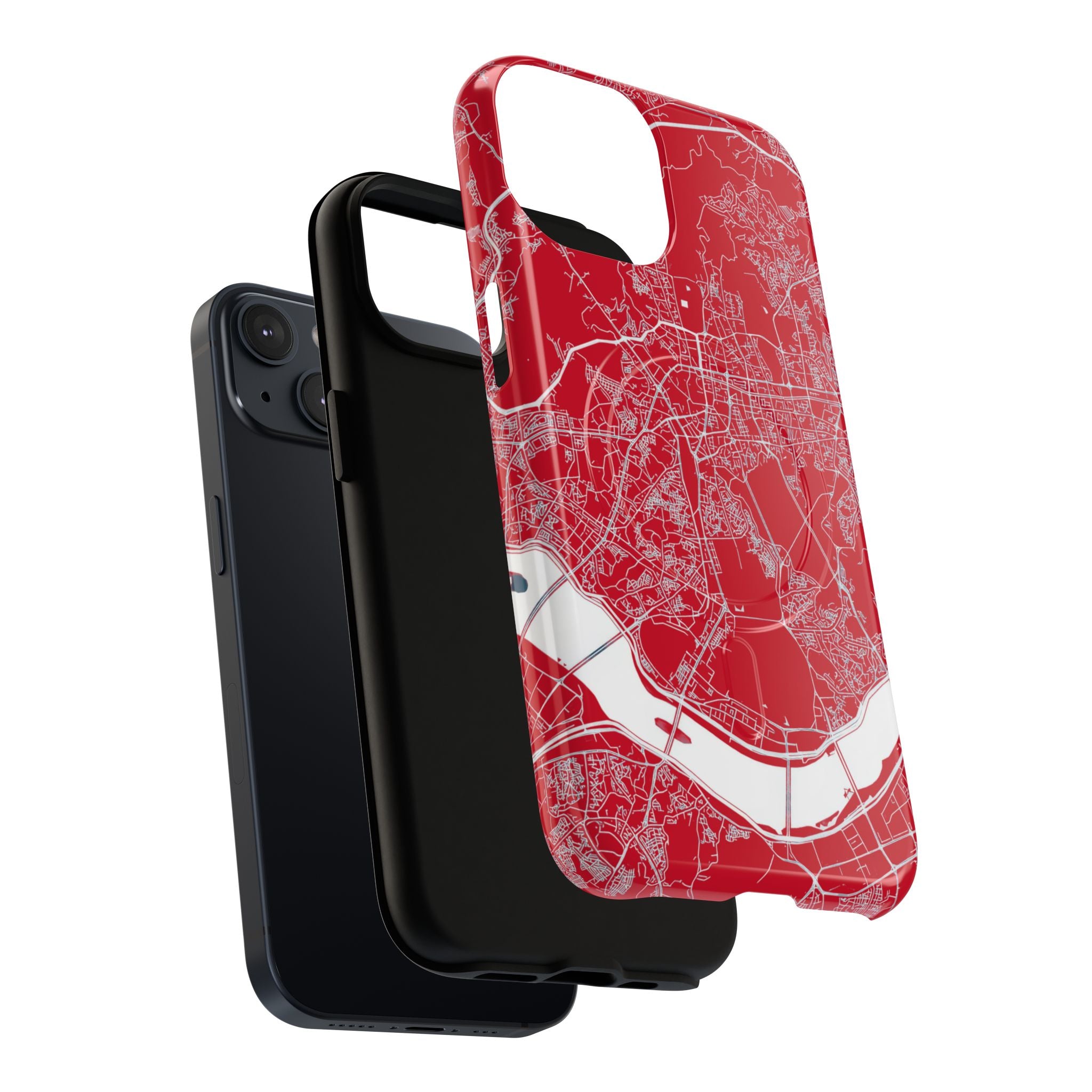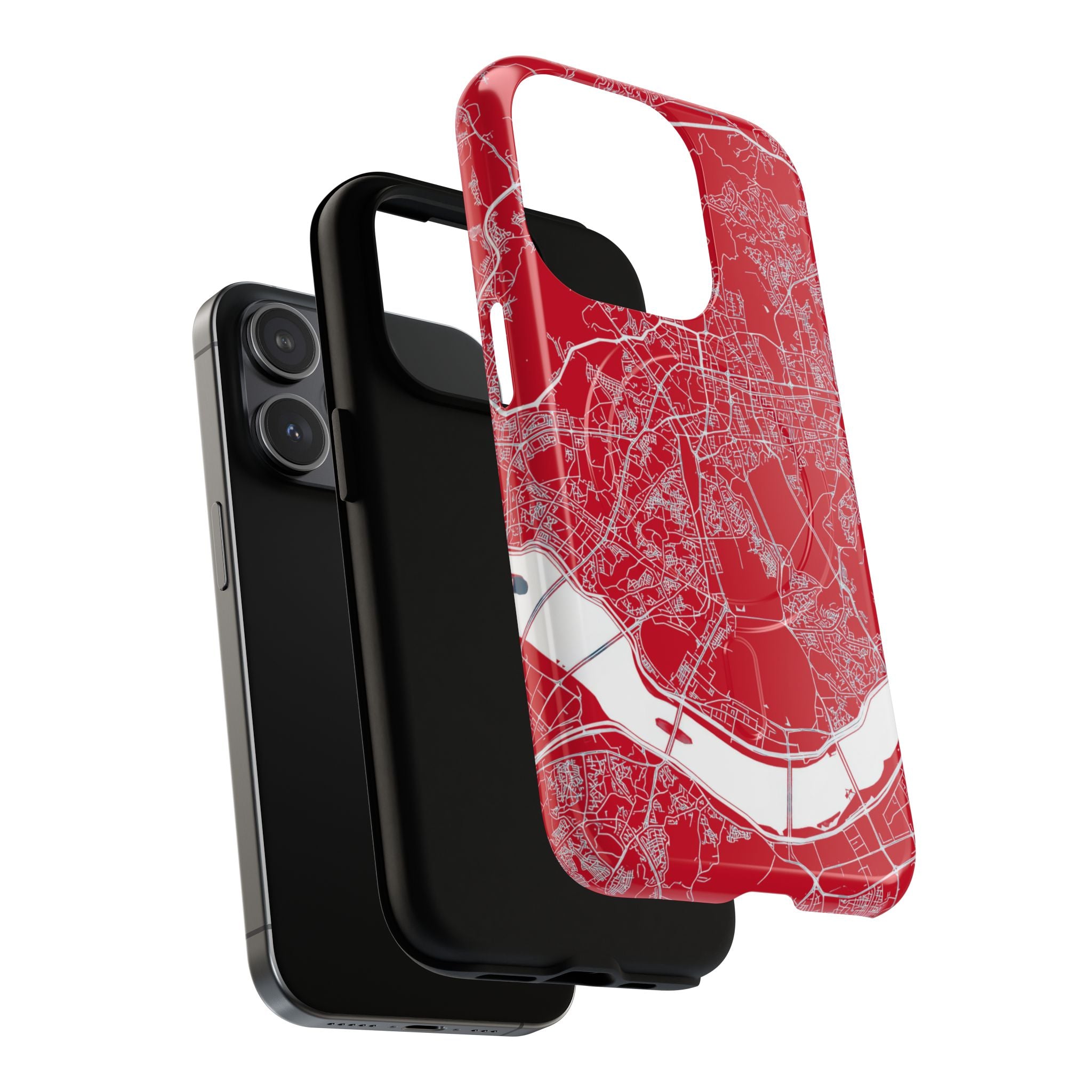 The Seoul Street Map Phone Case – River Edition (Red) transforms the city’s layered street network into a bold, high-impact graphic statement. Set against a vivid red backdrop, crisp white linework traces Seoul’s intricate roads, bridges, and the sweeping course of the Han River, placing the river at the heart of the design.