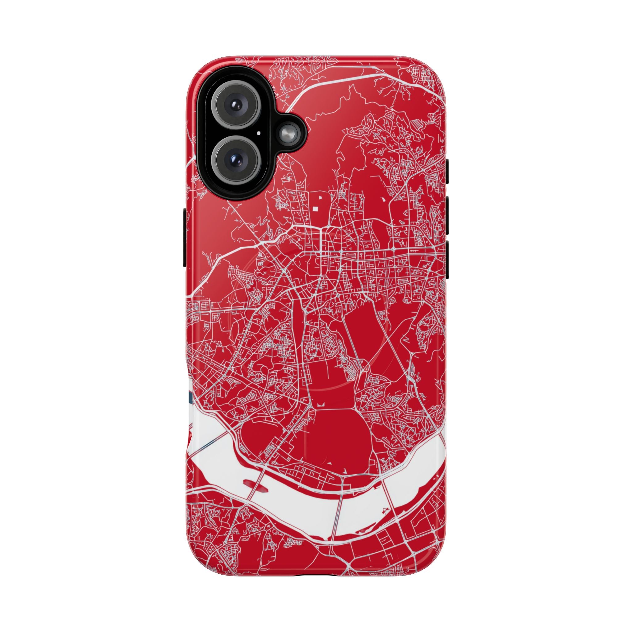 An embedded magnetic ring supports MagSafe® compatibility, allowing effortless attachment of chargers and magnetic accessories. Available in matte or glossy premium finishes, the Seoul Street Map Phone Case – River Edition (Red) blends reliable durability with a bold, city-driven aesthetic designed for everyday carry.