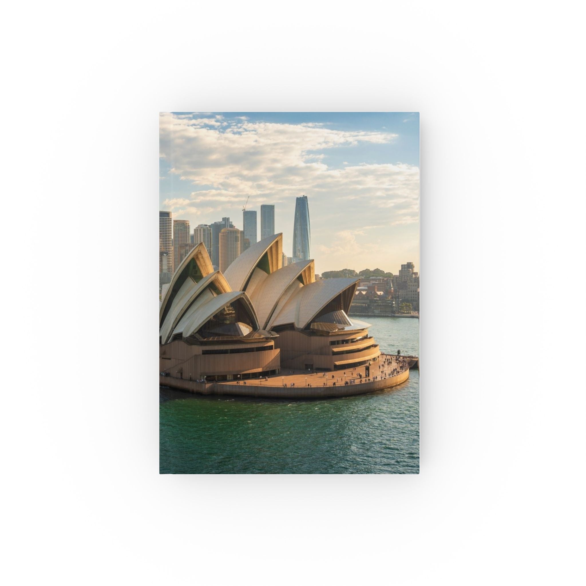 A compact hard-backed journal wrapped in a vivid, full-bleed photo of Sydney’s harbor skyline. Each page spread lies flat thanks to casewrap binding, so you can sketch the Opera House’s sails or plan your next trip without the spine fighting you. The matte-laminated cover keeps colors soft to the touch while protecting the lively print. Choose ruled, graph, or blank 90 gsm pages across 128 pages — a reliable canvas for travel notes, daily reflections, or architectural doodles. Lightweight and pocket-friendly at 5.2" x 7.4", it carries seaside light and skyline energy wherever you take it.