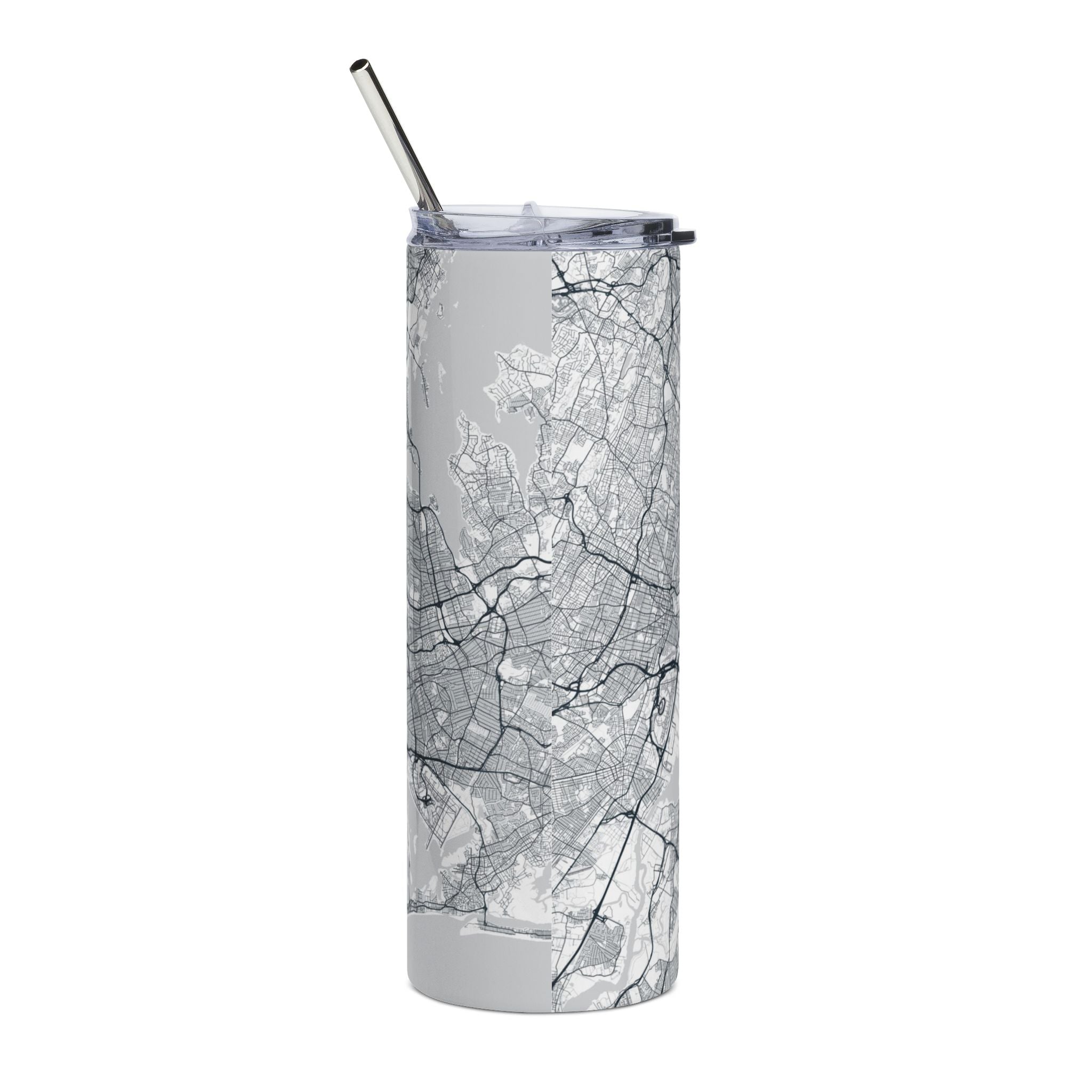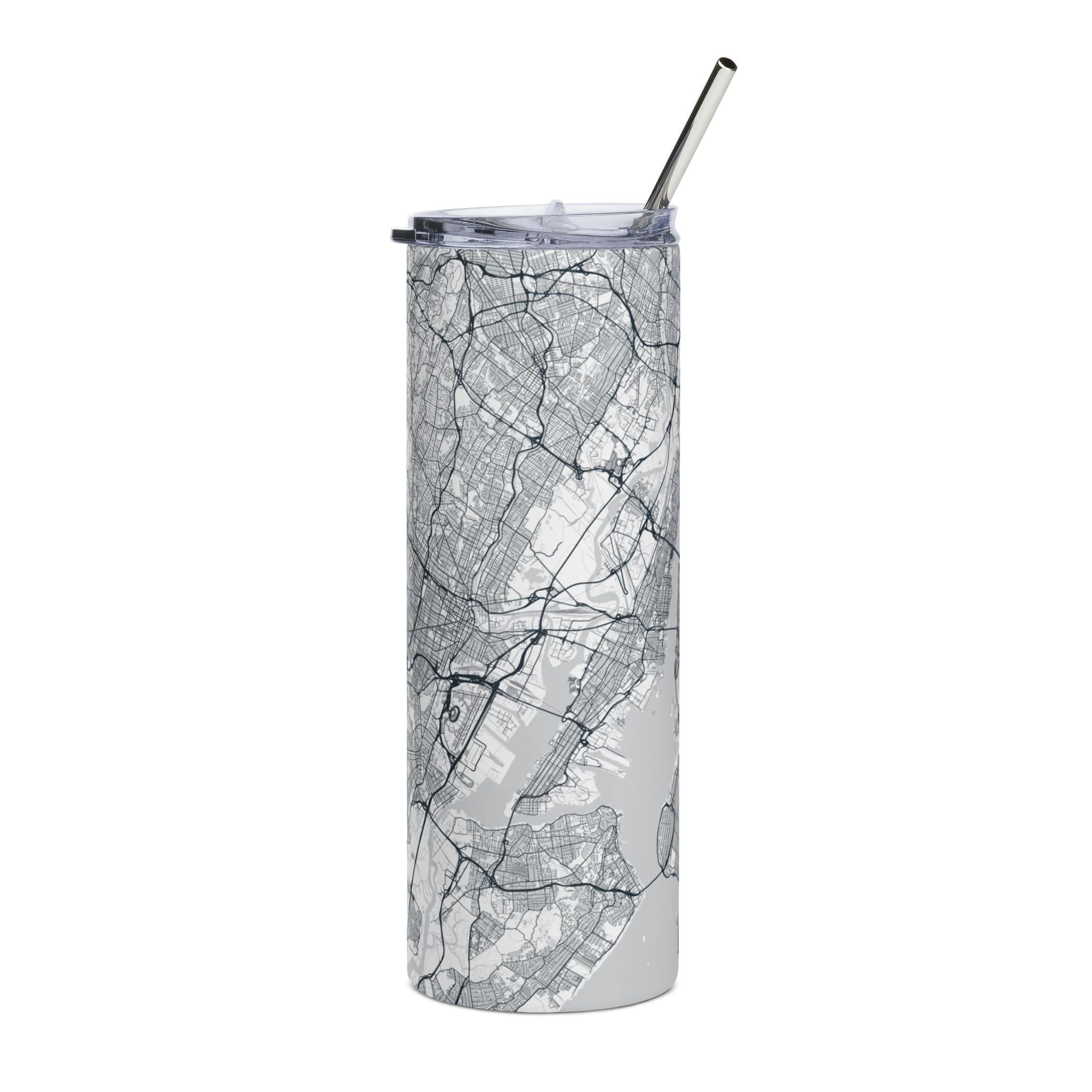 Carry New York with you—quietly. This 20 oz stainless steel tumbler is wrapped in a monochrome street map of the city, turning a daily drink into a small moment of design. The detailed grayscale print feels architectural and intentional, like a piece of the city’s rhythm in your hand. Whether it’s morning coffee on the subway, iced tea during a long afternoon walk, or water at your desk, it moves with you through the day as naturally as a well-planned route.