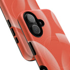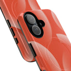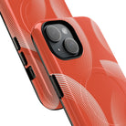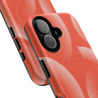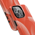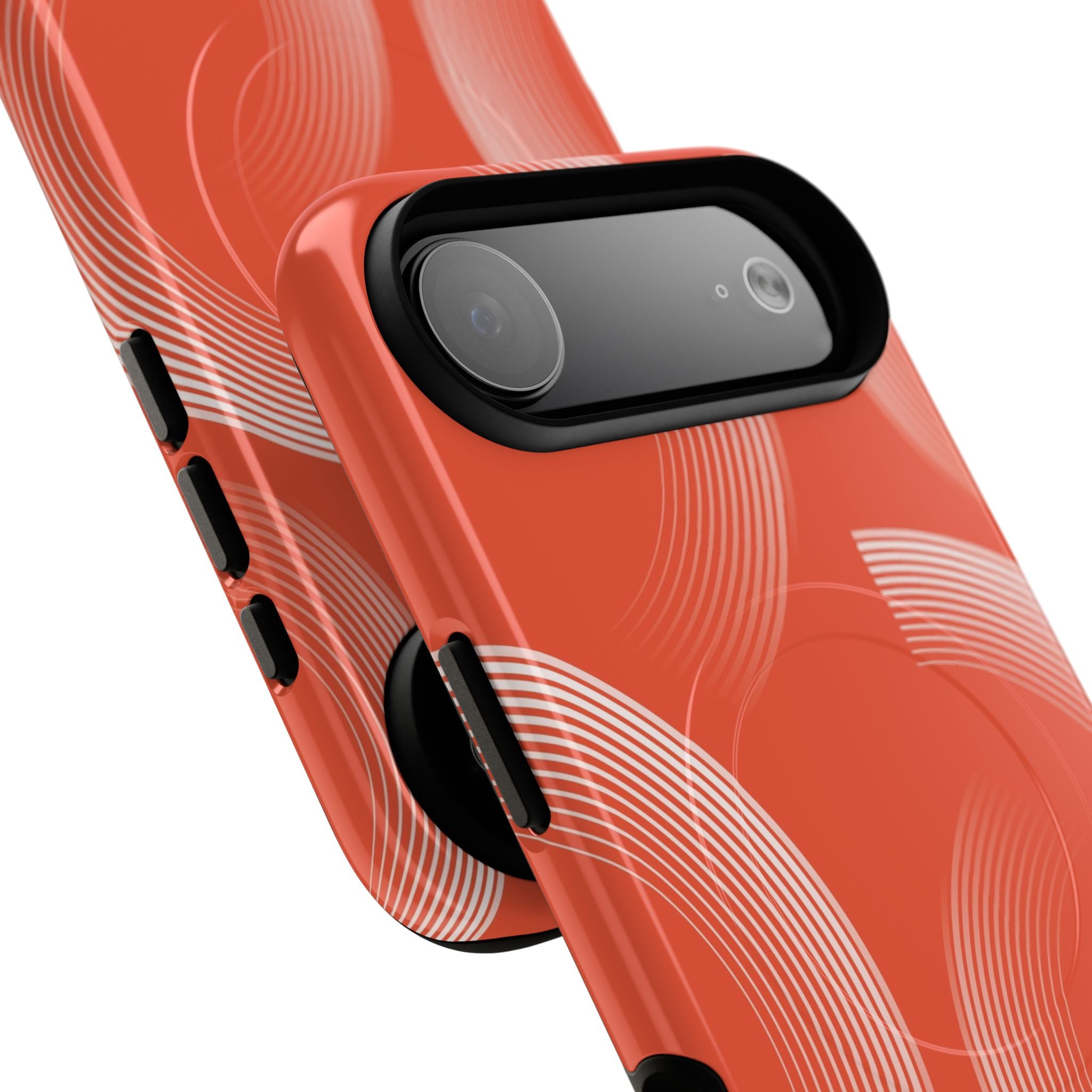 This ANTIPODE phone case from the Modern Geometry Series features sweeping white arc lines set against a rich terracotta-orange base. The curved forms create a rhythmic, contemporary pattern inspired by modernist graphics and mid-century linework. It’s bold yet minimal, giving your device a refined, design-centered character.