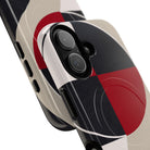 This ANTIPODE phone case from the Modernist Geometry Series uses sweeping arcs, intersecting curves and sharp rectangular forms in a palette of black, cream, deep red and soft grey. The composition feels architectural and graphic, drawing inspiration from contemporary poster design and early modernist abstraction. It’s visually striking yet balanced, giving your device a refined, gallery-ready look.