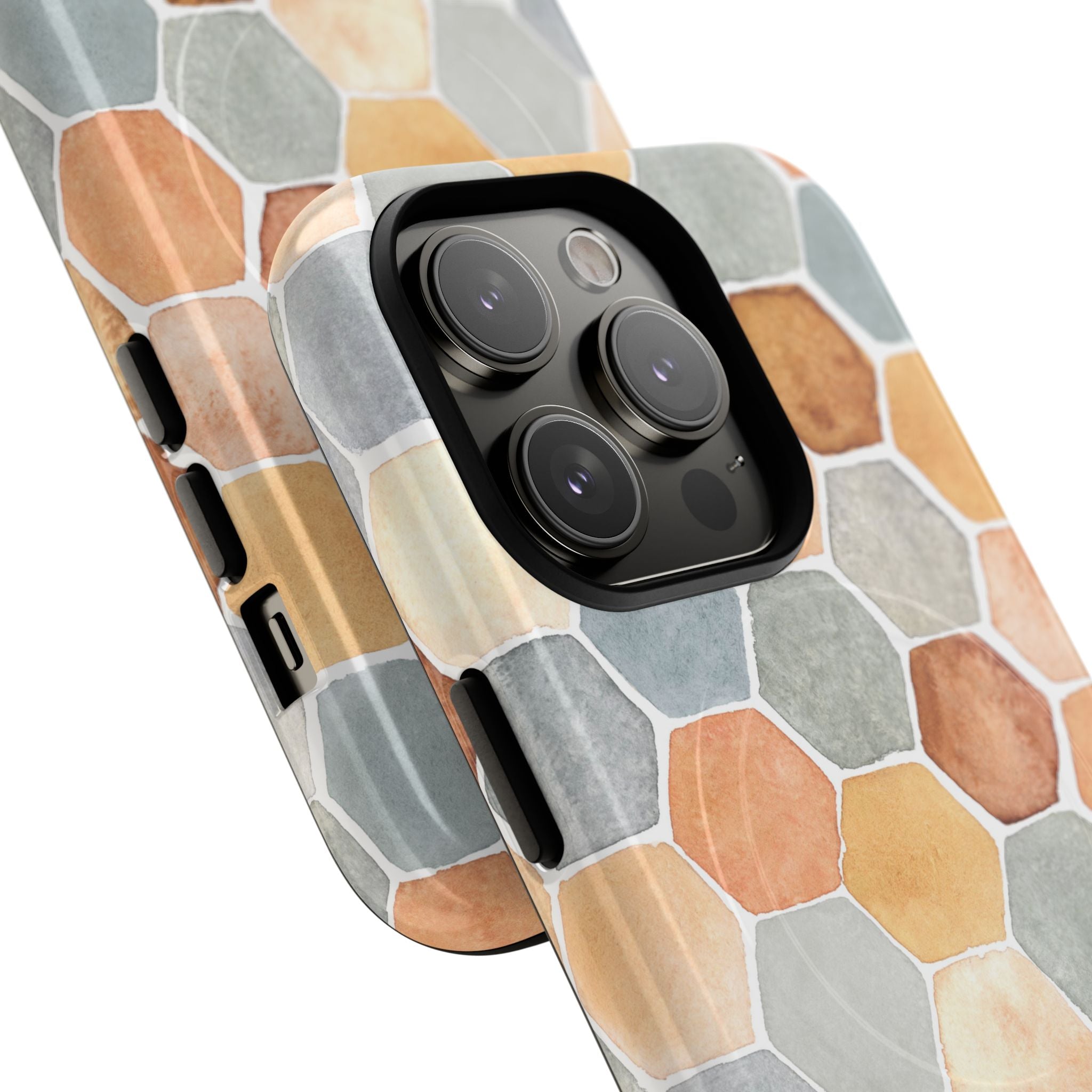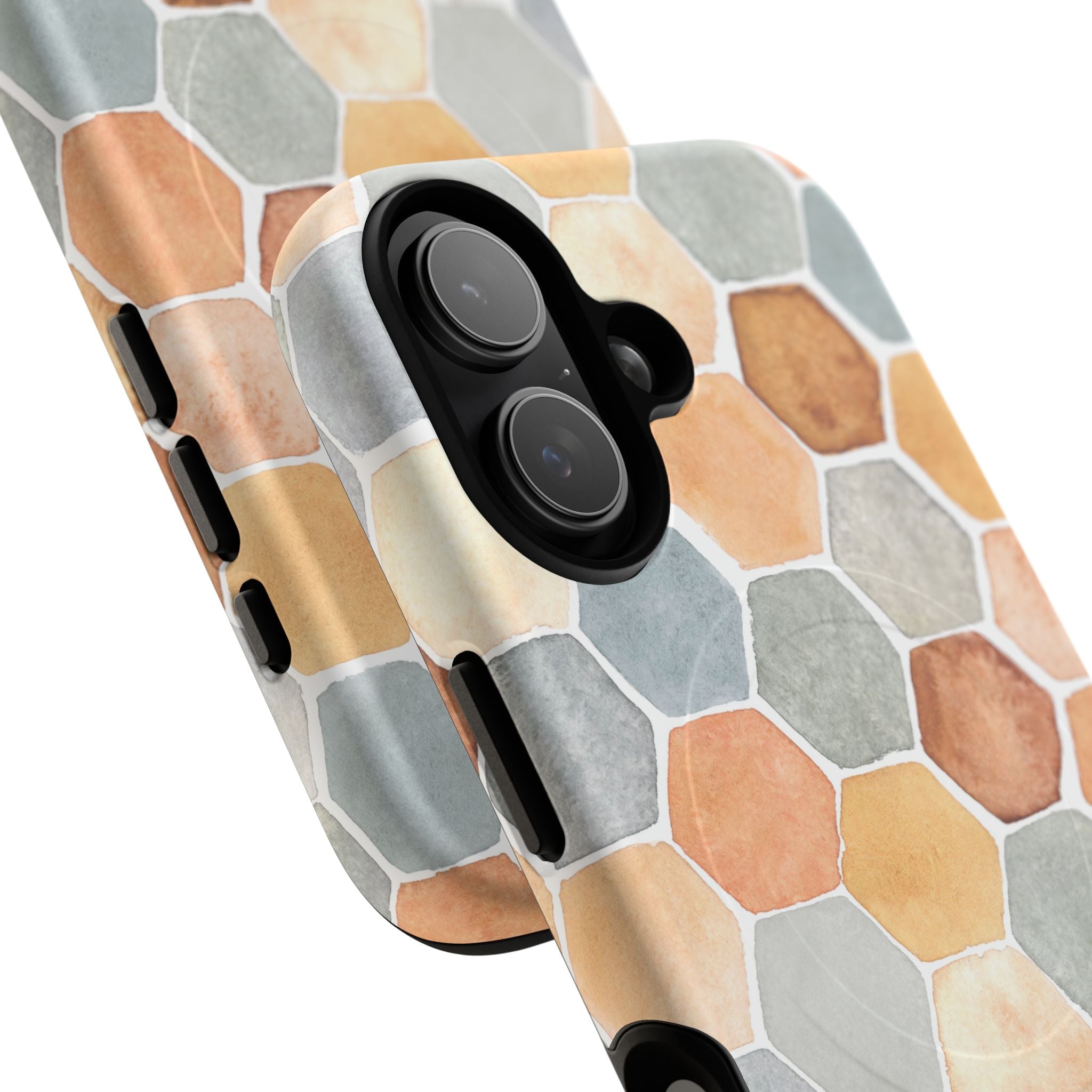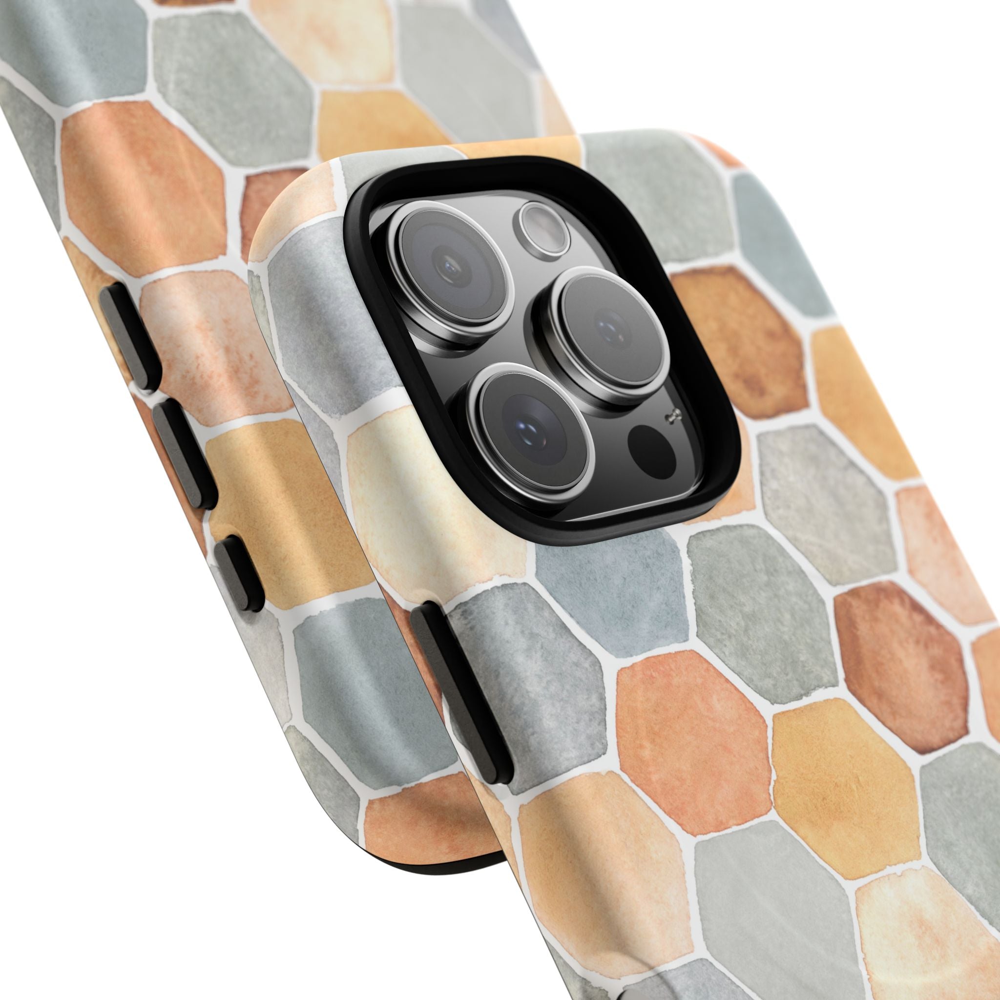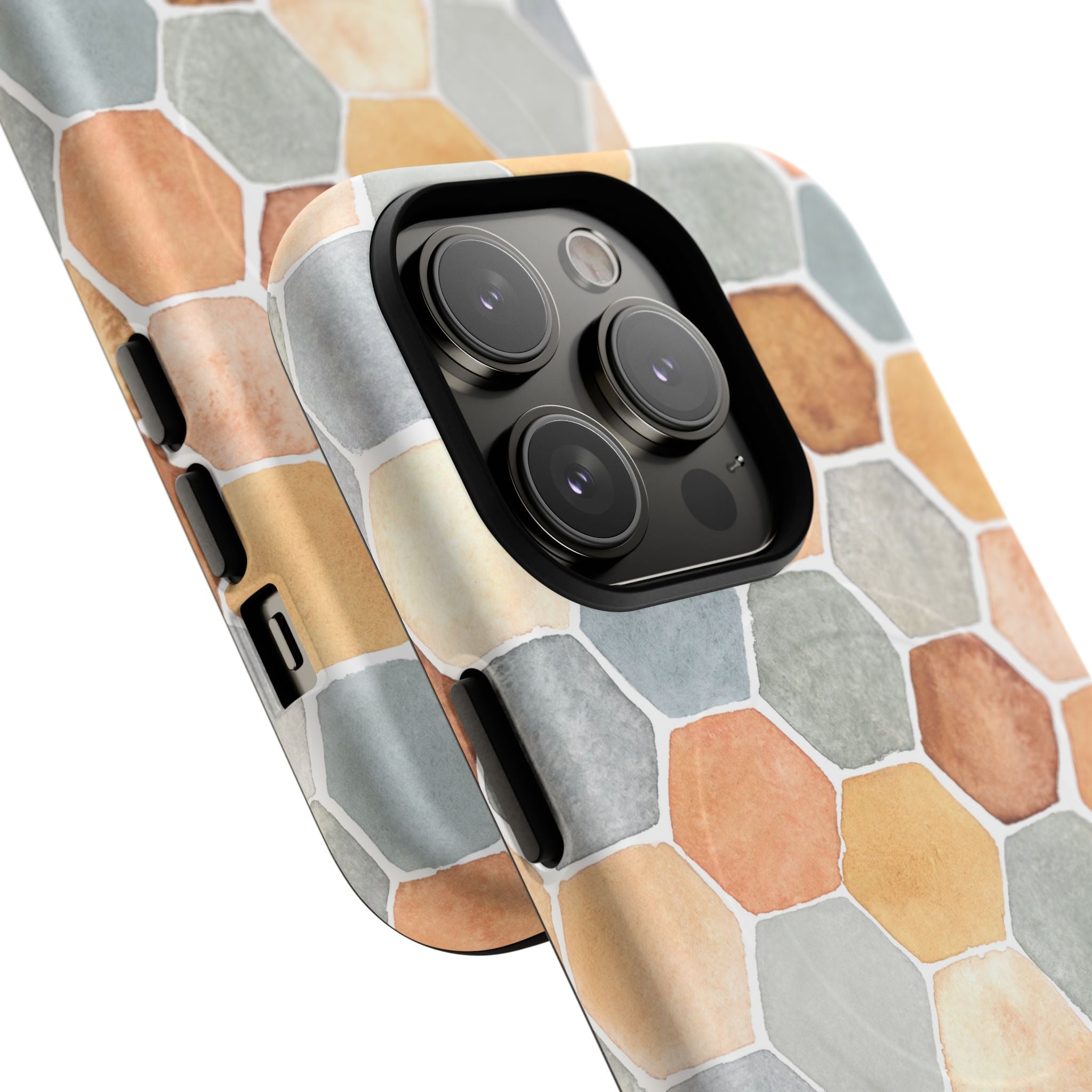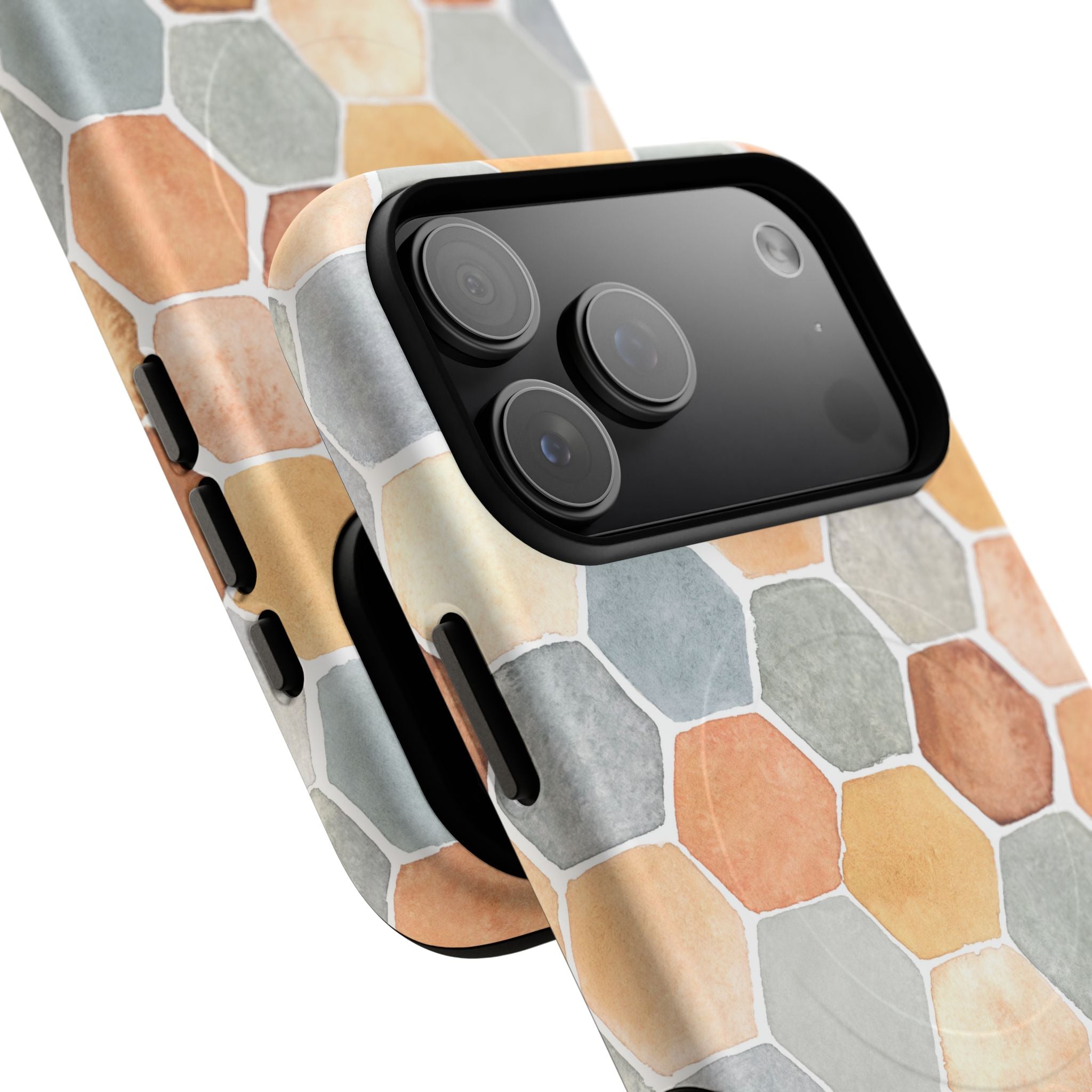 ANTIPODE Abstract Phone Case — Mosaic Wash Series No. 01 “Terracotta Honeycomb” — MagSafe iPhone Case for iPhone 17/16/15/14 Series