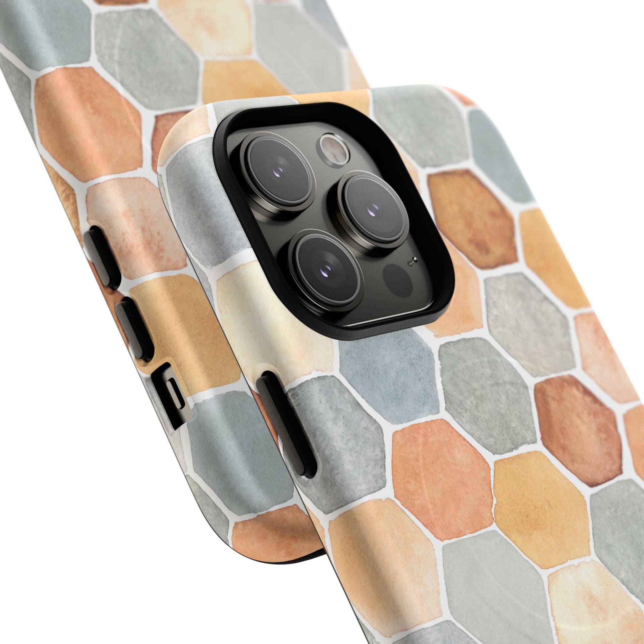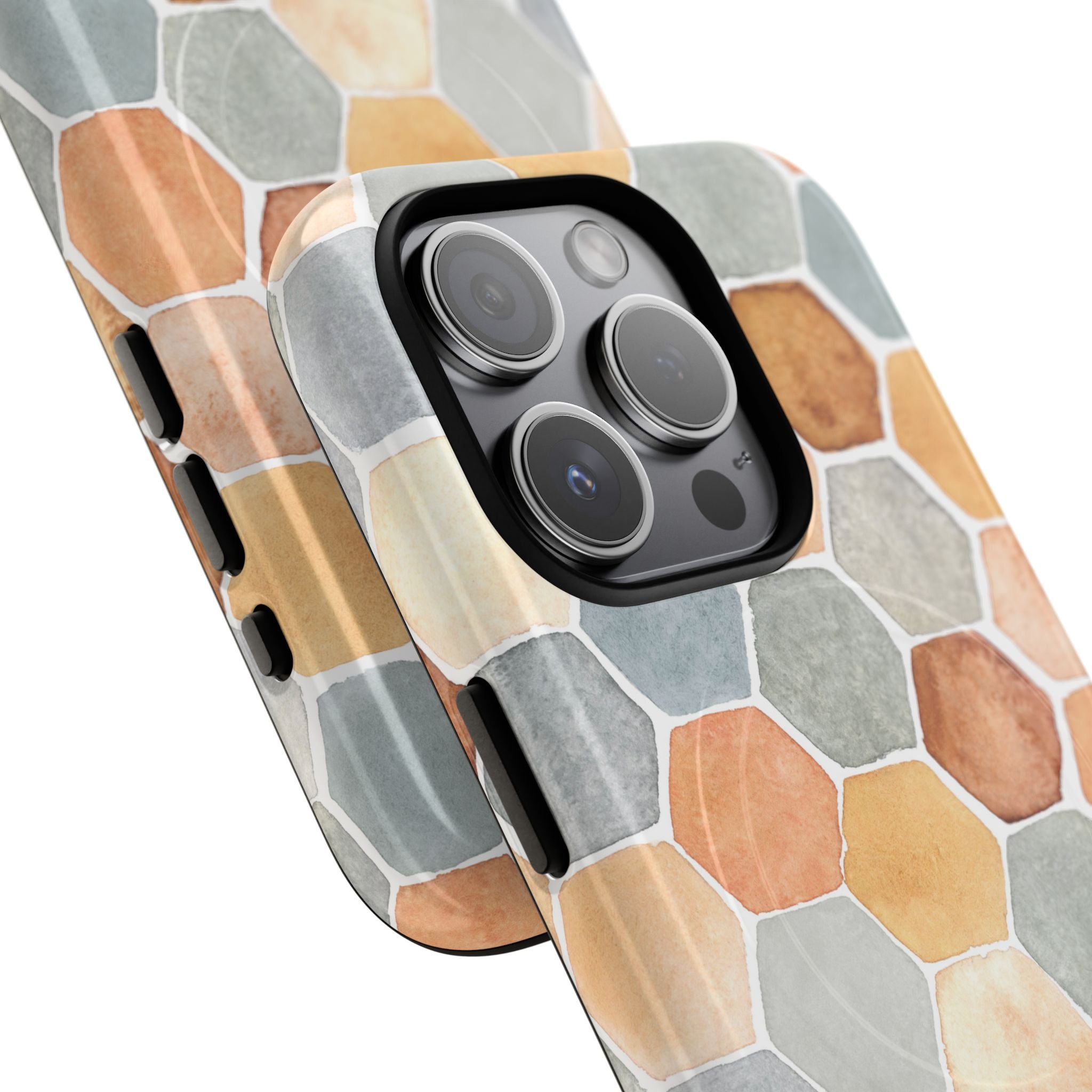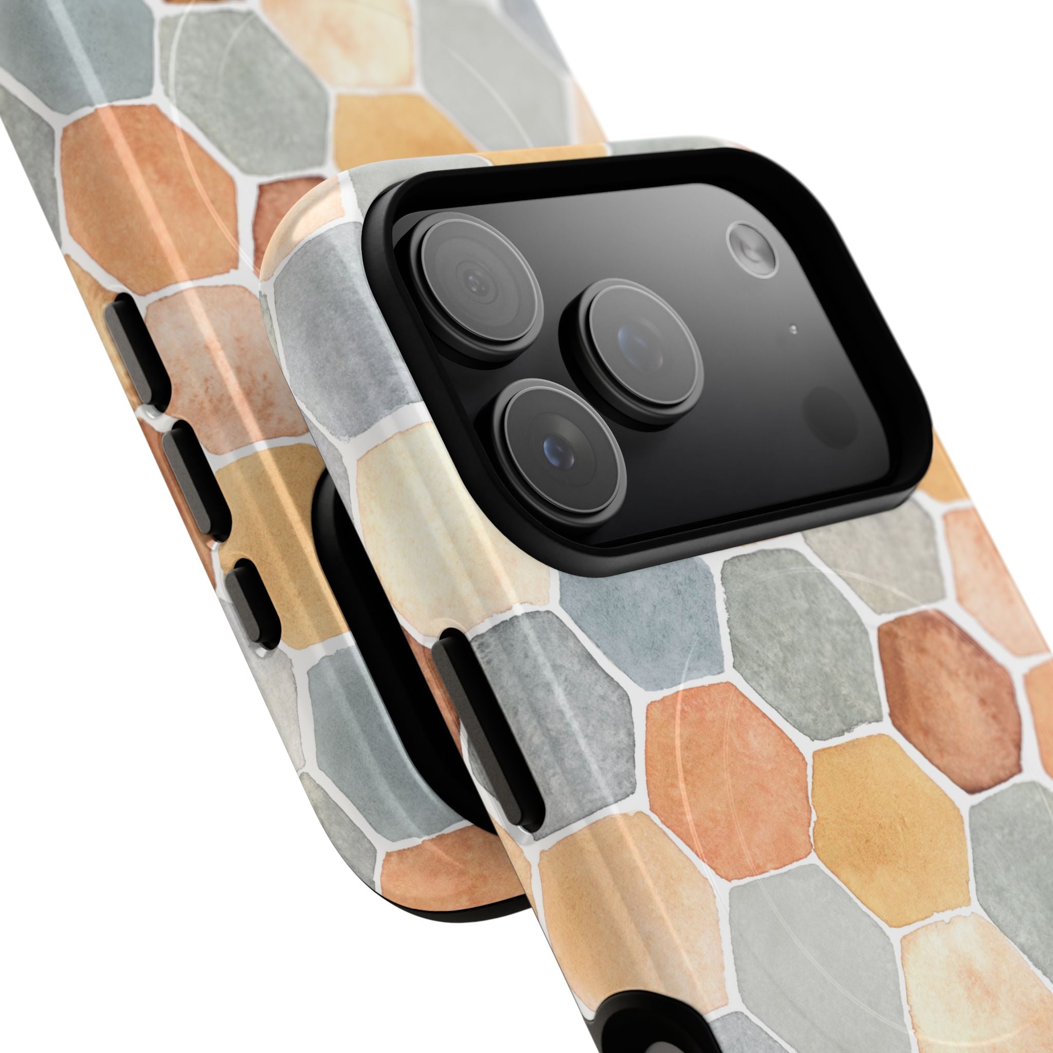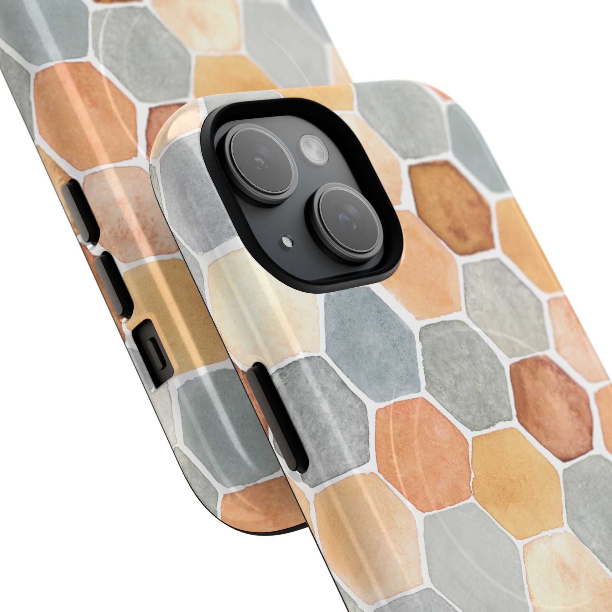 ANTIPODE Abstract Phone Case — Mosaic Wash Series No. 01 “Terracotta Honeycomb” — MagSafe iPhone Case for iPhone 17/16/15/14 Series