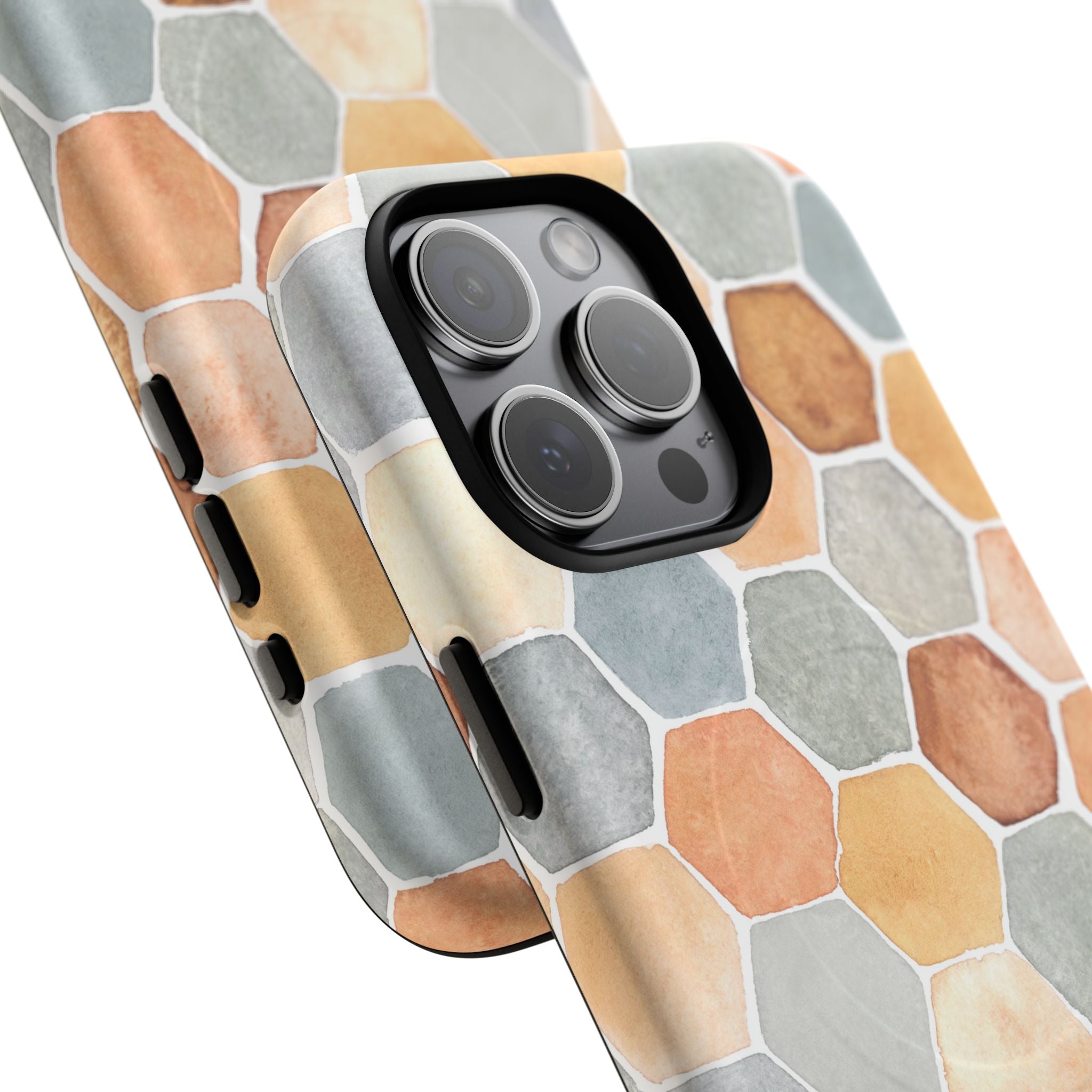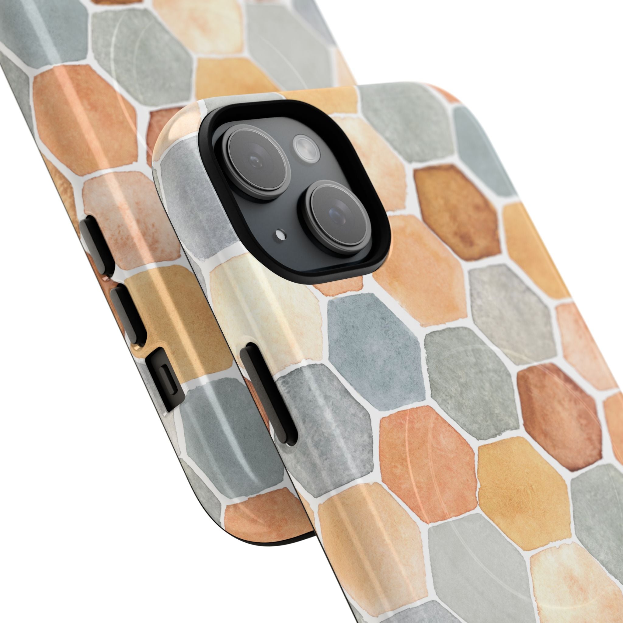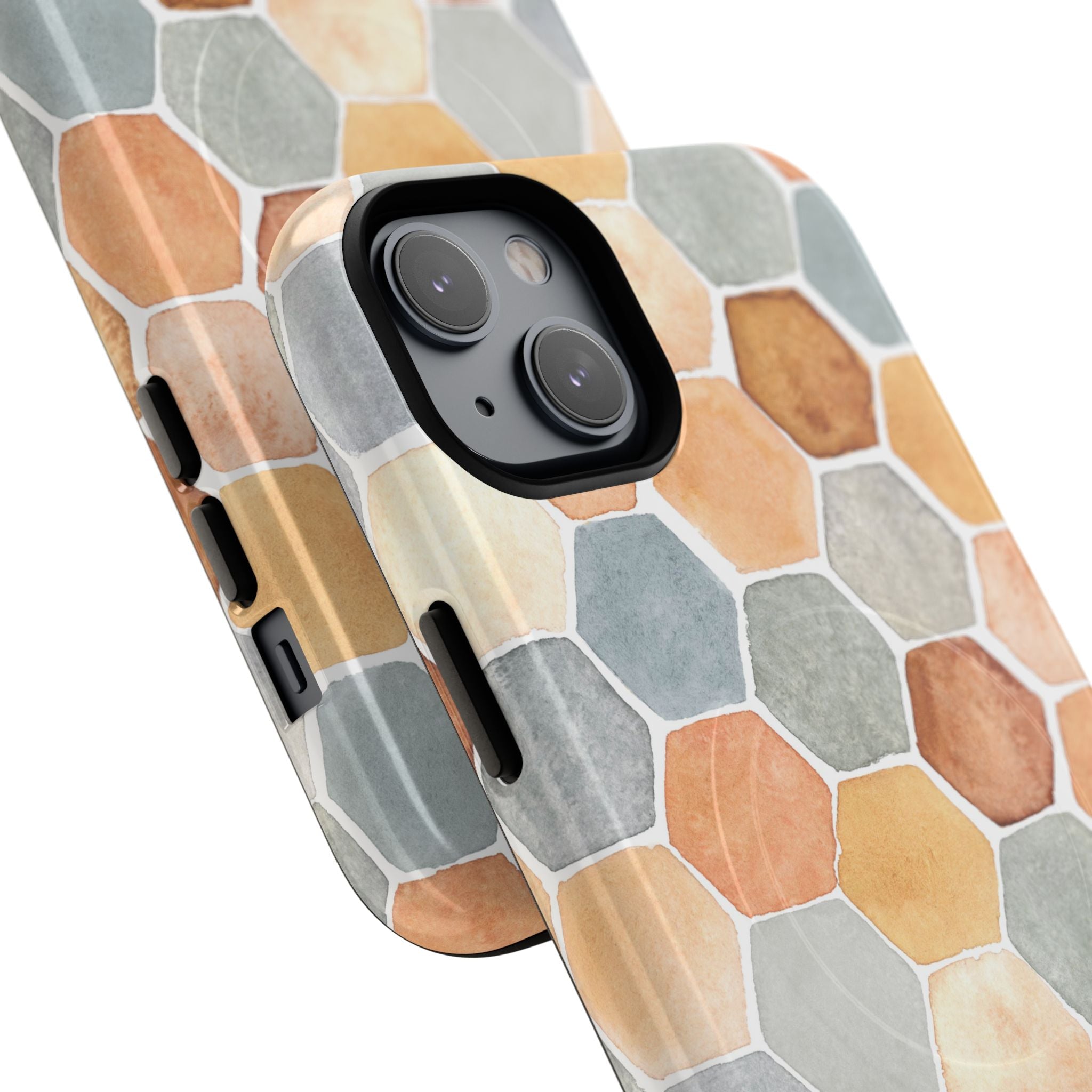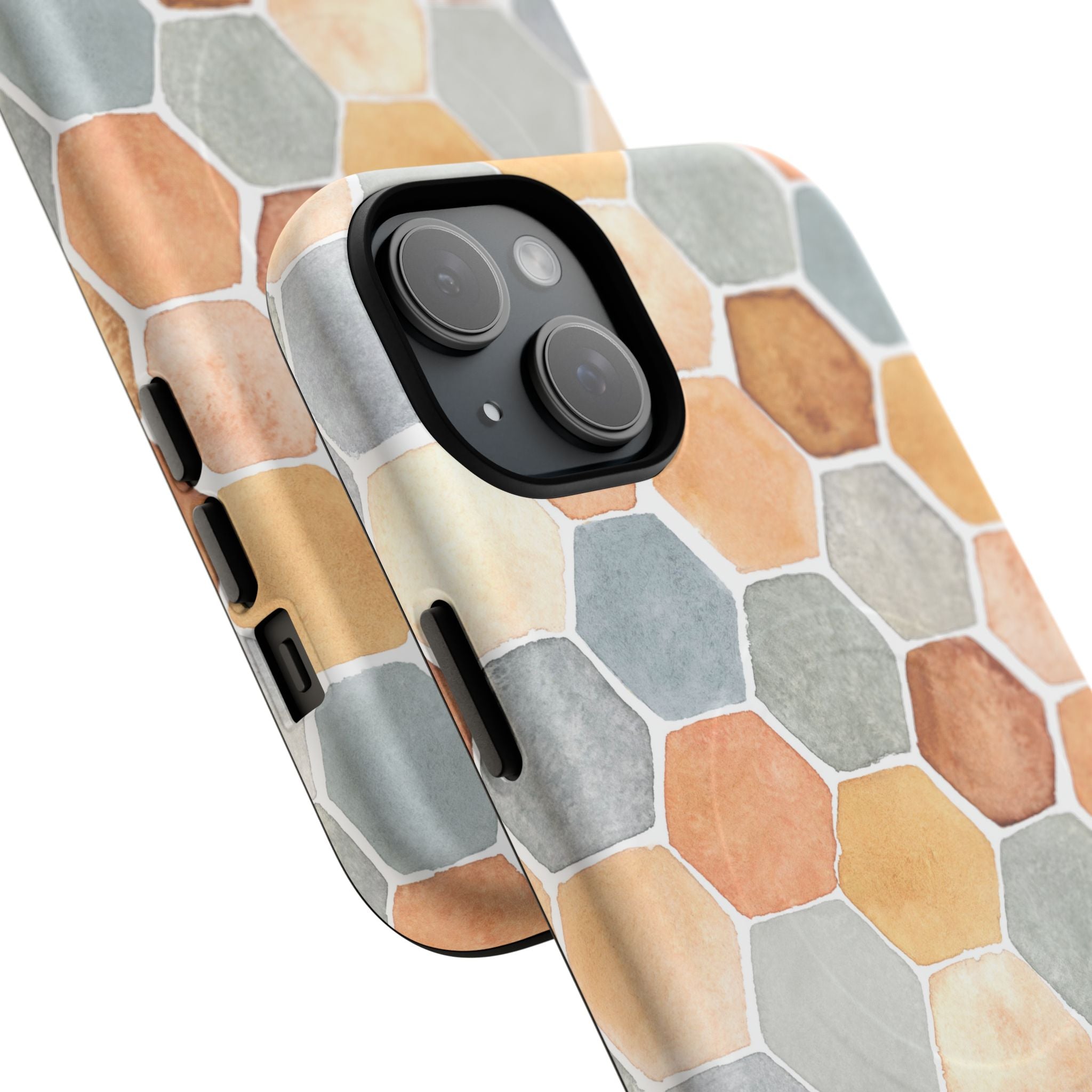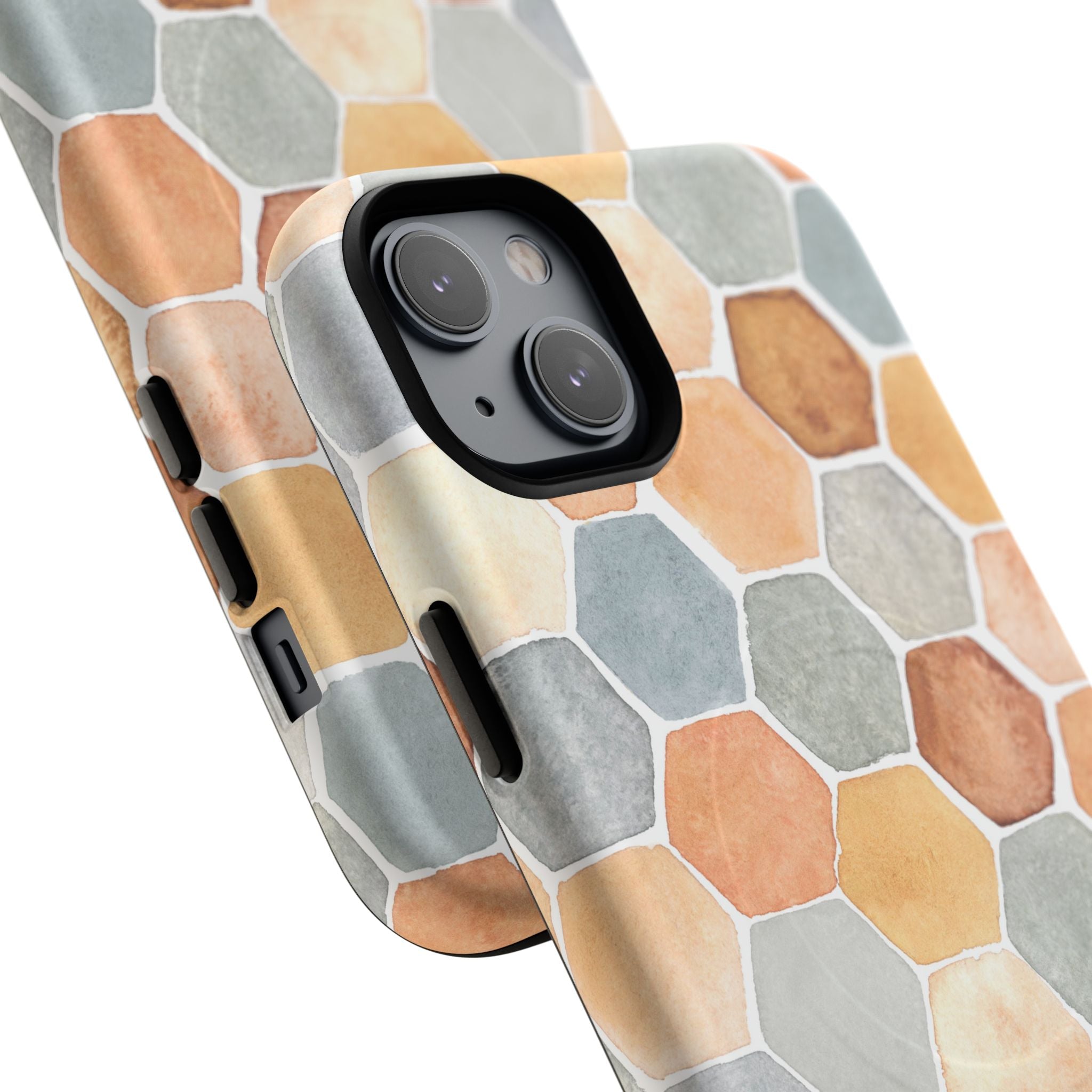 ANTIPODE Abstract Phone Case — Mosaic Wash Series No. 01 “Terracotta Honeycomb” — MagSafe iPhone Case for iPhone 17/16/15/14 Series