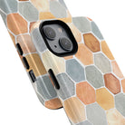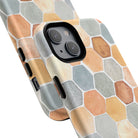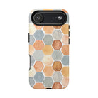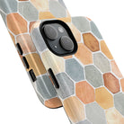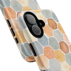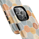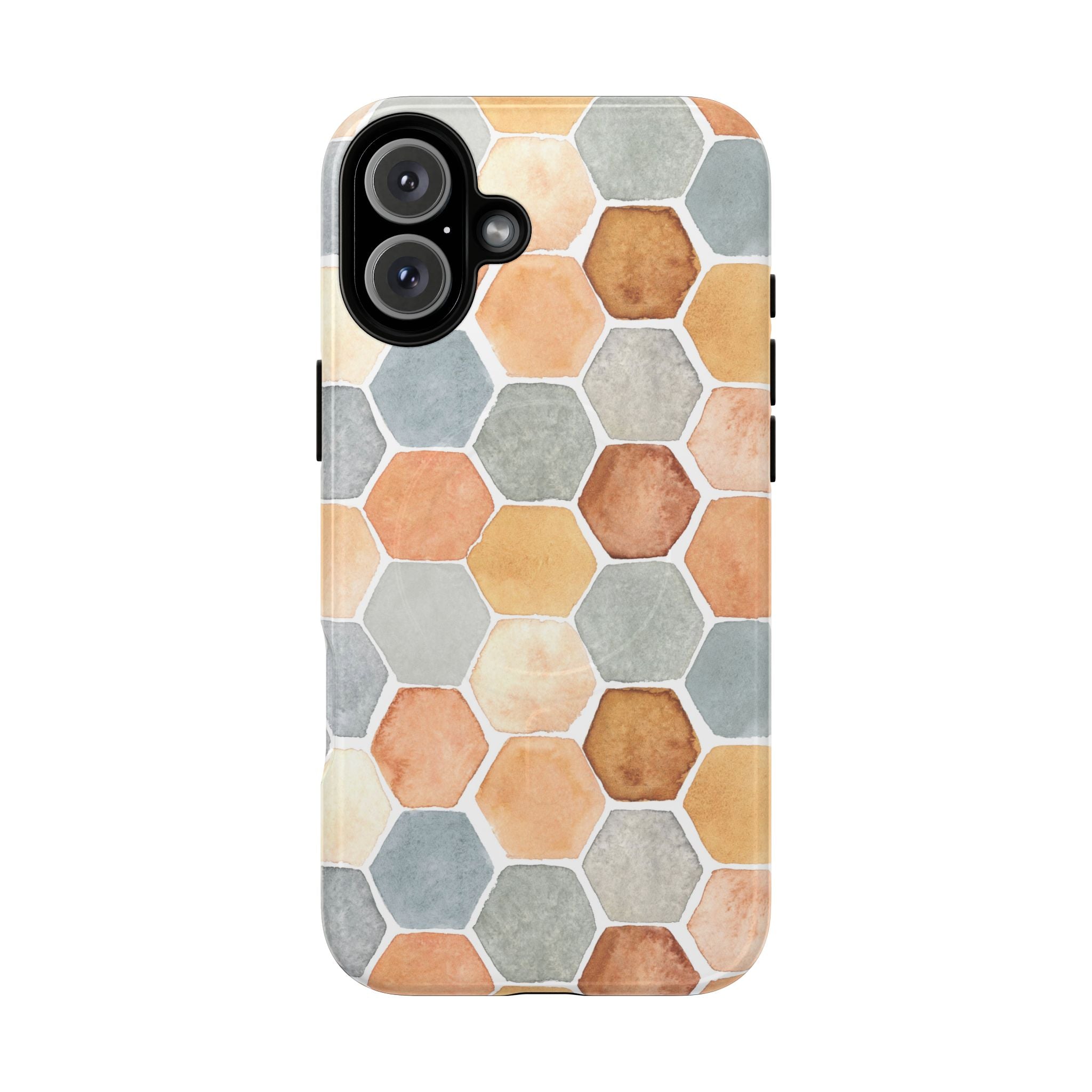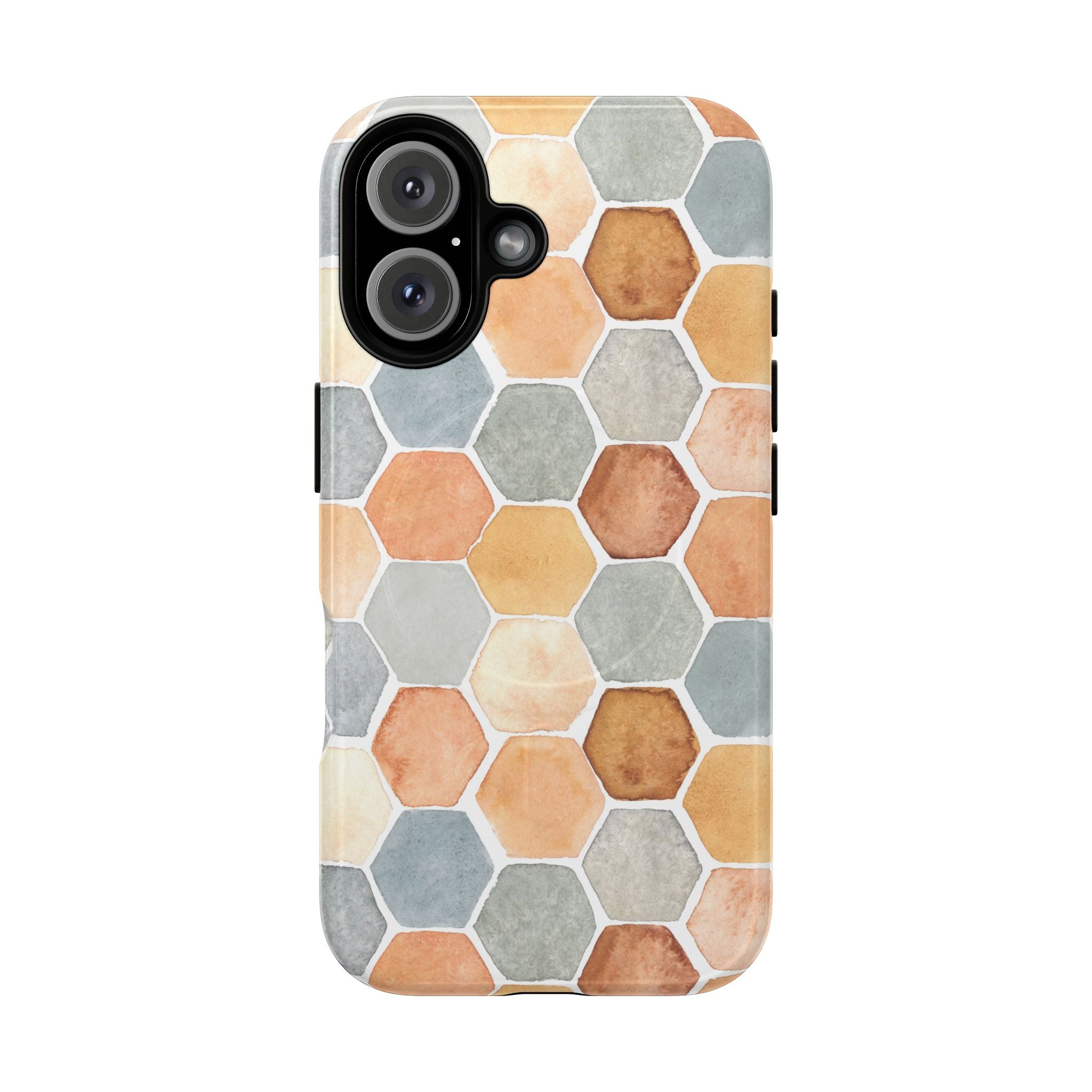 The dual-layer case construction provides dependable protection: a rigid polycarbonate shell resists impact, while the TPU liner cushions the phone against drops and daily wear. The wraparound print preserves the watercolor texture and soft irregularities of each hexagon. Integrated MagSafe compatibility supports wireless charging and accessory use while keeping the design slim and comfortable in hand.