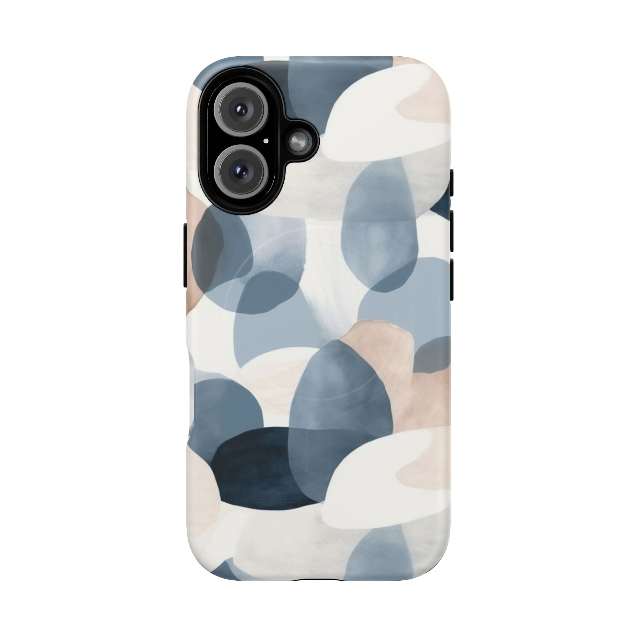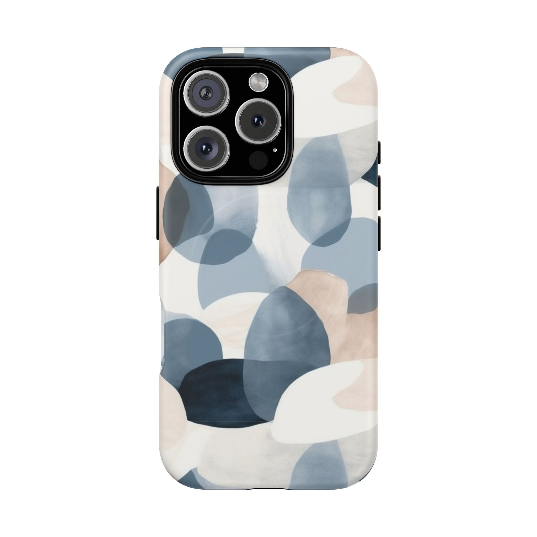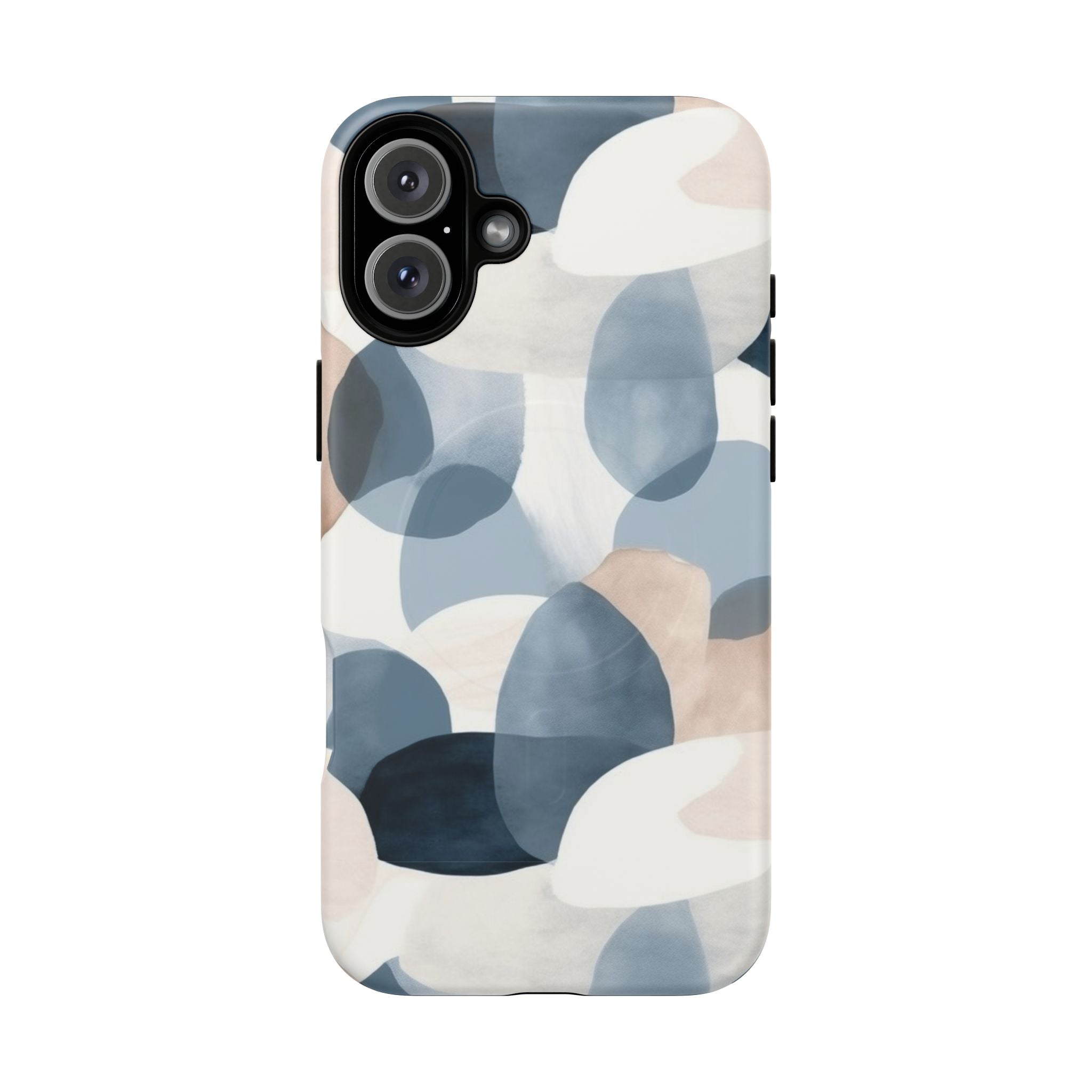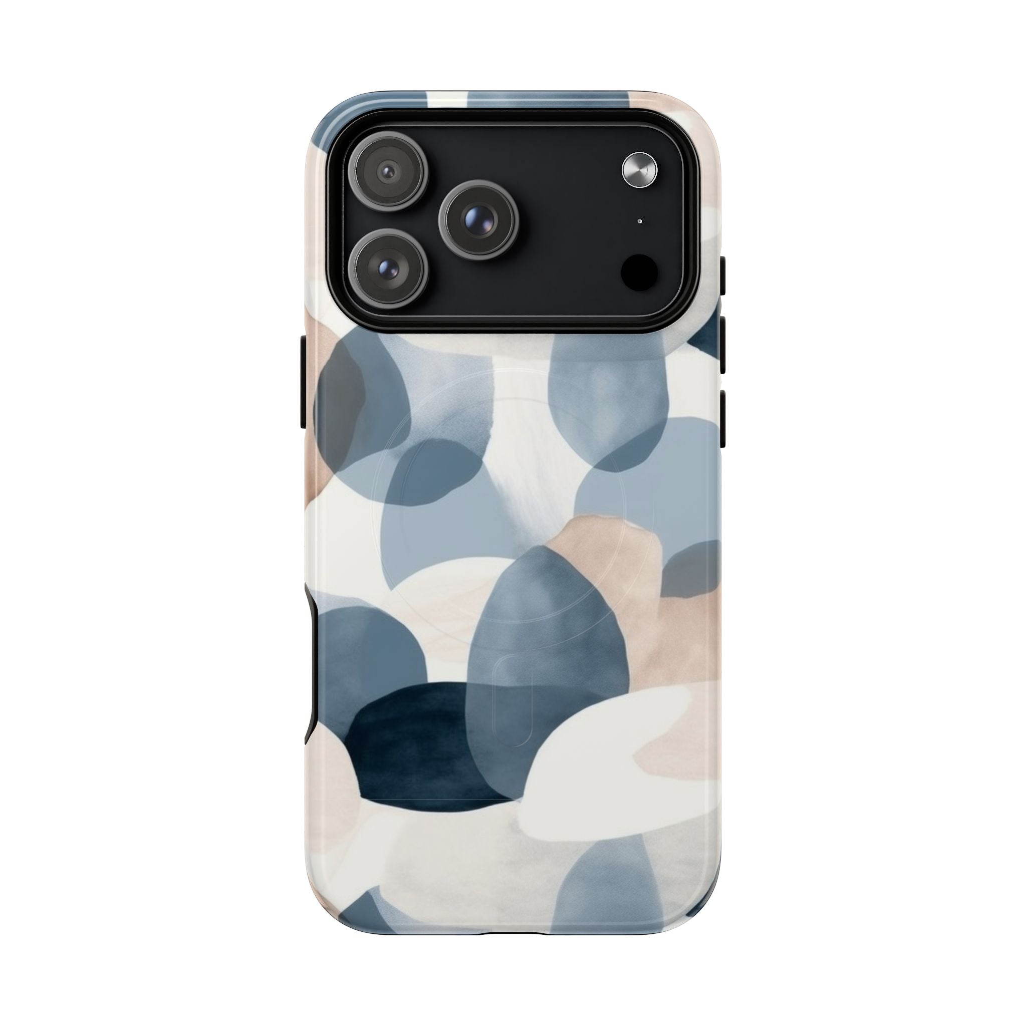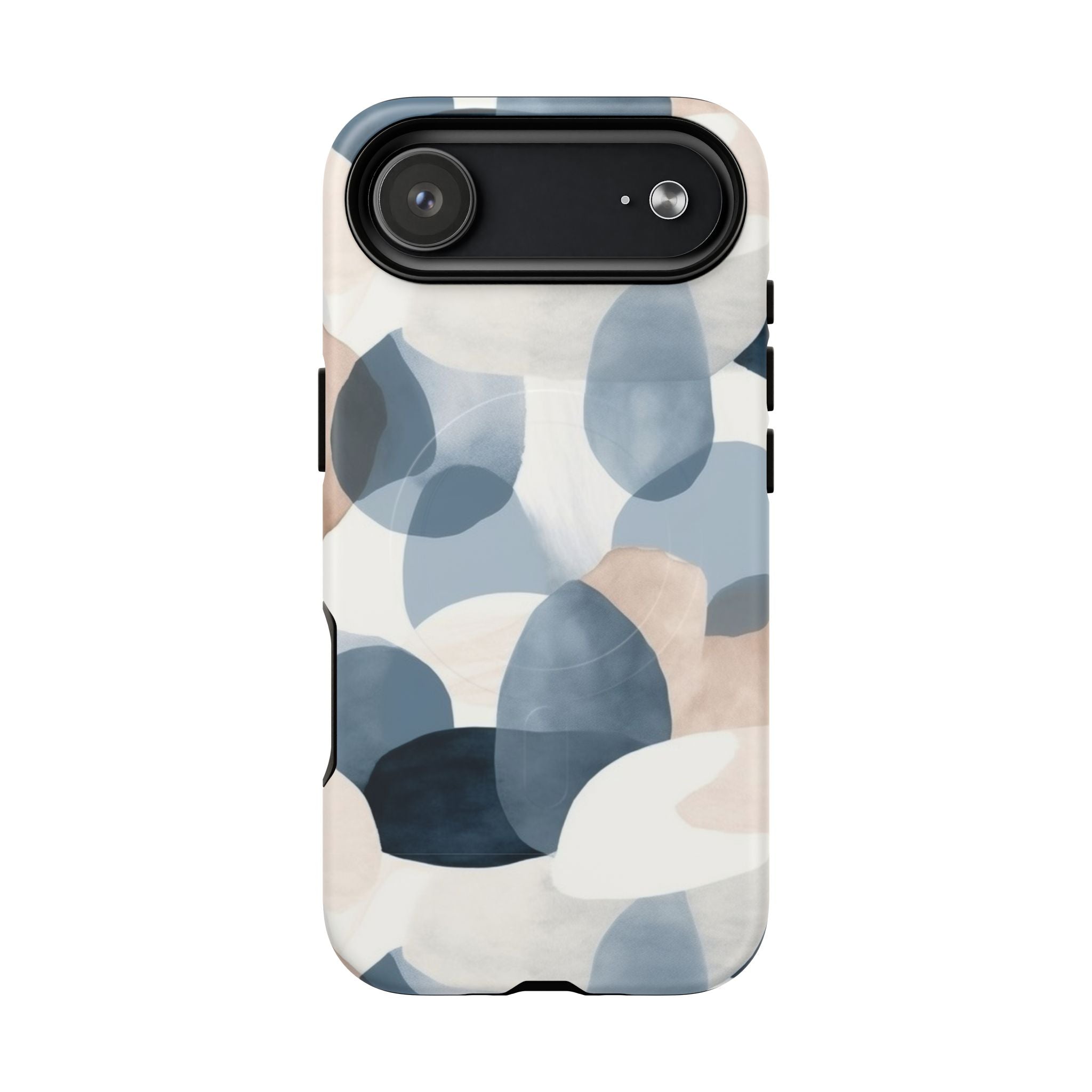 “Miststone Petals” brings a calm, fluid softness to your device through overlapping organic shapes in a cool, muted palette. Gentle forms in slate blue, mist grey, ivory white, soft sand and deep midnight drift across the surface like abstract petals or river-smoothed stones. Subtle gradients and softened edges give each shape a delicate translucency, creating a serene composition that feels airy, modern and quietly refined.