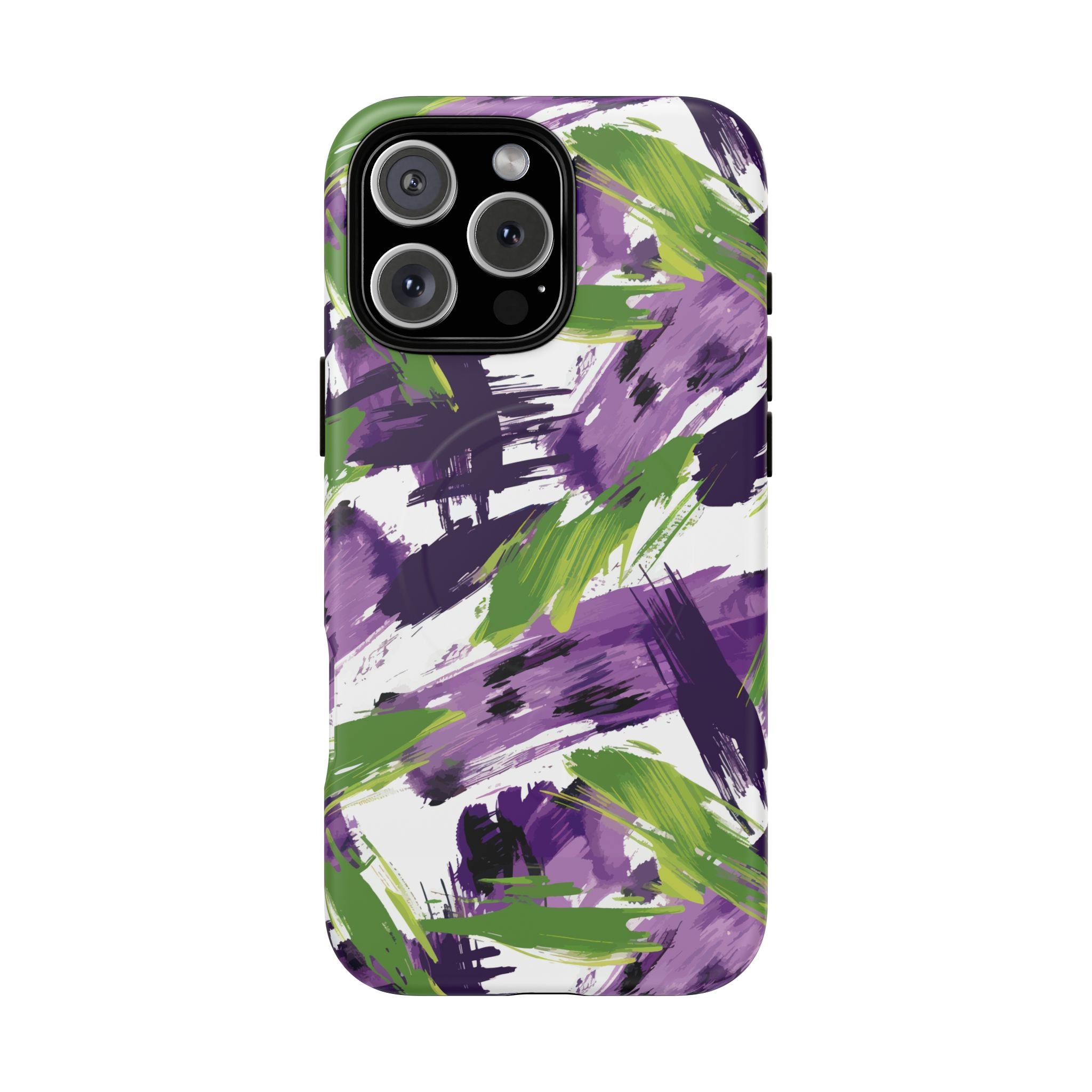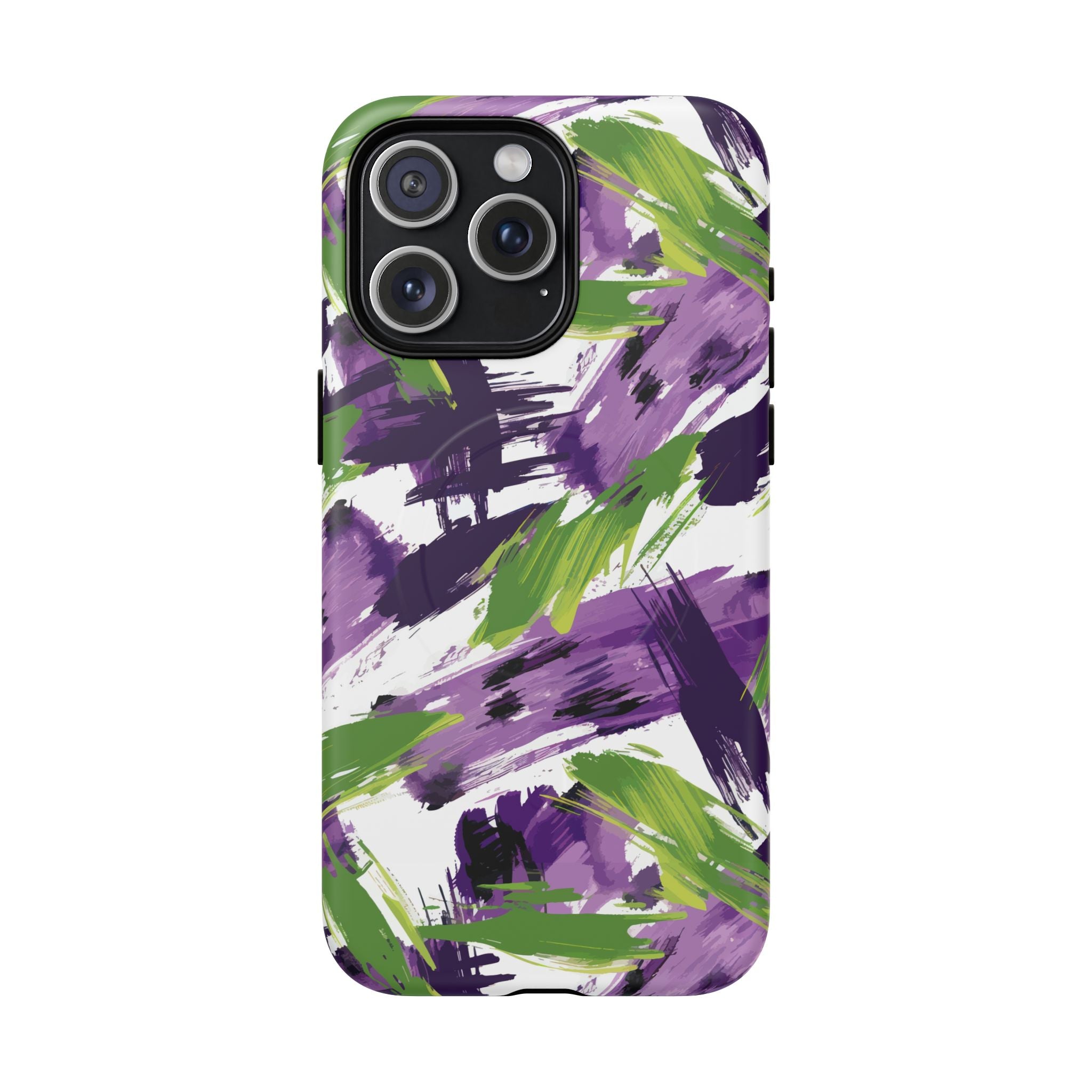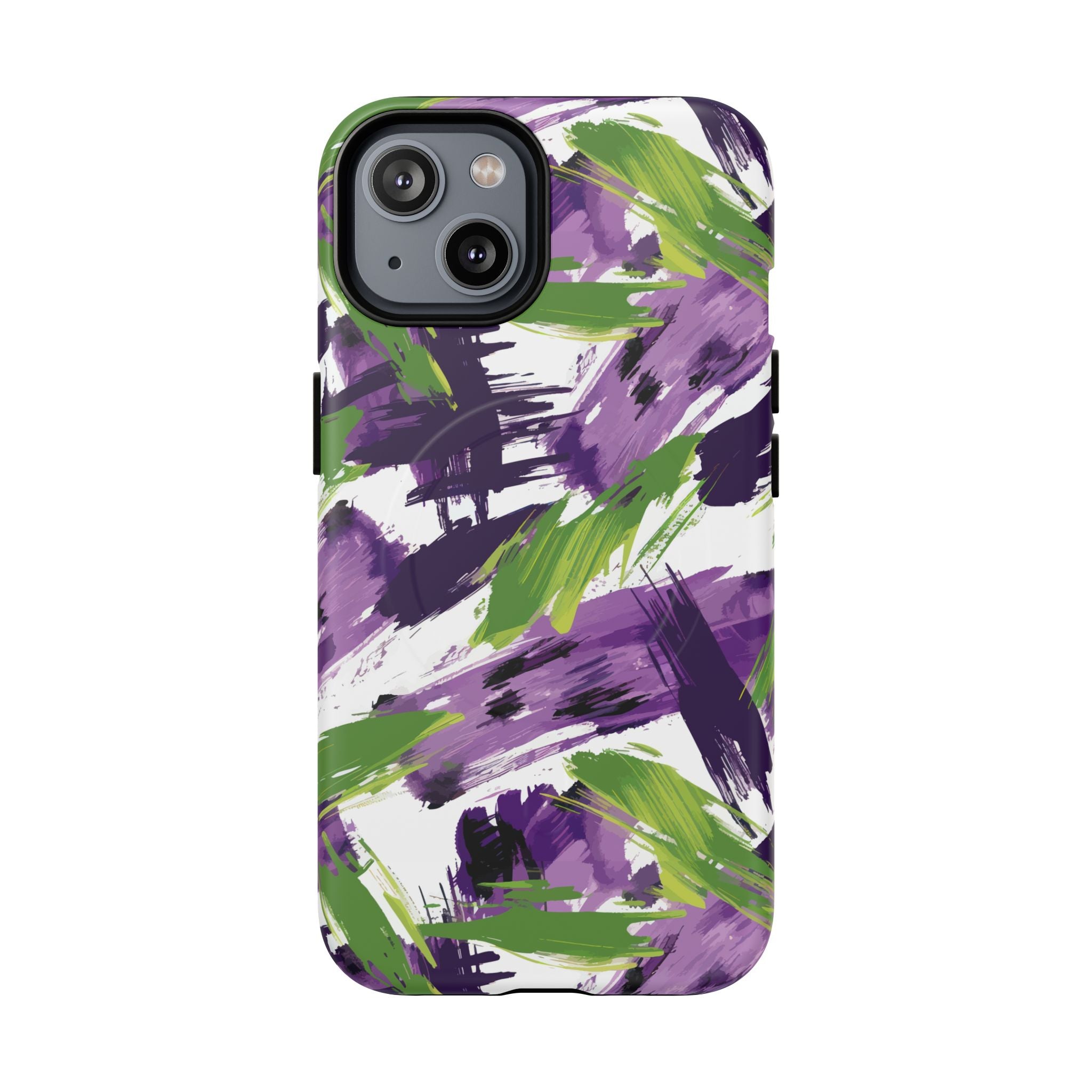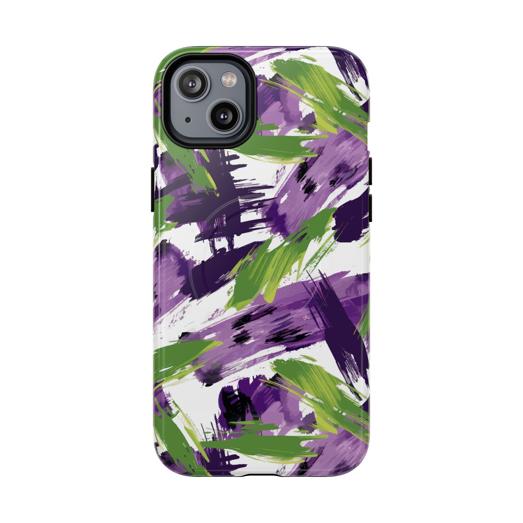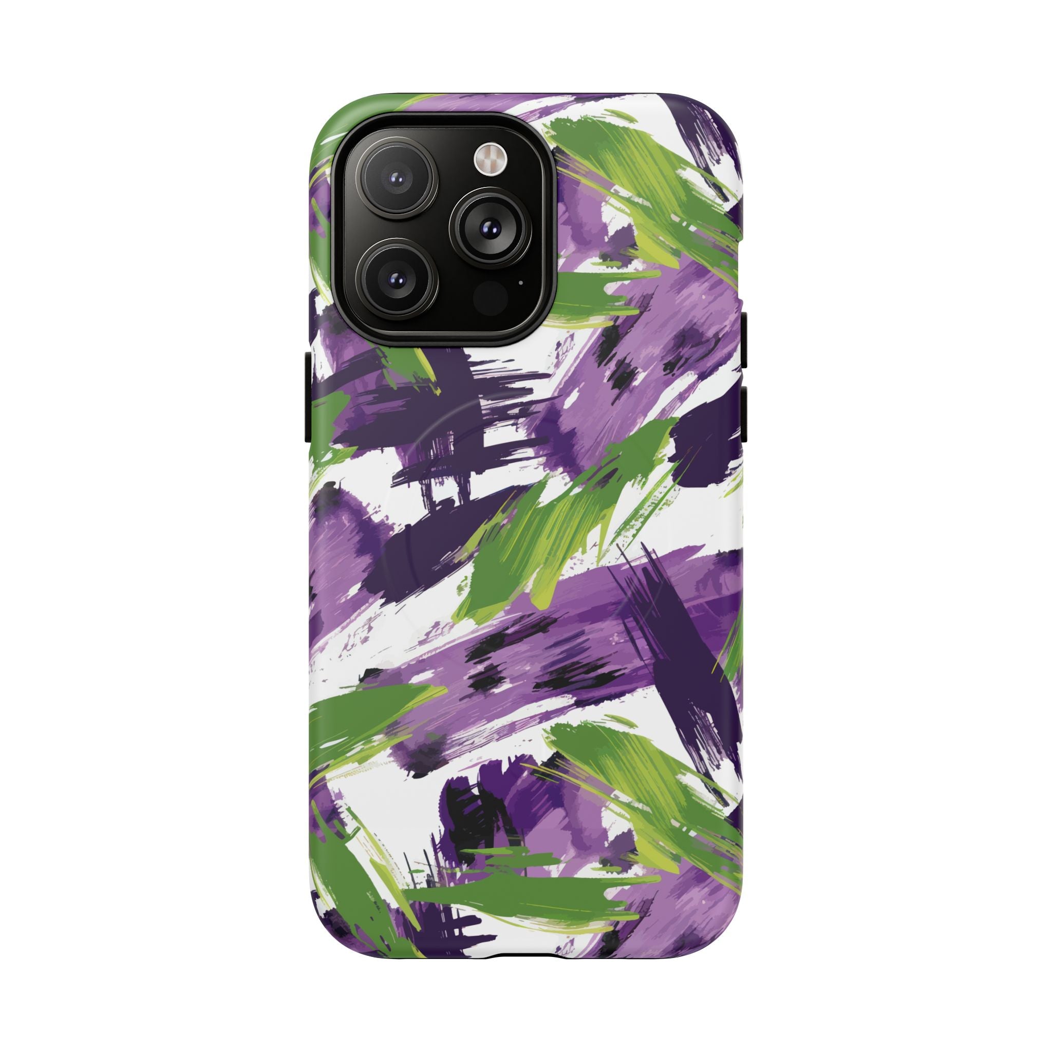 “Violet Moss Motion” brings expressive energy and organic contrast to your device through bold, gestural brushstrokes layered over a clean white ground. Deep violet and plum sweep diagonally across the surface, punctuated by fresh moss green and olive accents. Each stroke shows raw texture and directional movement, creating a dynamic composition that feels spontaneous yet balanced. The interplay of cool purples and earthy greens gives the artwork a modern, nature-inflected intensity.