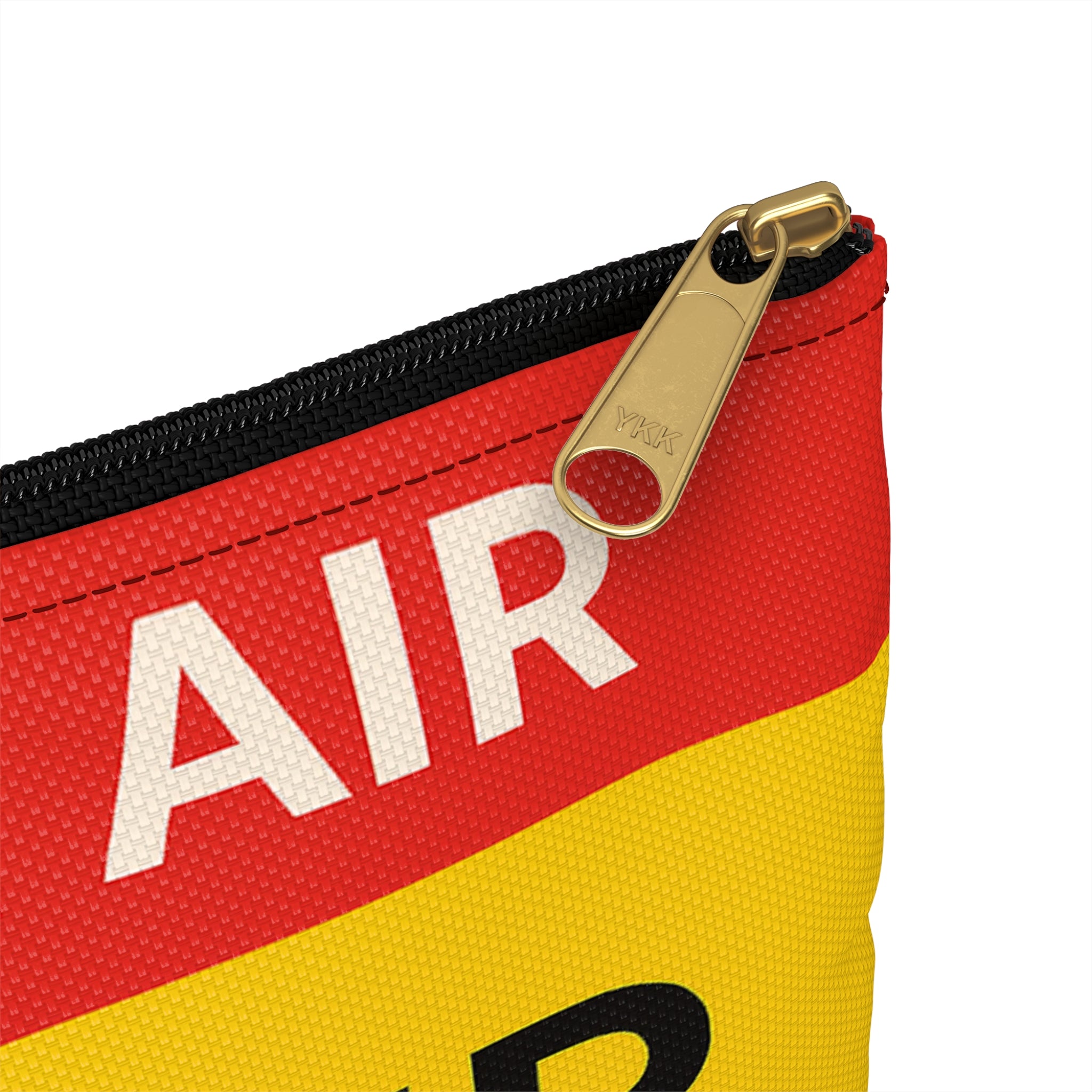 Bring the thrill of departure day into your everyday carry. The Antipode Air Boarding Pass Pouch reimagines the classic flight ticket as a playful, design-forward travel essential. Printed in bright, high-definition color on smooth spun polyester, the pouch keeps its structure while resisting wrinkles and wear. A sturdy zipper with a gold puller secures your essentials, and the clean laminated interior adds both durability and a premium feel.
