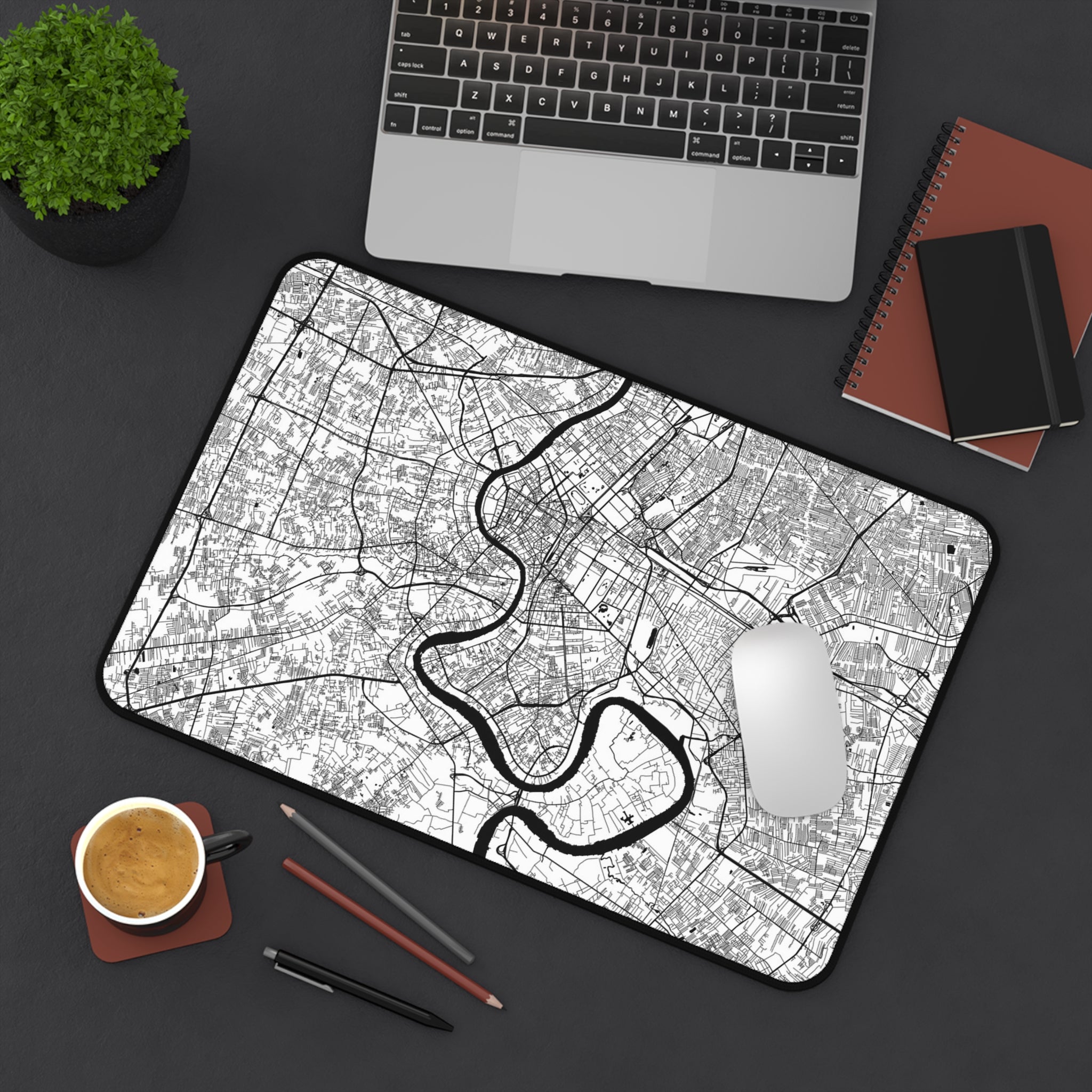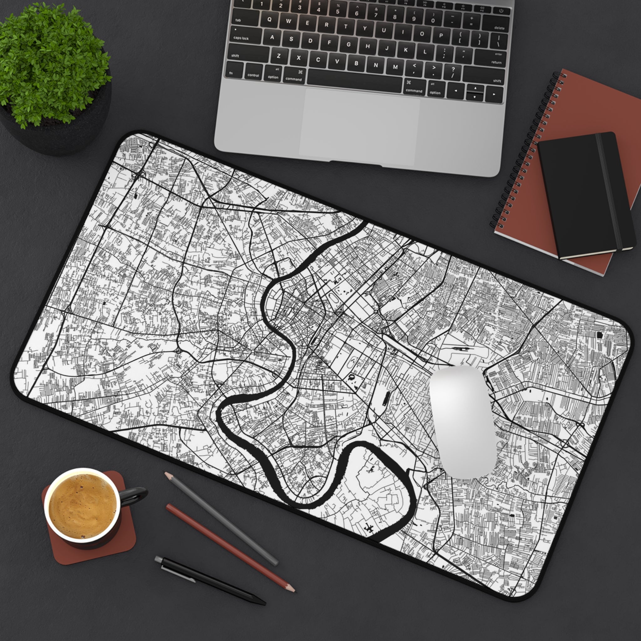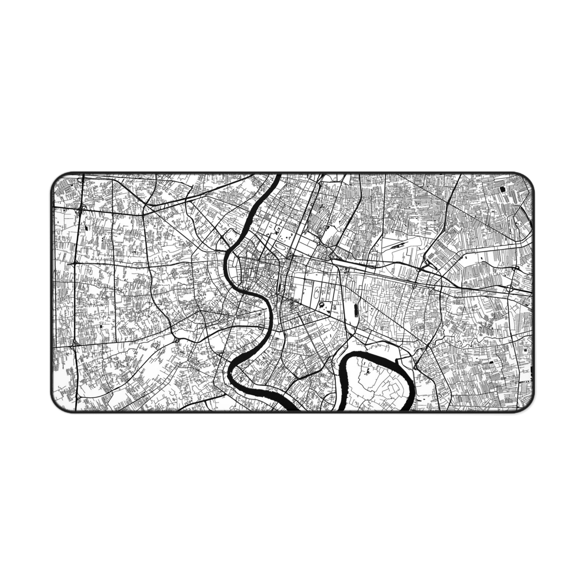 This ANTIPODE City Edition desk mat features a crisp, monochrome map of Bangkok’s streets, canals, and neighborhoods — rendered as a modern piece of urban geometry. The result is a calm, architectural surface that brings a sense of movement and place to your desk without ever feeling loud. Whether you're working, studying, designing, or gaming, it adds a grounded visual texture that feels unmistakably city-forward.