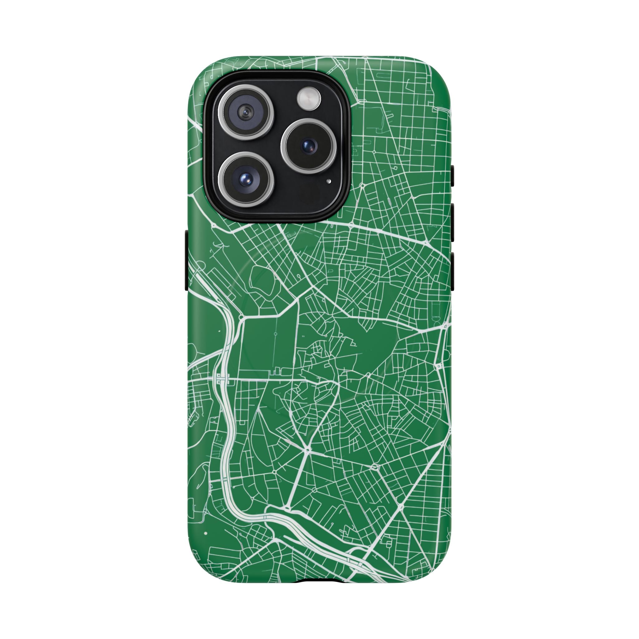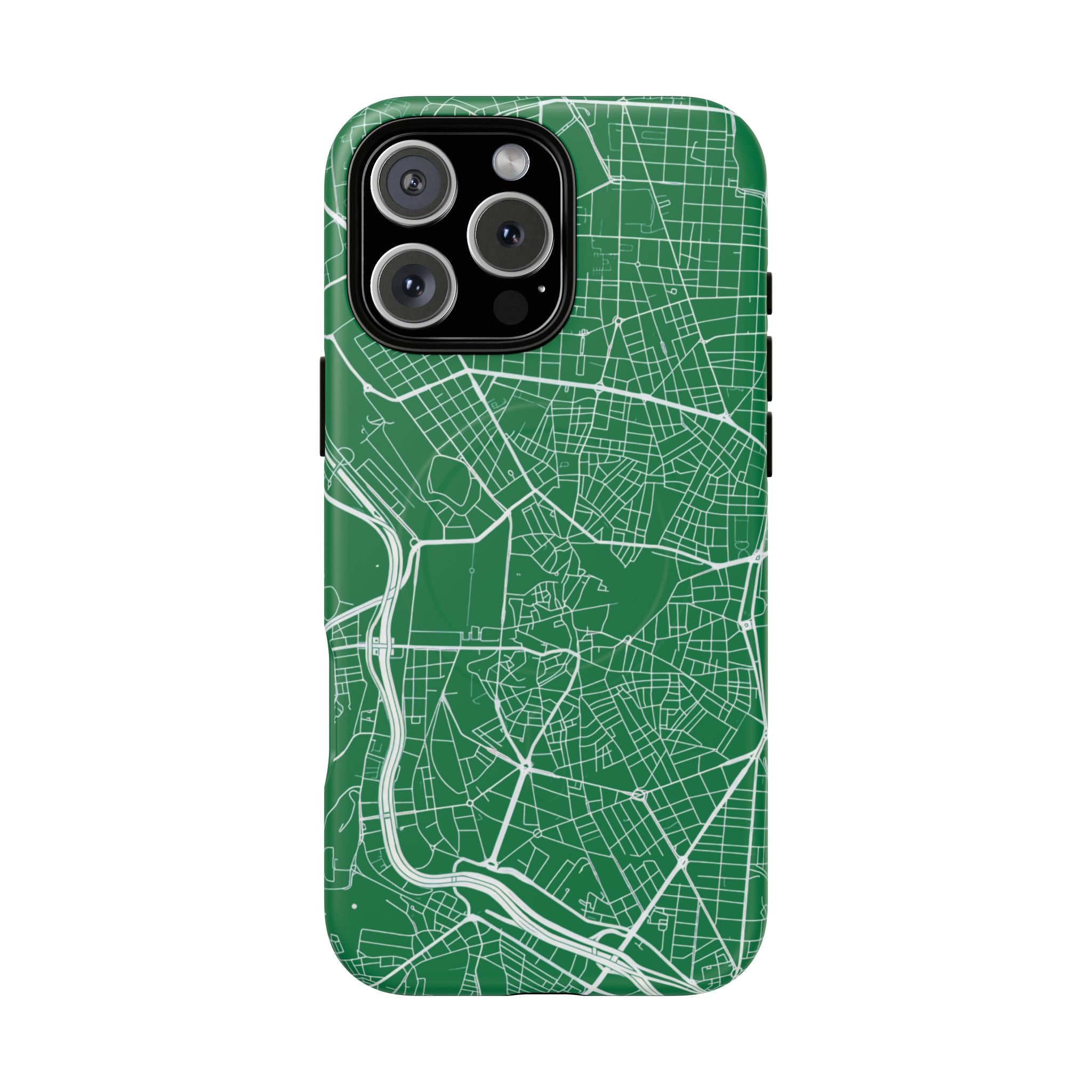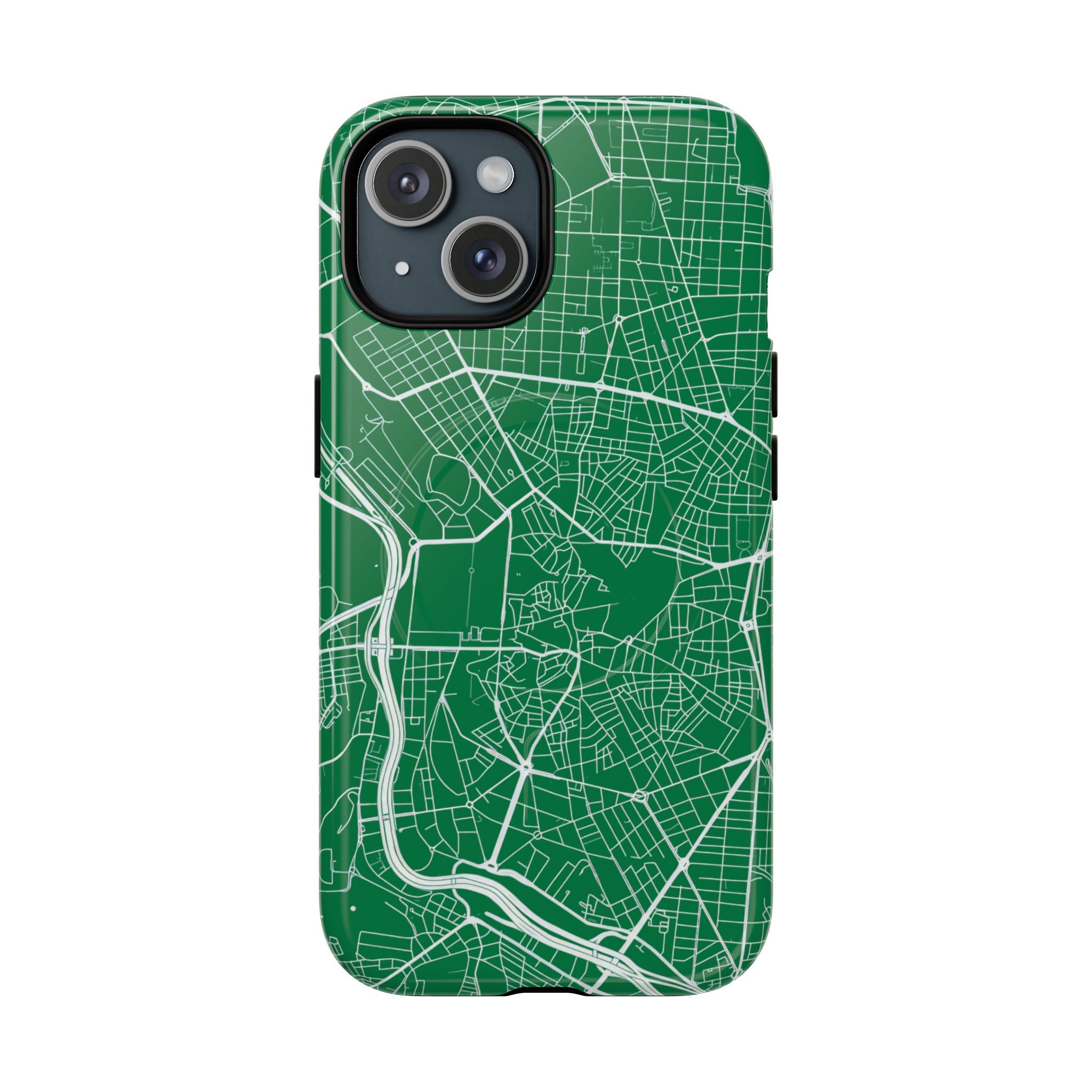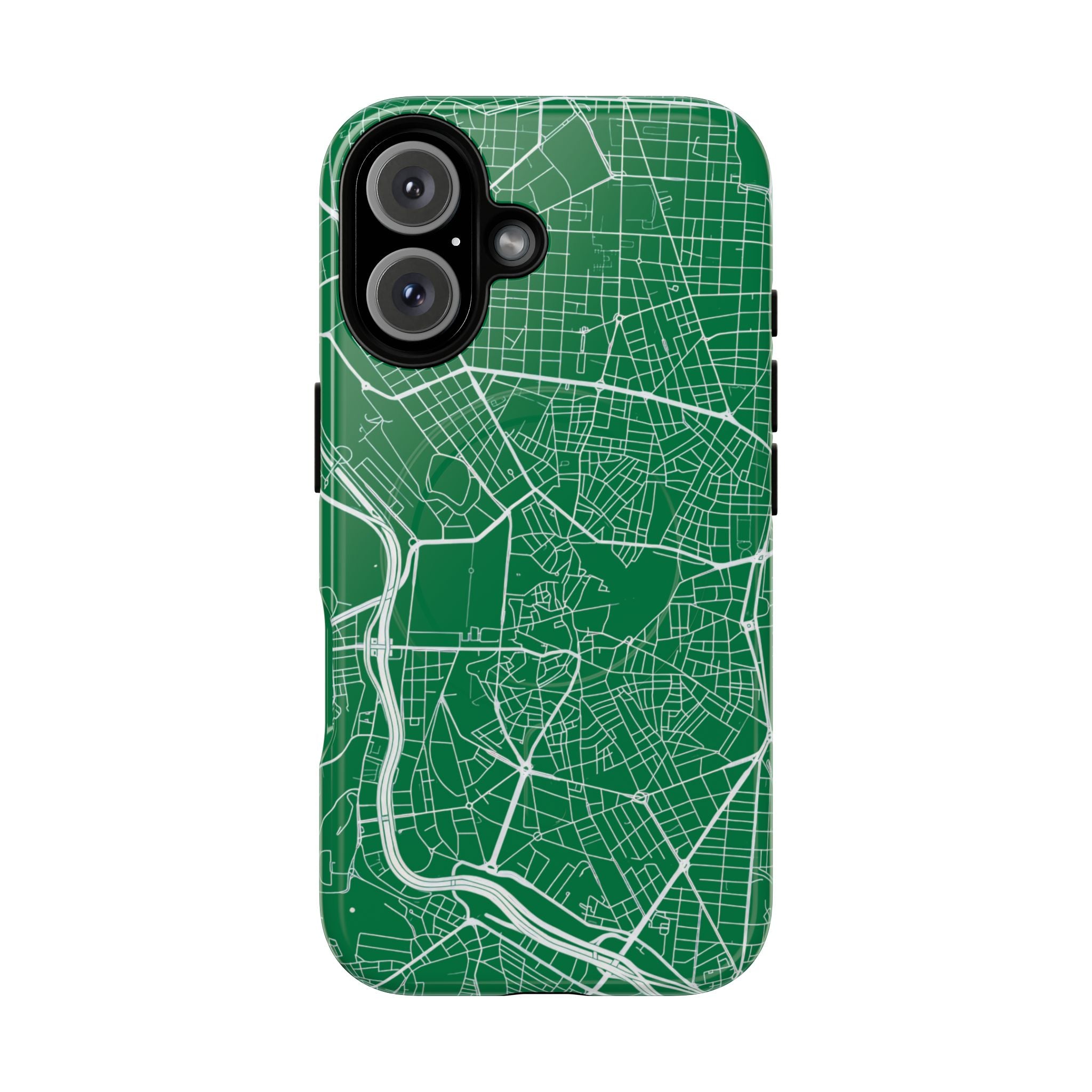 An embedded magnetic ring supports MagSafe® compatibility, allowing effortless attachment of chargers and magnetic accessories. Available in matte or glossy premium finishes, the Madrid Street Map Phone Case – Green Edition combines dependable protection with a classic, city-driven aesthetic designed for everyday carry.