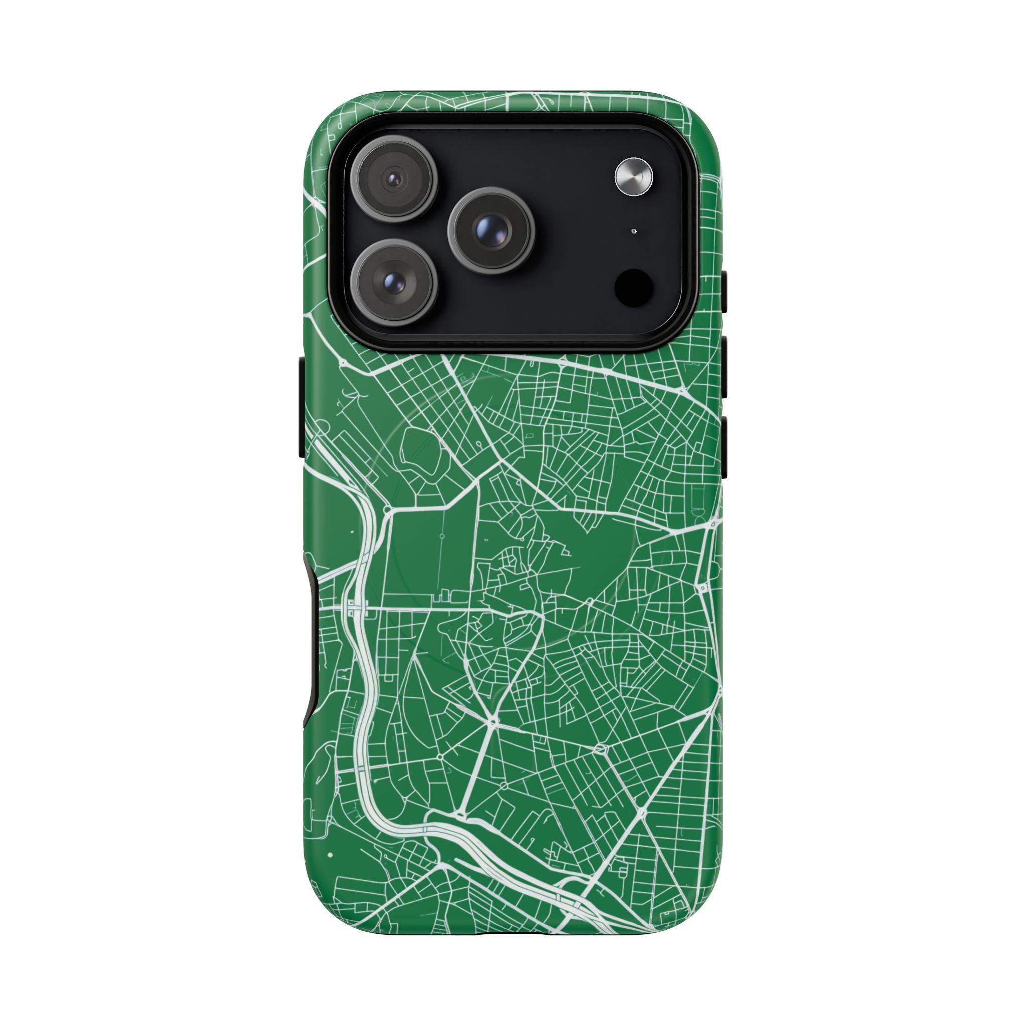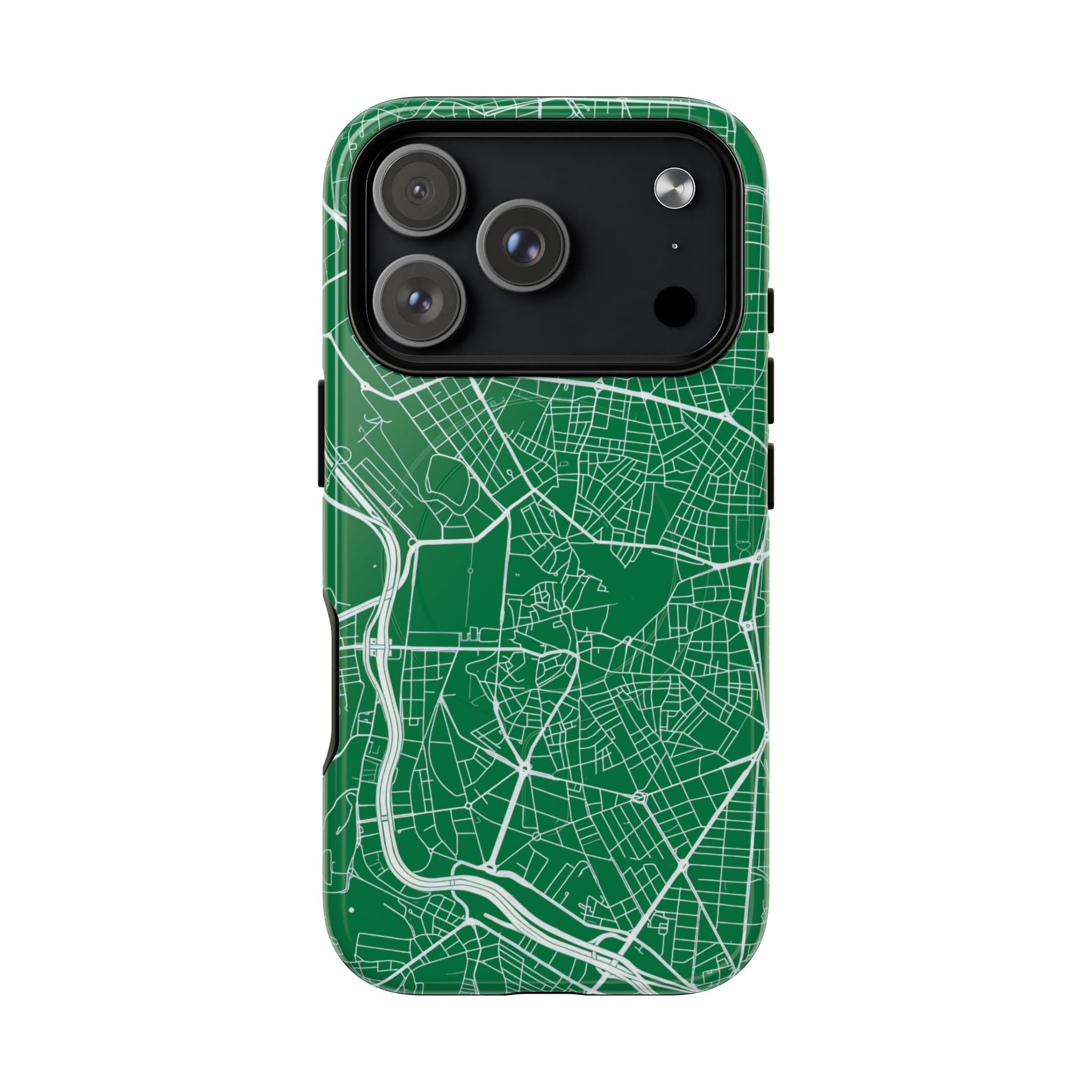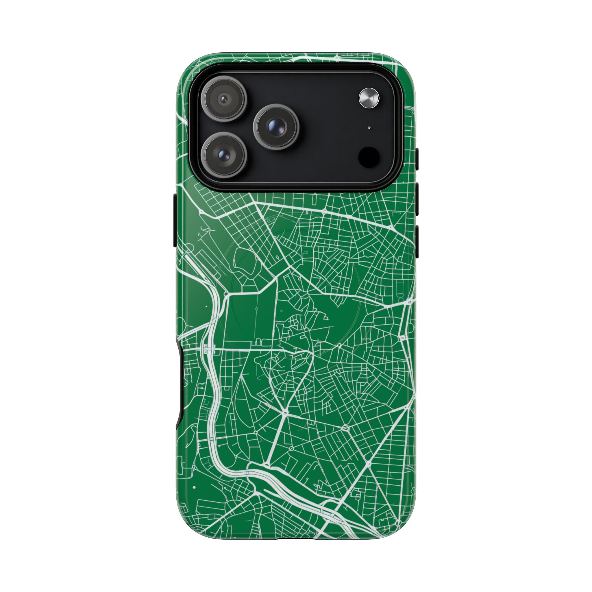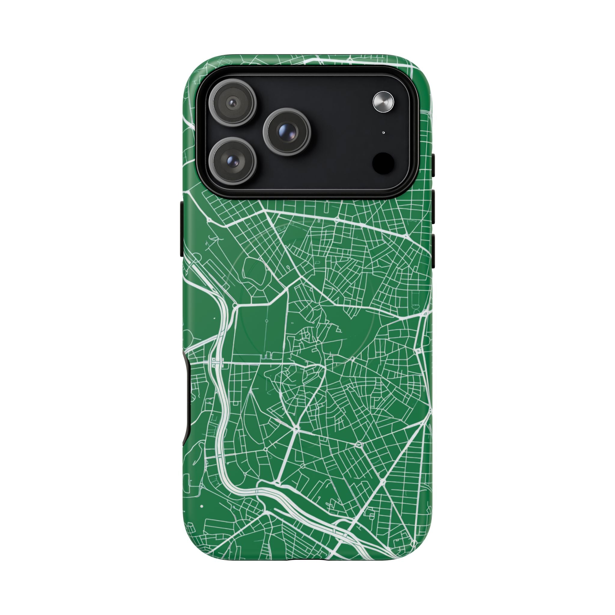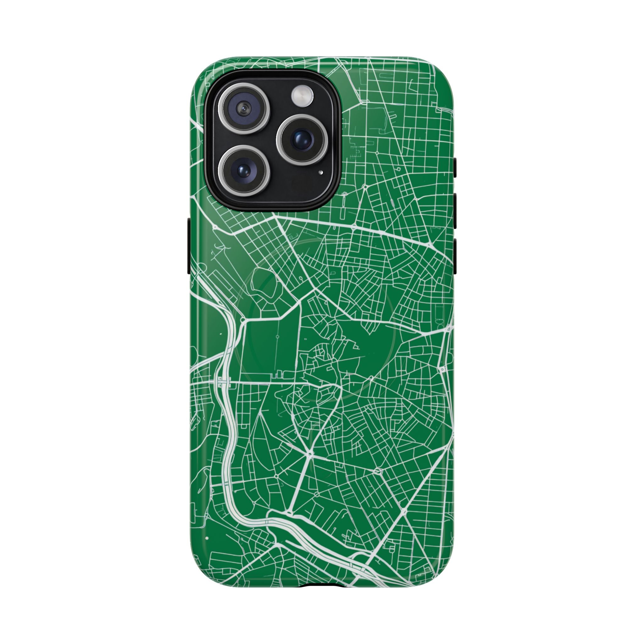 An embedded magnetic ring supports MagSafe® compatibility, allowing effortless attachment of chargers and magnetic accessories. Available in matte or glossy premium finishes, the Madrid Street Map Phone Case – Green Edition combines dependable protection with a classic, city-driven aesthetic designed for everyday carry.