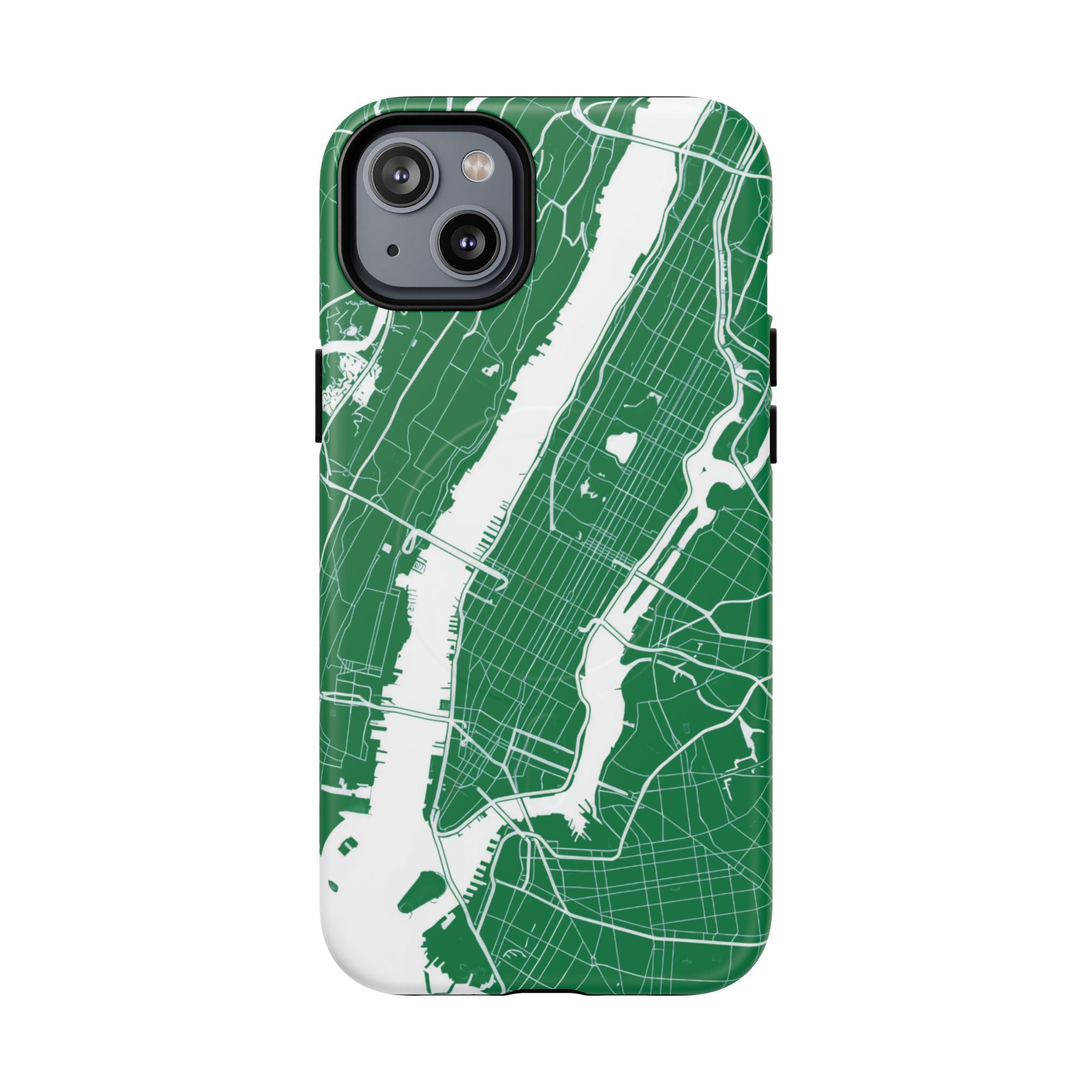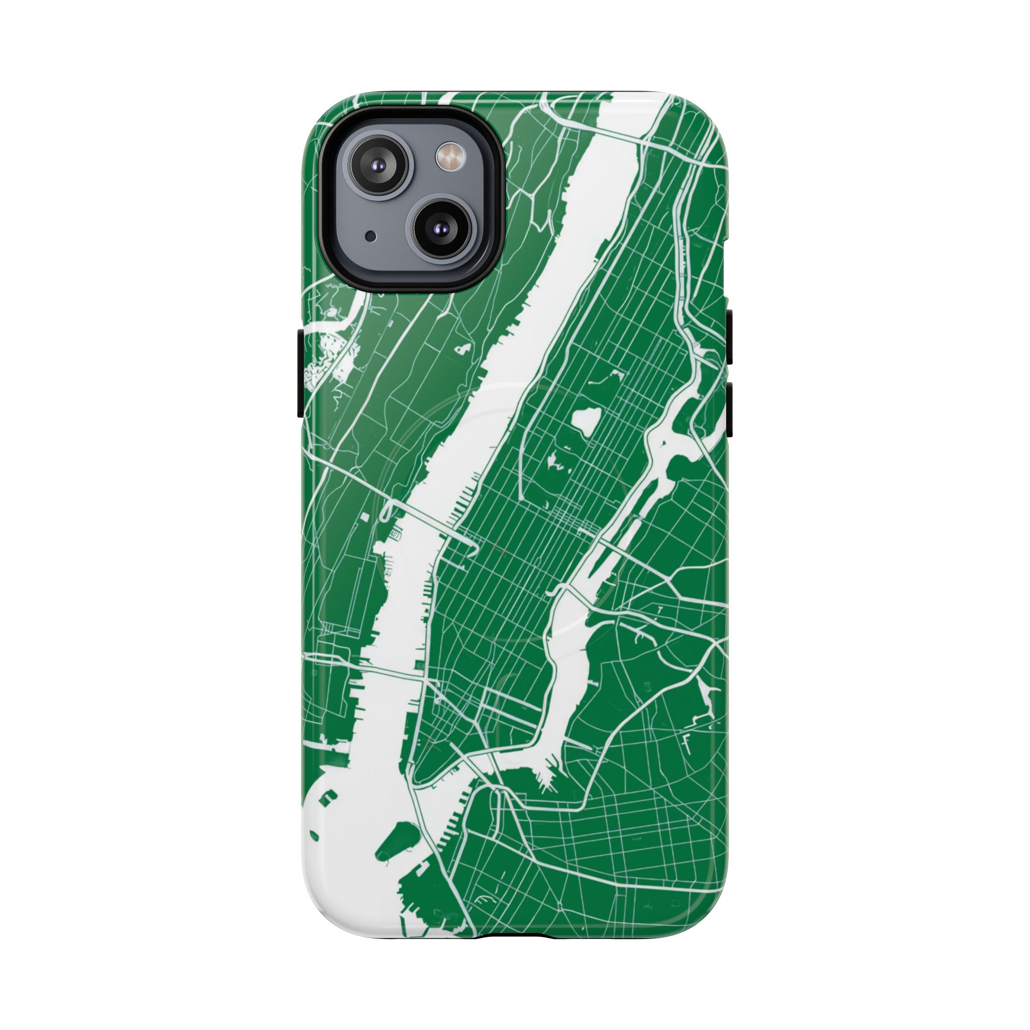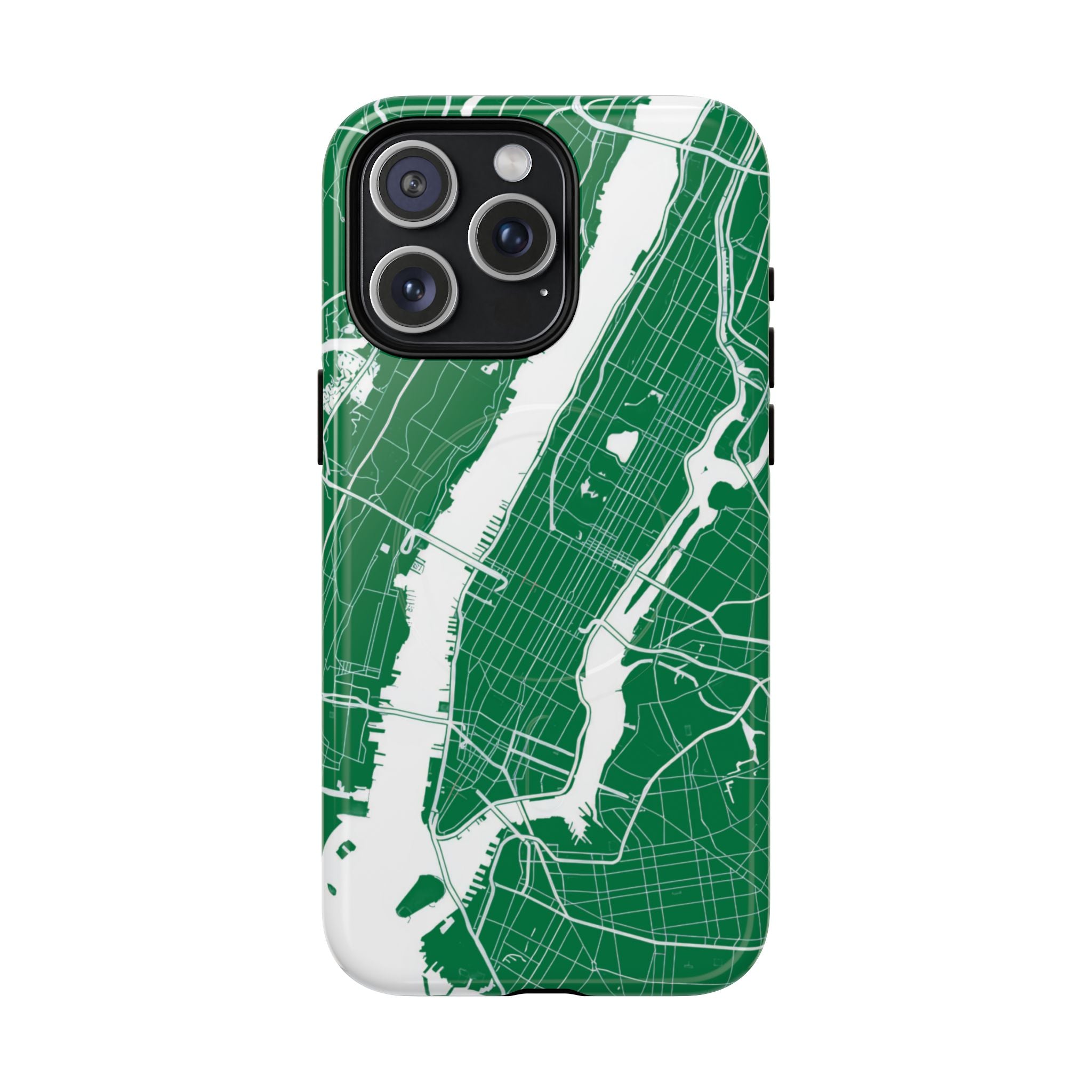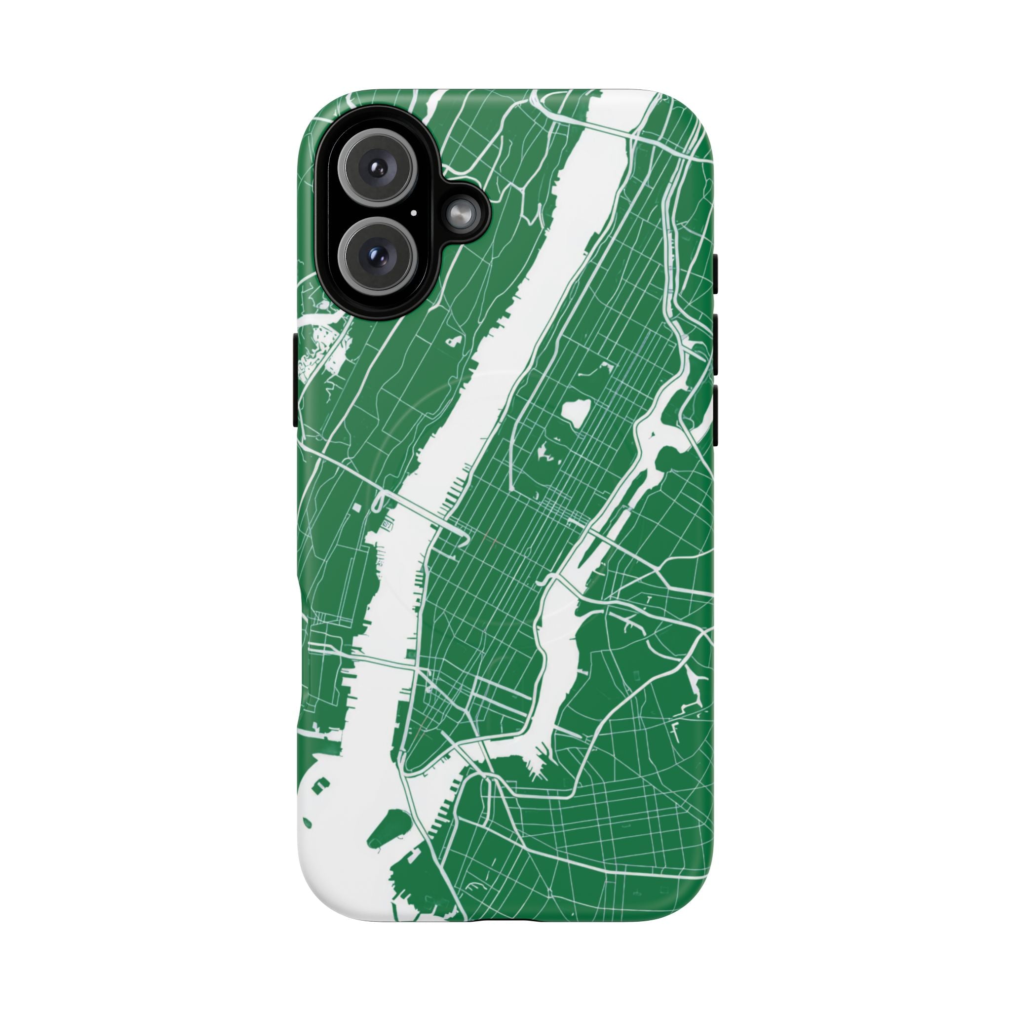 An integrated magnetic ring supports MagSafe® compatibility, allowing seamless attachment of chargers and magnetic accessories. Available in either matte or glossy finishes, the New York City Map Phone Case – Green & White Edition pairs reliable protection with a clean, city-driven aesthetic designed for everyday carry.