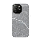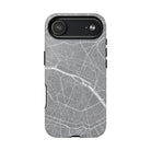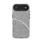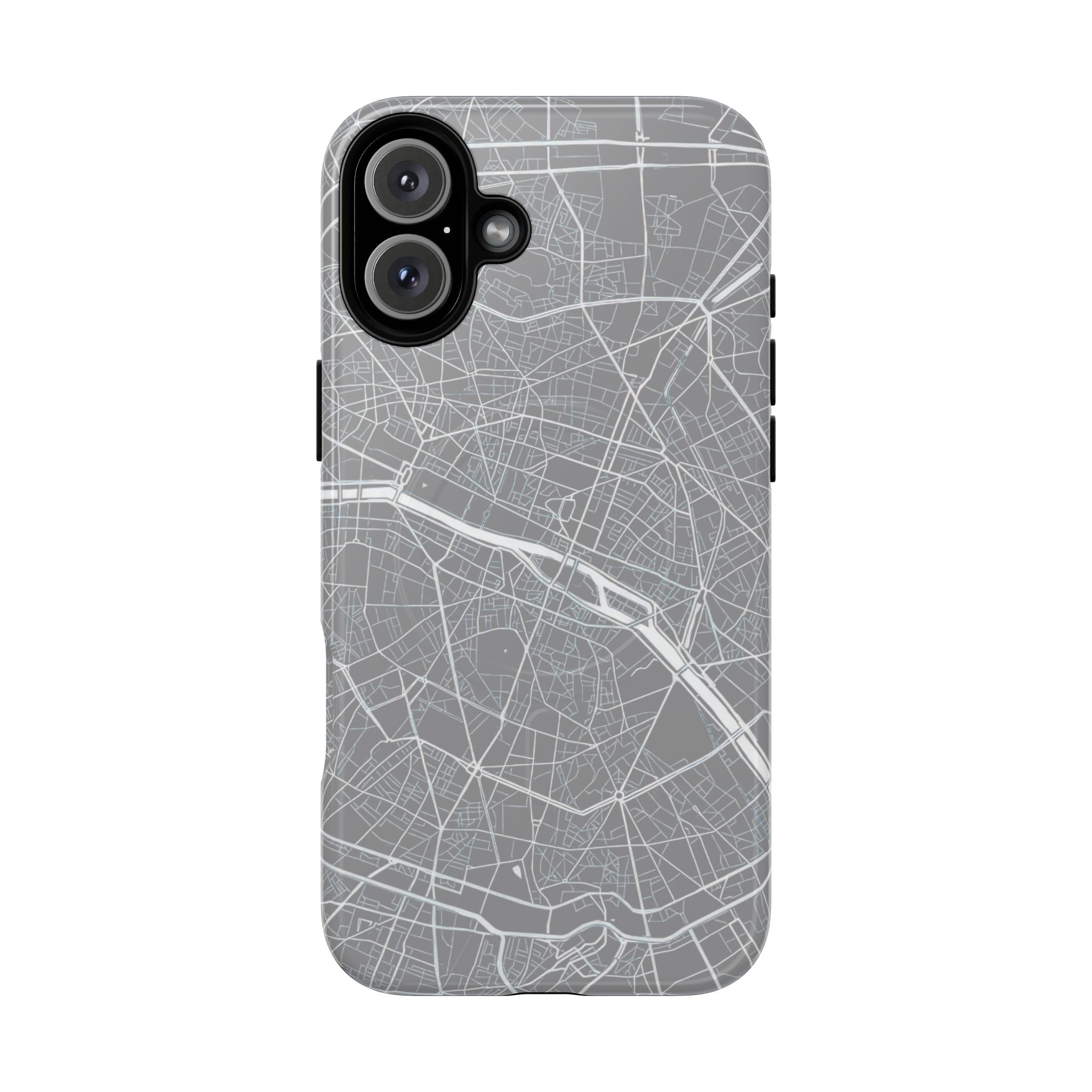 The Paris Street Map Phone Case – Grey edition reinterprets the city’s iconic layout in a clean, understated palette. Set against a soft grey backdrop, fine white linework traces Paris’s intricate street grid, historic boulevards, and the sweeping curve of the Seine as it winds through the heart of the capital.