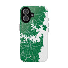 The Sydney Street Map Phone Case – Harbour Edition (Green) captures the city’s iconic coastline in a rich, earth-toned palette that feels both structured and timeless. Set against a deep green backdrop, crisp white street lines trace Sydney’s winding roads and branching harbour inlets, placing the natural contours of the coastline at the centre of the design.