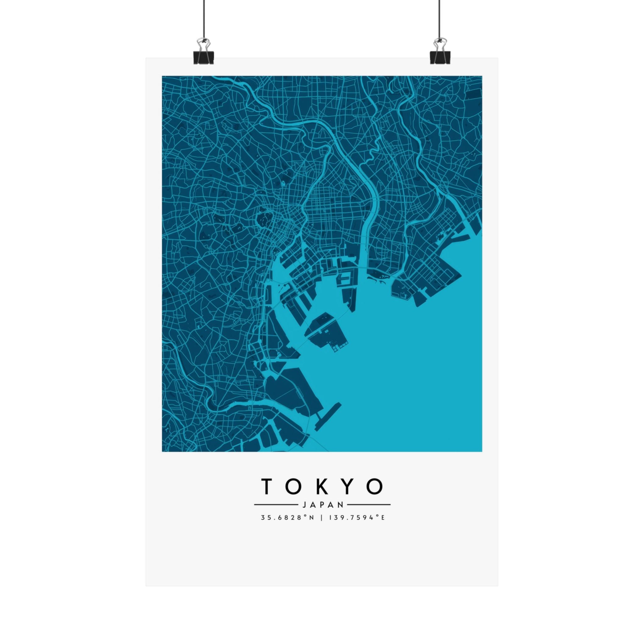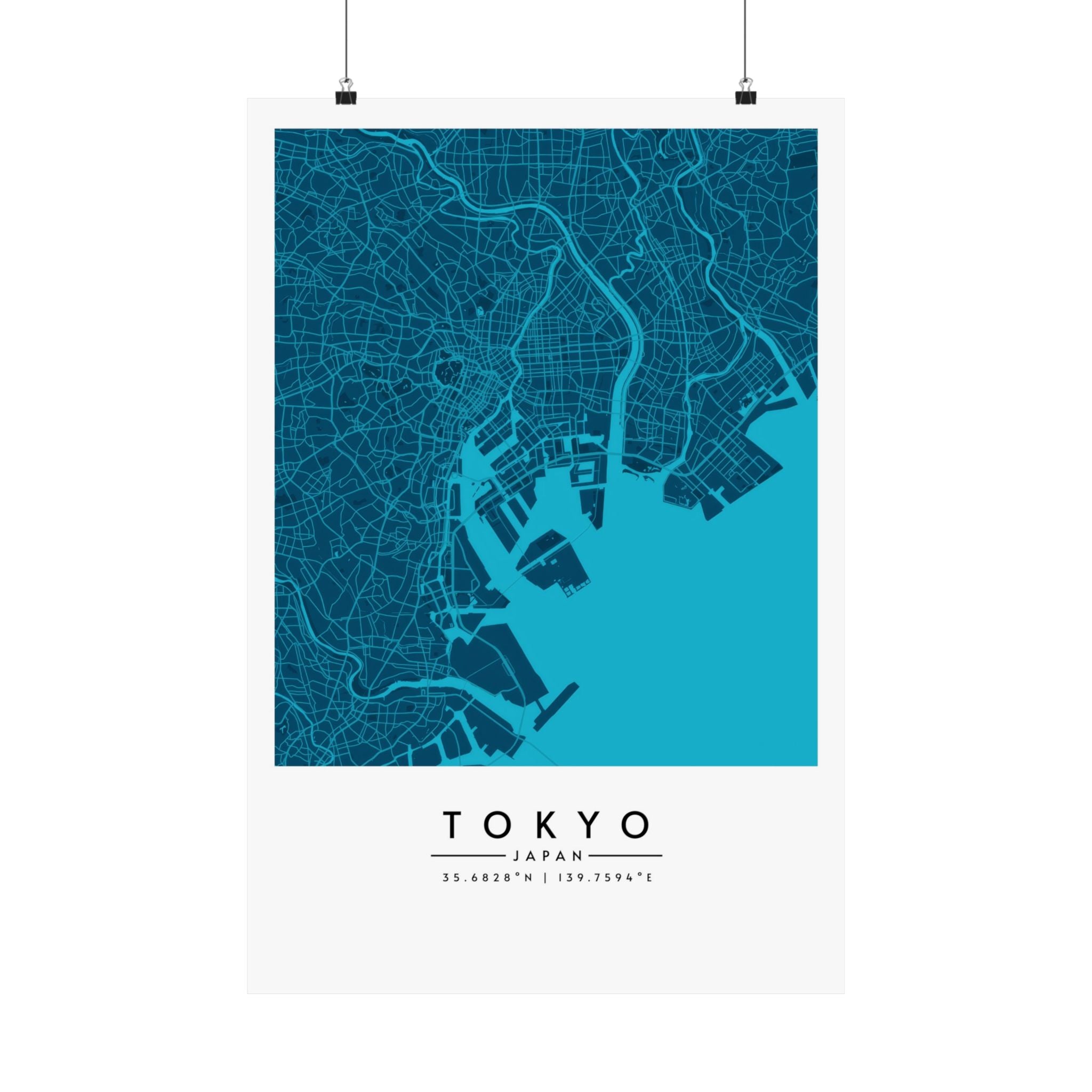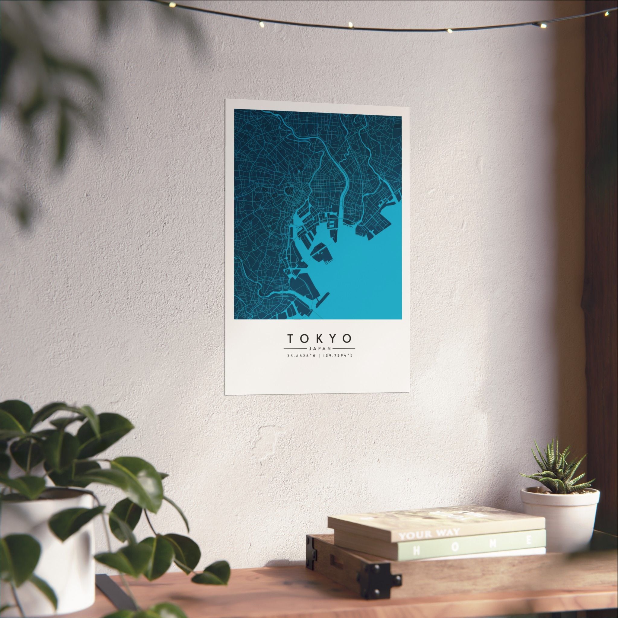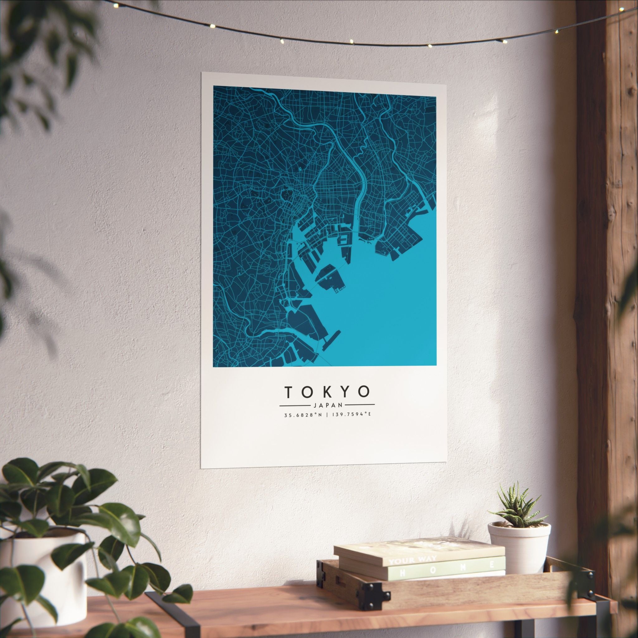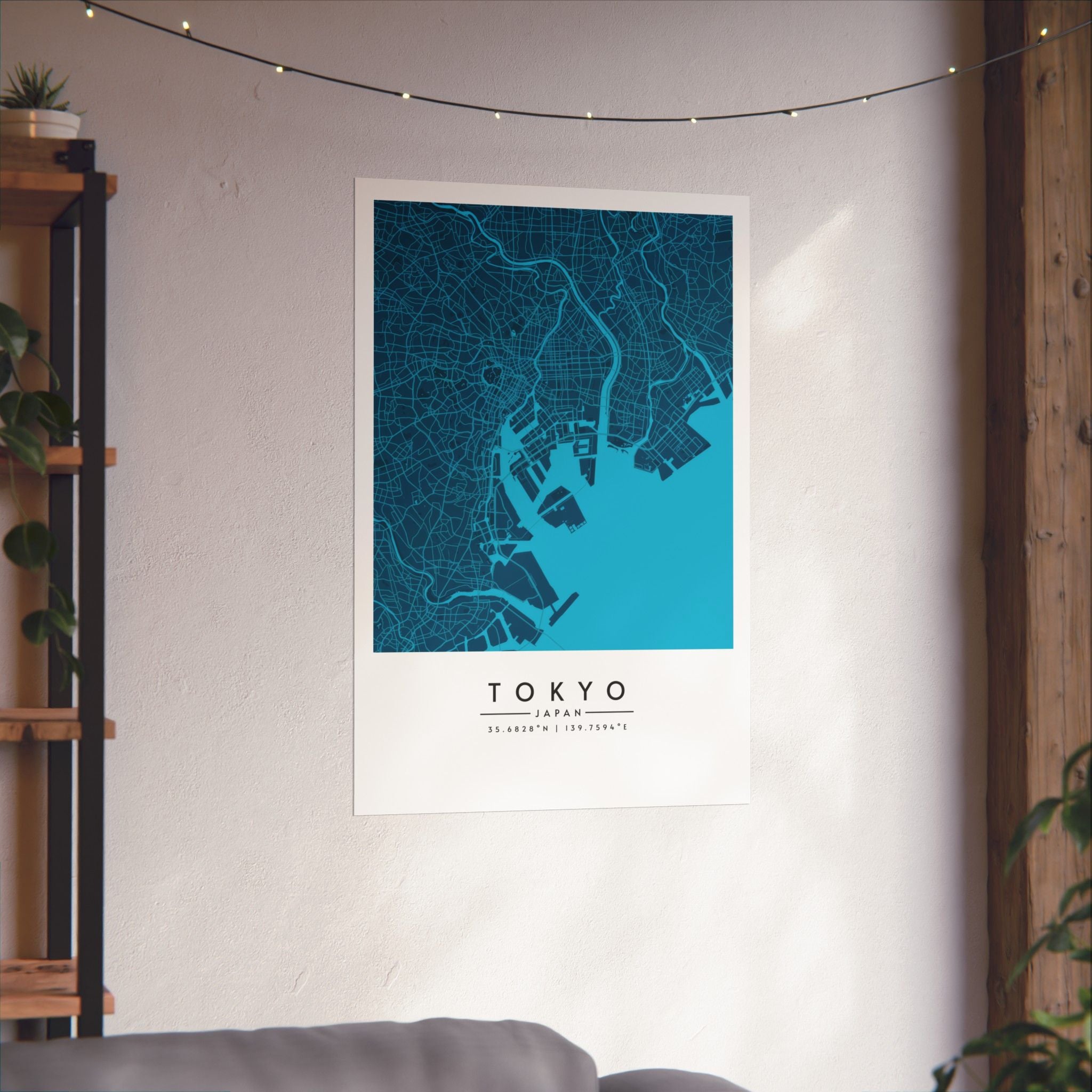 A matte Tokyo map print designed to bring a clean, modern edge to any interior. This Tokyo City Map Poster features a detailed street grid of central Tokyo and its waterfront districts, presented in layered blue tones that highlight the city’s dense, interconnected layout. The matte surface keeps reflections low and preserves fine detail, giving the artwork a calm, contemporary feel that suits living rooms, studies, hallways, and creative spaces.