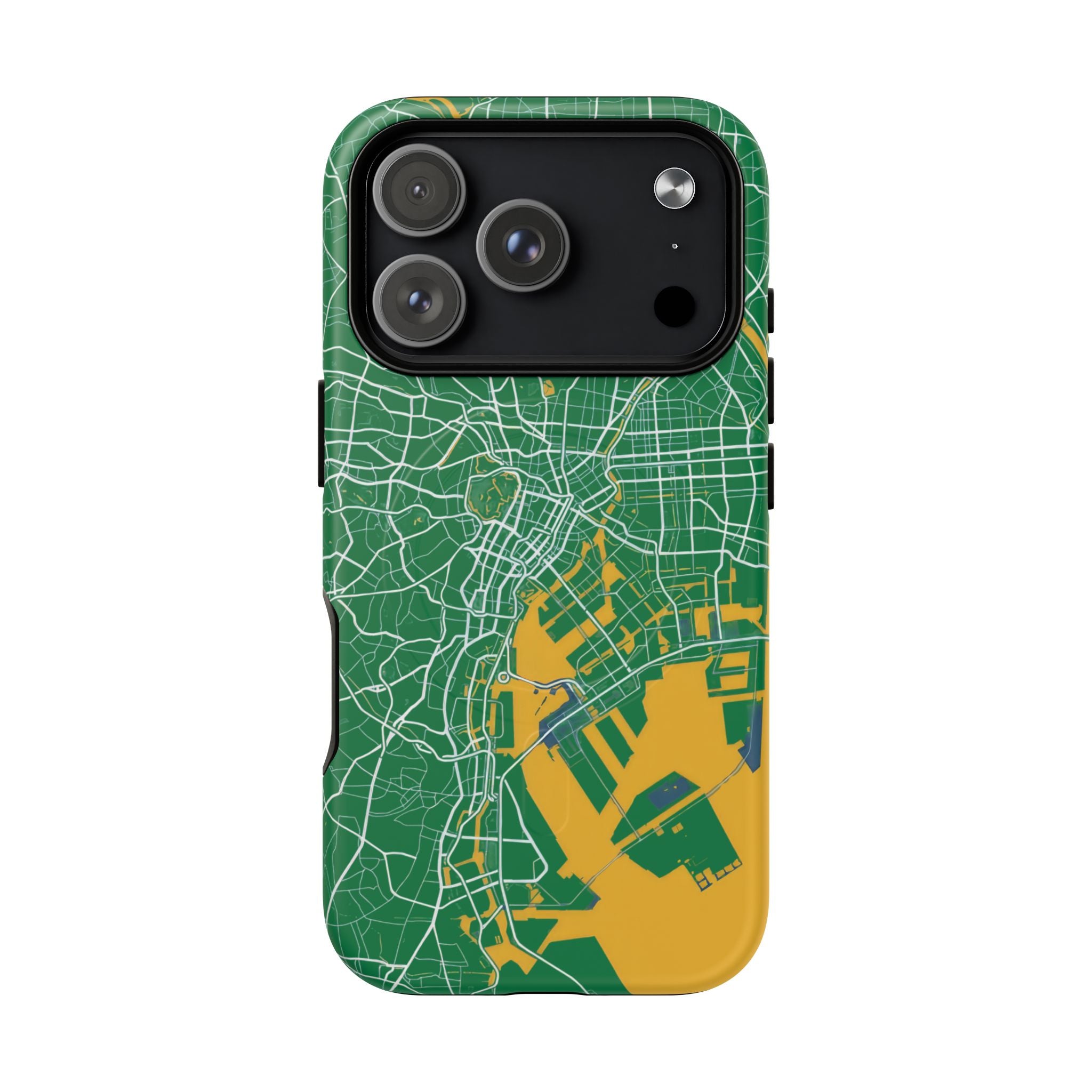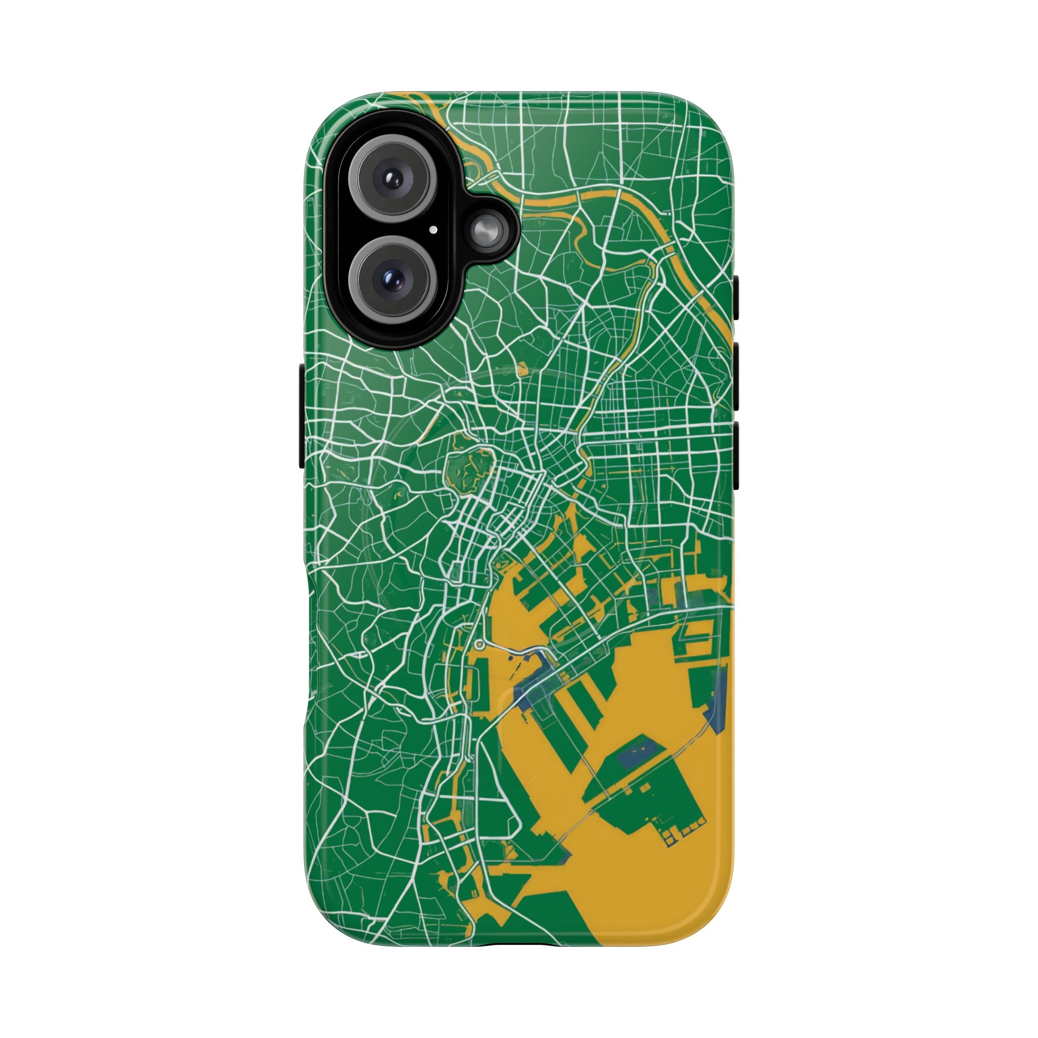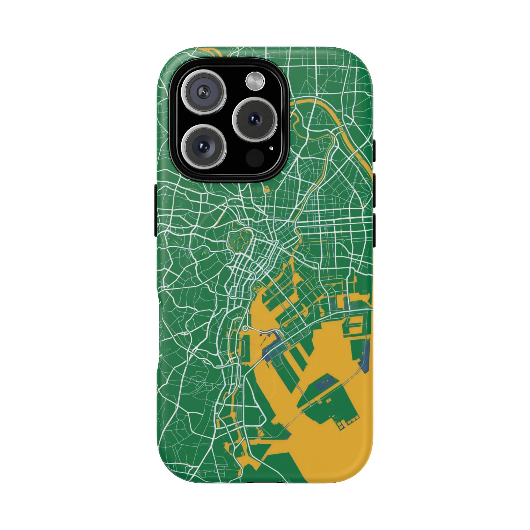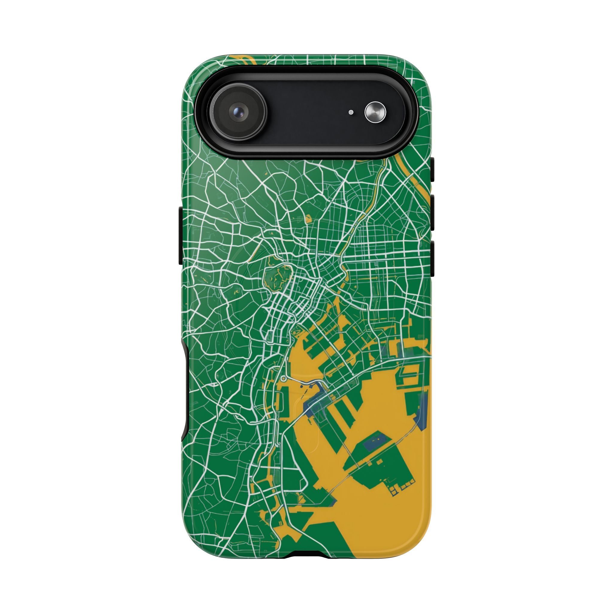 An embedded magnetic ring supports MagSafe® compatibility, allowing effortless attachment of chargers and magnetic accessories. Available in matte or glossy premium finishes, the Tokyo City Map Phone Case – Green & Yellow Edition blends reliable protection with a bold, design-led aesthetic built for everyday carry.